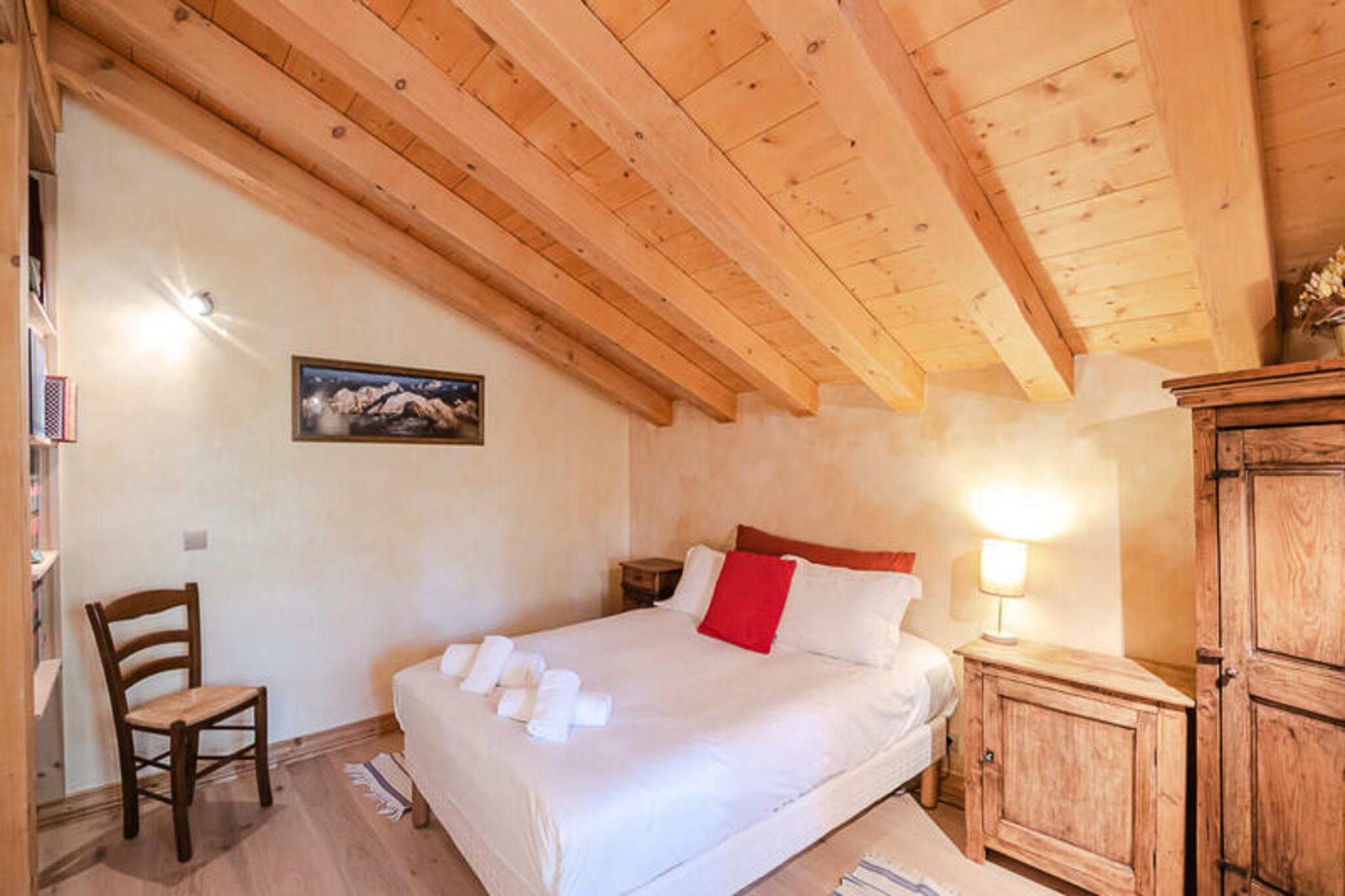 Dieses charmante, 210 m² große Chalet mit 3 Sternen erstreckt sich über 2 Ebenen und bietet in 6 geräumigen Schlafzimmern Platz für bis zu 12 Gäste. Es liegt im Stadtteil Tines, 5 km von Chamonix entfernt und bietet einen atemberaubenden Blick auf den Mont Blanc. Der gemütliche Wohn- und Essbereich ist 60 m² groß und verfügt über einen Kamin, ein Heimkino, einen DVD-Player und eine Terrasse mit Gartenmöbeln. Die separate Küche ist komplett ausgestattet mit modernen Geräten wie Geschirrspüler, Backofen, Induktionskochfeld, Mikrowelle und Kaffeemaschine sowie Raclette- und Fondue-Sets für die Unterhaltung. Ein Schlafzimmer mit einem Doppelbett (160x200), eigenem Duschbad und WC befindet sich ebenfalls im Erdgeschoss. Im ersten Stock gibt es mehrere Schlafzimmer: eines mit zwei Einzelbetten, eines mit einem Doppelbett (140x190) und zwei weitere mit Doppelbetten und Balkon. Ein Badezimmer, ein Duschbad und separate Toiletten runden die Raumaufteilung ab. Das Chalet ist bequem mit einer Waschmaschine, einem Trockner und einem Skiraum ausgestattet. Private Außenparkplätze stehen zur Verfügung und WLAN sorgt dafür, dass Sie während Ihres gesamten Aufenthalts in Verbindung bleiben. Das Chalet ist ein Nichtraucherchalet und Haustiere sind nicht erlaubt. Vor Anreise ist eine Kaution in Höhe von 2.000 Euro zu hinterlegen. Zu den Transportmöglichkeiten in der Nähe gehören eine Bushaltestelle in 450 m Entfernung, der SNCF-Bahnhof in 450 m Entfernung und der Busbahnhof in 5,3 km Entfernung. Zu den Leistungen gehören ein herzlicher Empfang, Toilettenartikel, Bettwäsche und die Endreinigung (ausgenommen Küche und Müll).