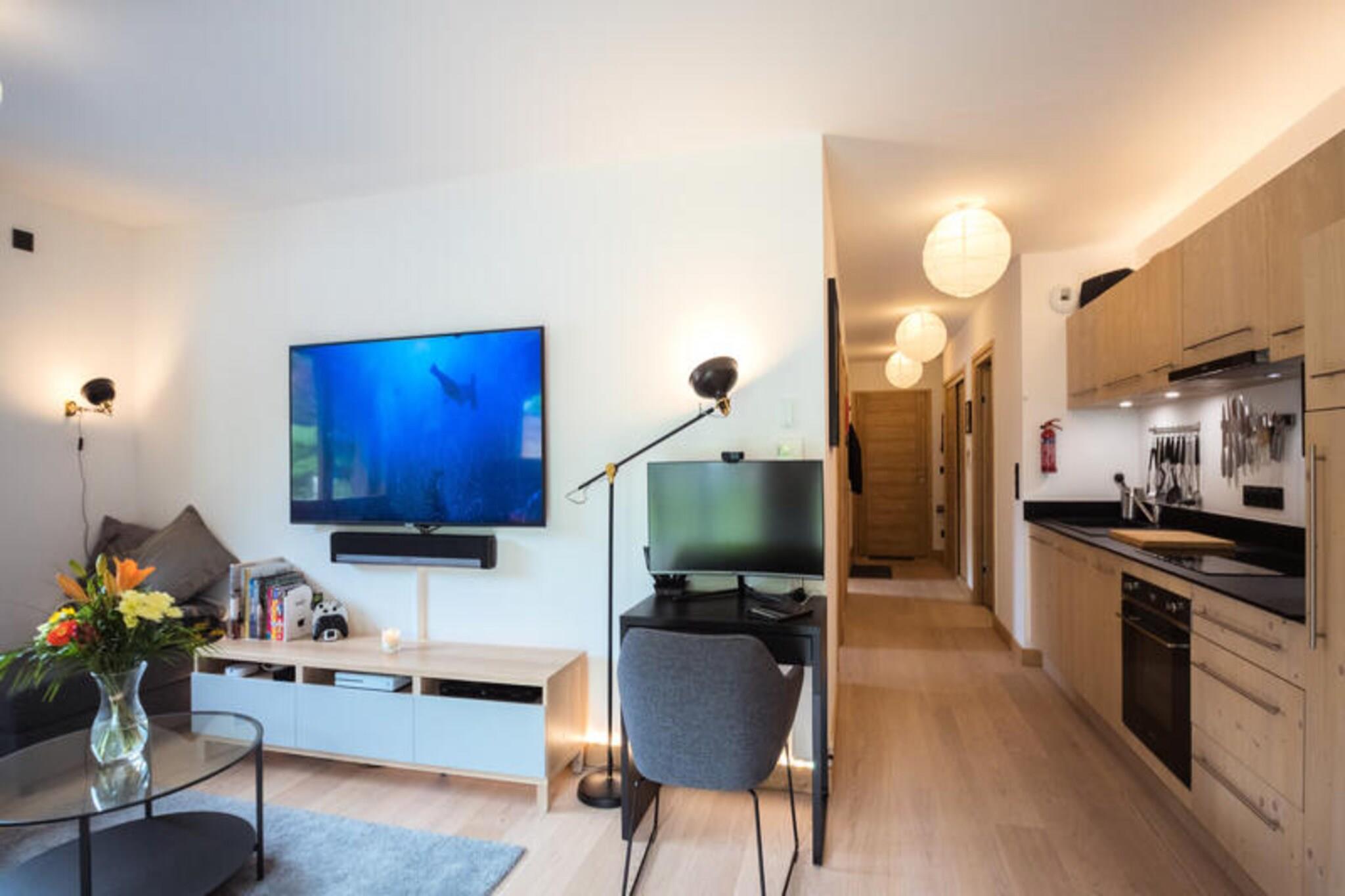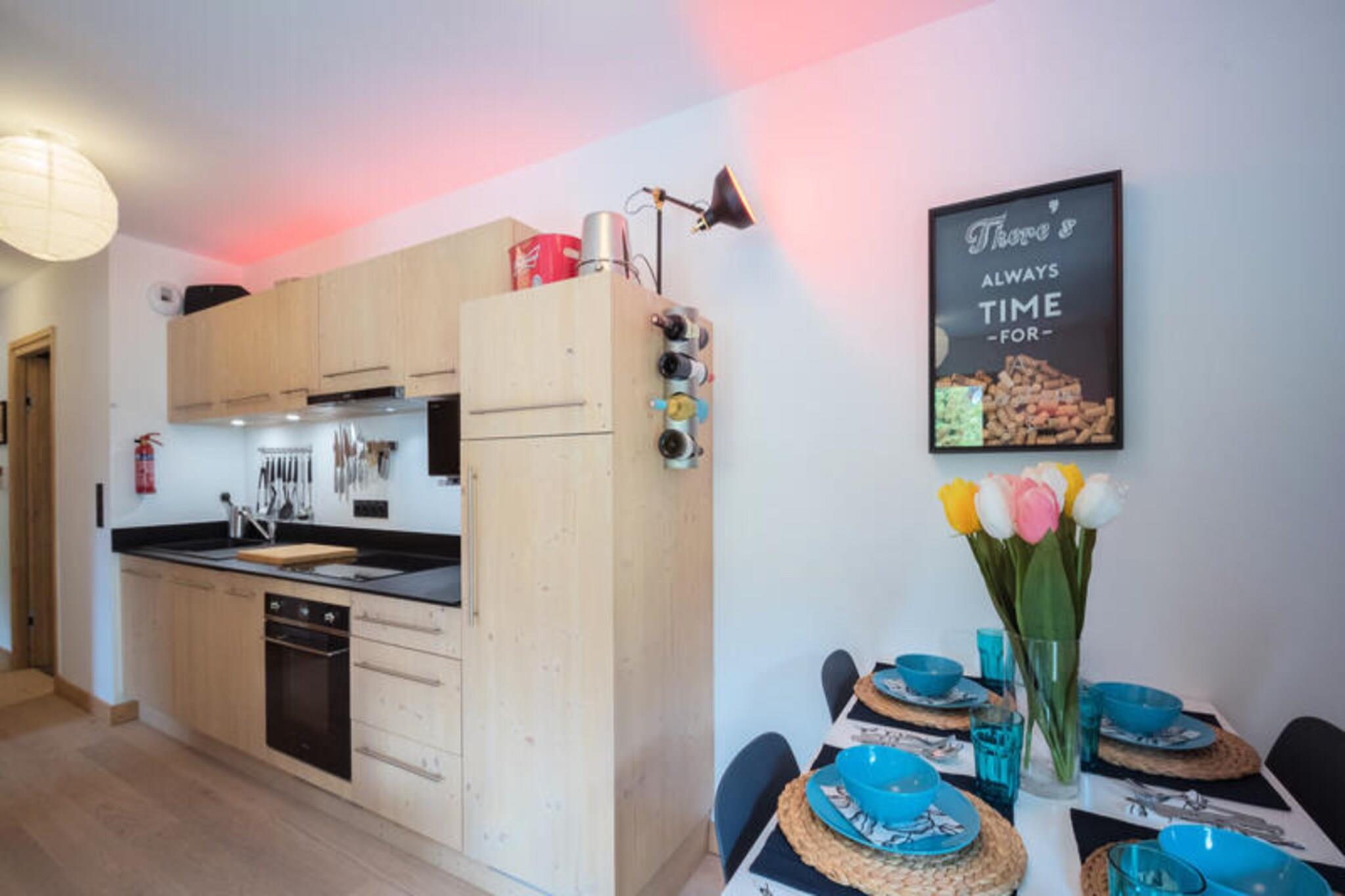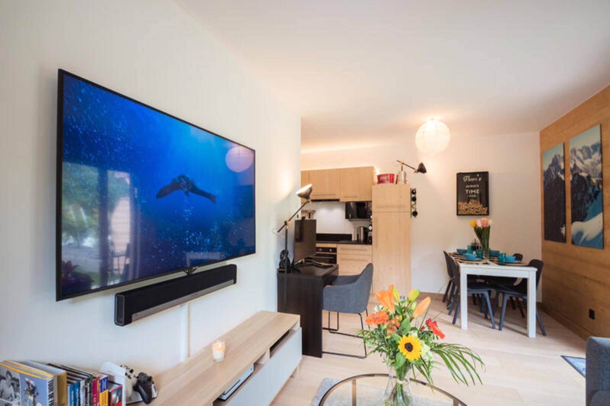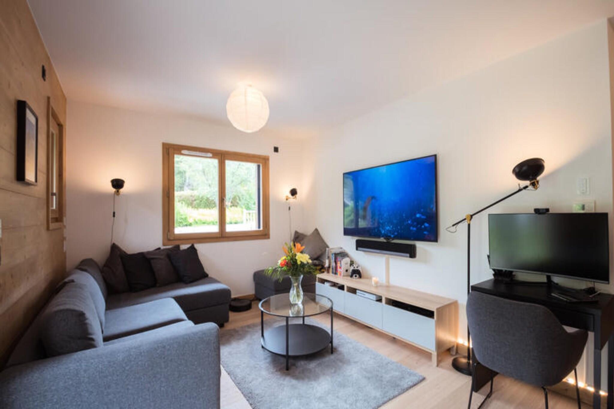 Diese schöne, 58 m² große, mit 4 Sternen klassifizierte Wohnung ist ideal für 4 Personen und befindet sich im Erdgeschoss der neuen Residenz „Le Green“ in Les Praz de Chamonix. Das Wohnzimmer verfügt über einen Essbereich und eine Lounge mit Apple TV, Netflix und Heimkino-Zugang. Die offene, voll ausgestattete Küche umfasst einen Kühlschrank, einen Gefrierschrank, einen Geschirrspüler, ein Induktionskochfeld, einen Backofen, eine Mikrowelle und Geräte wie ein Raclette- und Fondue-Set, eine Nespresso-Maschine, einen Toaster, einen Wasserkocher und einen Reis-Schnellkochtopf. Das Apartment verfügt außerdem über ein Doppelzimmer mit eigenem Bad, einem Duschbad, einer Toilette und einem Safe. Gäste werden die Nähe zu Outdoor-Aktivitäten zu schätzen wissen, da die Flégère-Seilbahn nur 350 Meter entfernt ist und ideal zum Skifahren geeignet ist. Die Bushaltestelle (Les Praz - Flégère) ist nur 120 Meter von der Wohnung entfernt und der SNCF-Bahnhof ist 210 Meter entfernt. Für diejenigen, die die Gegend weiter erkunden möchten, ist der Busbahnhof Chamonix 4,2 km entfernt. Die Wohnung liegt in der Nähe der örtlichen Cafés und Geschäfte in Les Praz und bietet einfachen Zugang zu allem, was Sie brauchen. Zusätzlich zu den Annehmlichkeiten des Apartments können Sie auf der 15 m² großen Terrasse mit Gartenmöbeln und einem 50 m² großen Privatgarten entspannen. Zur Immobilie gehören außerdem ein Skiraum mit Schuhtrockner, eine geschlossene Garage mit einer Höhe von 2,15 Metern und WLAN. Die Wohnung ist eine Nichtraucherwohnung, Haustiere sind nicht gestattet. Die Endreinigung (ausgenommen Küche und Müll) sowie Toilettenartikel und Bettwäsche sind im Preis inbegriffen.