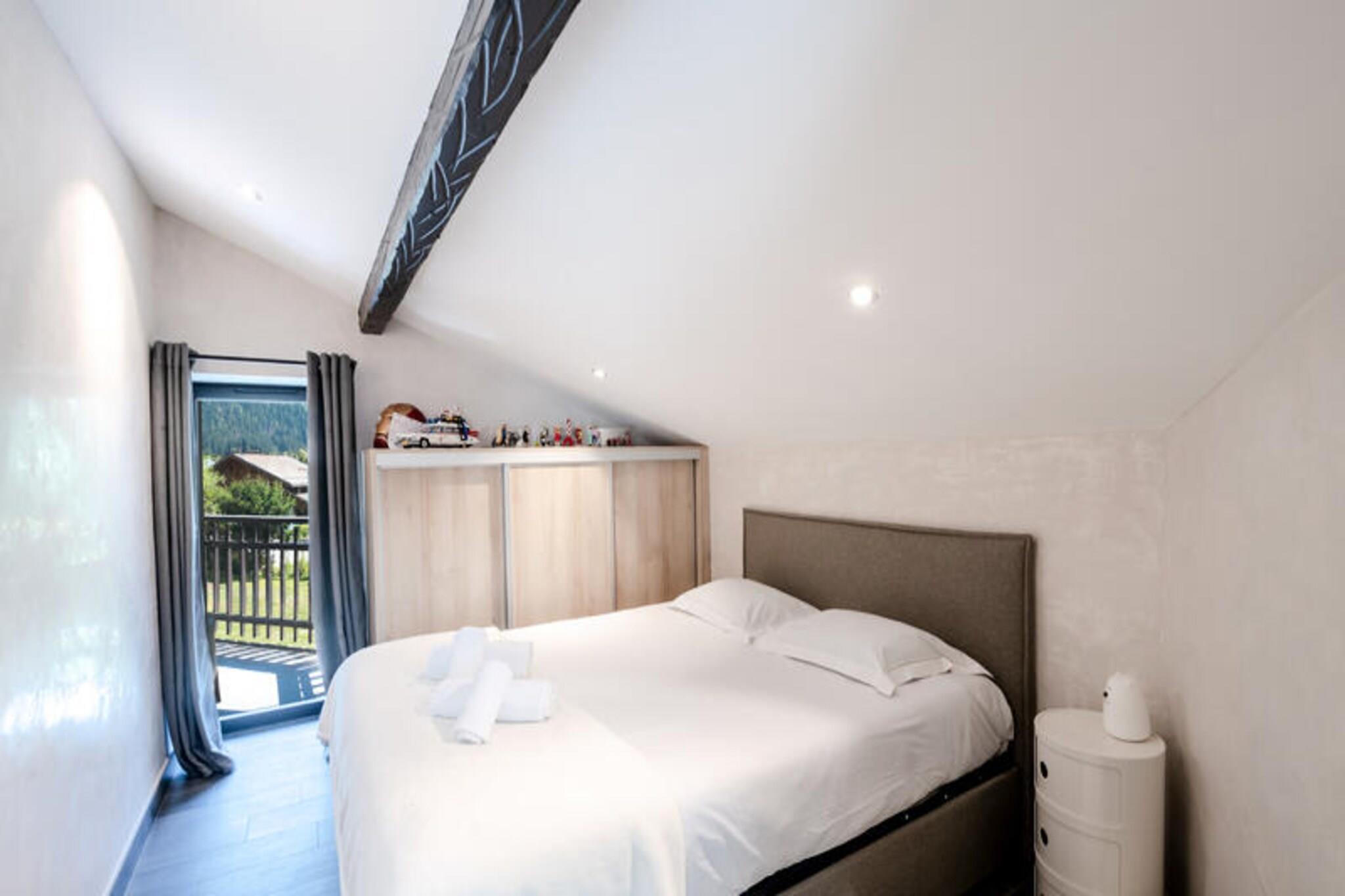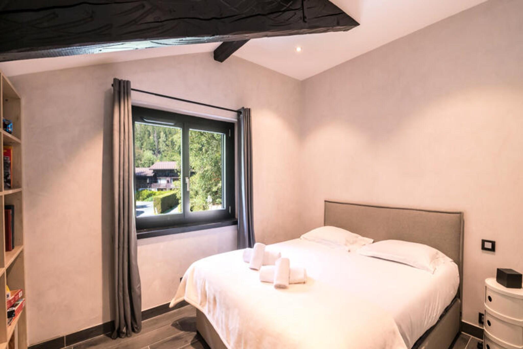 Dieses schöne 150 m² große Halbchalet ist perfekt für bis zu 8 Gäste und verfügt über 4 gut ausgestattete Doppelzimmer, jedes mit Zugang zu einem Balkon und malerischer Aussicht auf die Aiguilles de Chamonix oder Flégère. In der Unterkunft ist das Rauchen verboten und Haustiere sind nicht gestattet. Es bietet ein geräumiges Wohnzimmer, einen Essbereich und moderne Annehmlichkeiten wie WLAN, TV und eine Waschküche. Mit separaten Toiletten auf verschiedenen Ebenen ist das Chalet auf Bequemlichkeit und Komfort ausgelegt und somit ein idealer Rückzugsort für Familien oder Gruppen. Das Chalet liegt im ruhigen Viertel Les Praz, nur 2 km vom pulsierenden Stadtzentrum von Chamonix entfernt, wo Sie eine Vielzahl von Attraktionen, Cafés und Märkten finden. Die nur 2 km entfernte Flégère-Seilbahn ist ideal für Skifahrer und Abenteurer. Für atemberaubende Ausblicke und ein aufregendes Erlebnis ist die Seilbahn Aiguille du Midi ganz in der Nähe. Gäste können die Region bequem erkunden, da die Bushaltestelle in Les Ilettes nur 160 m von der Unterkunft entfernt ist und der SNCF-Bahnhof in Les Praz nur 1 km entfernt ist und bequeme Transportmöglichkeiten bietet. Das Chalet verfügt über eine voll ausgestattete Küche mit Induktionskochfeld, Backofen, Mikrowelle, Geschirrspüler und Kaffeemaschine. Es gibt zwei Badezimmer, eines mit Badewanne und das andere mit Dusche, sowie separate Toiletten für zusätzlichen Komfort. Ein Waschraum mit Waschmaschine und Trockner erleichtert längere Aufenthalte. Entspannen Sie sich auf der Terrasse mit Gartenmöbeln oder entspannen Sie nach einem erlebnisreichen Tag im privaten Garten. Die Unterkunft bietet außerdem private Parkplätze für einen stressfreien Aufenthalt.