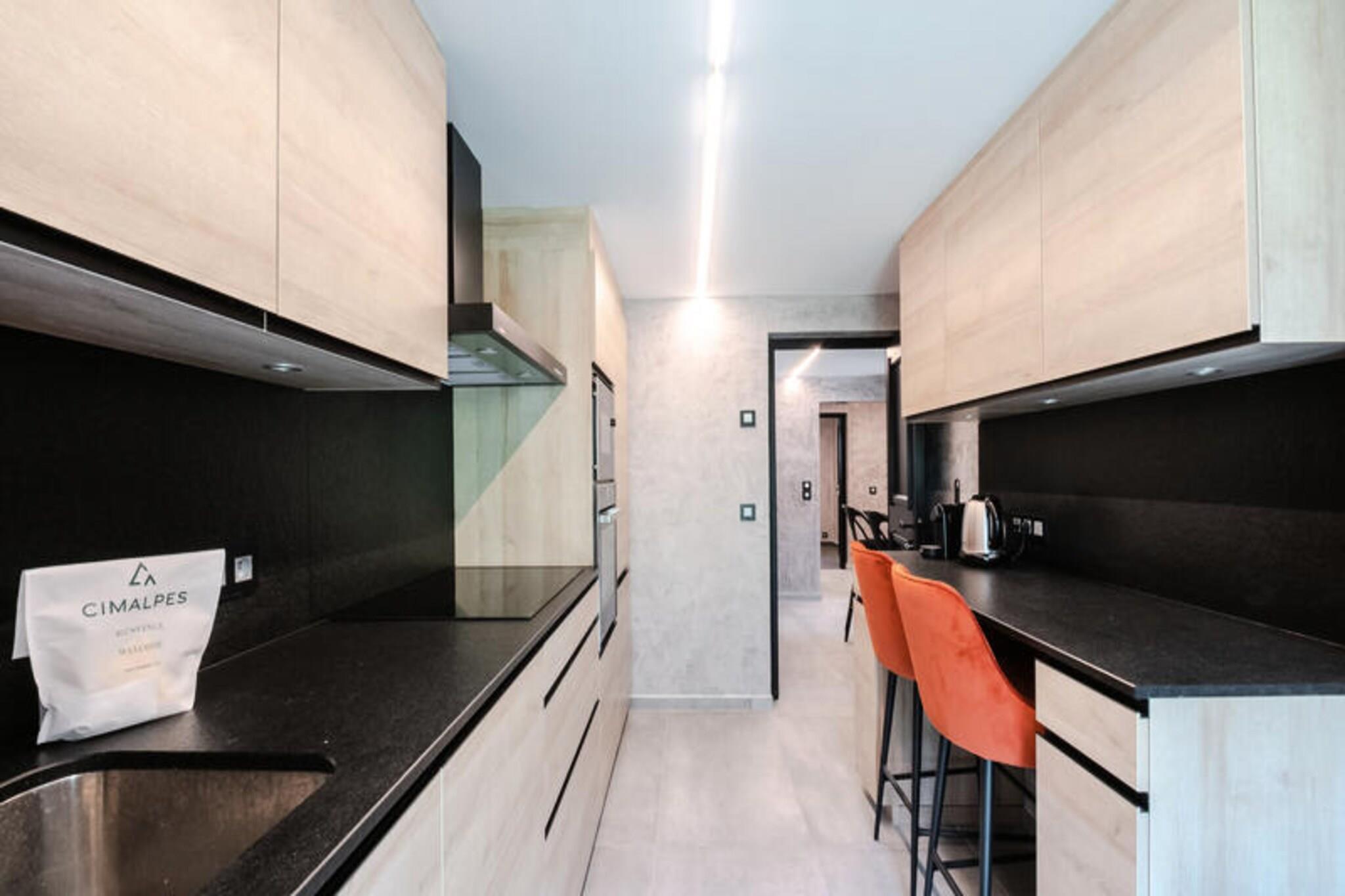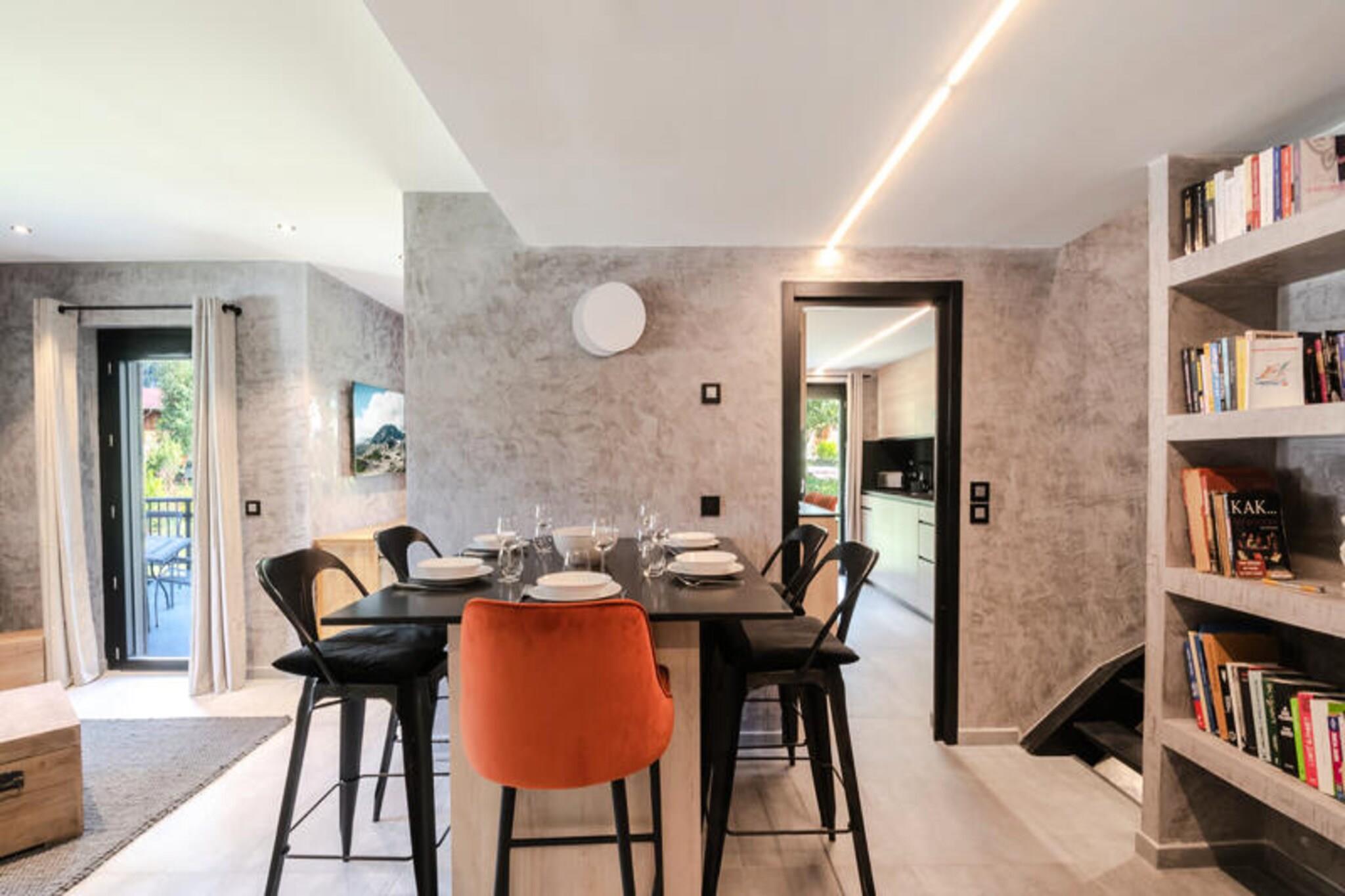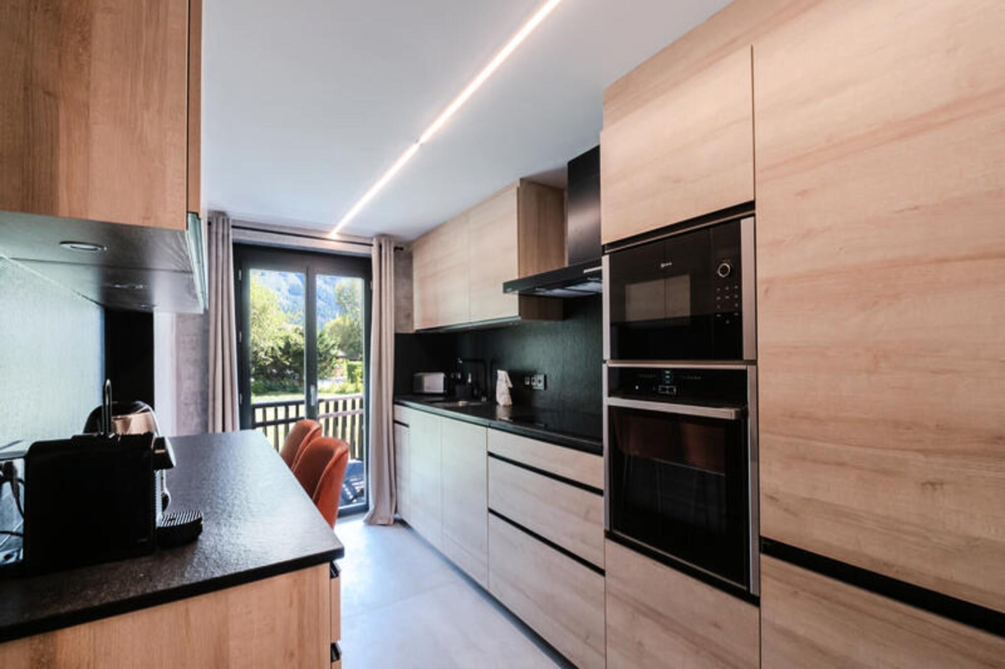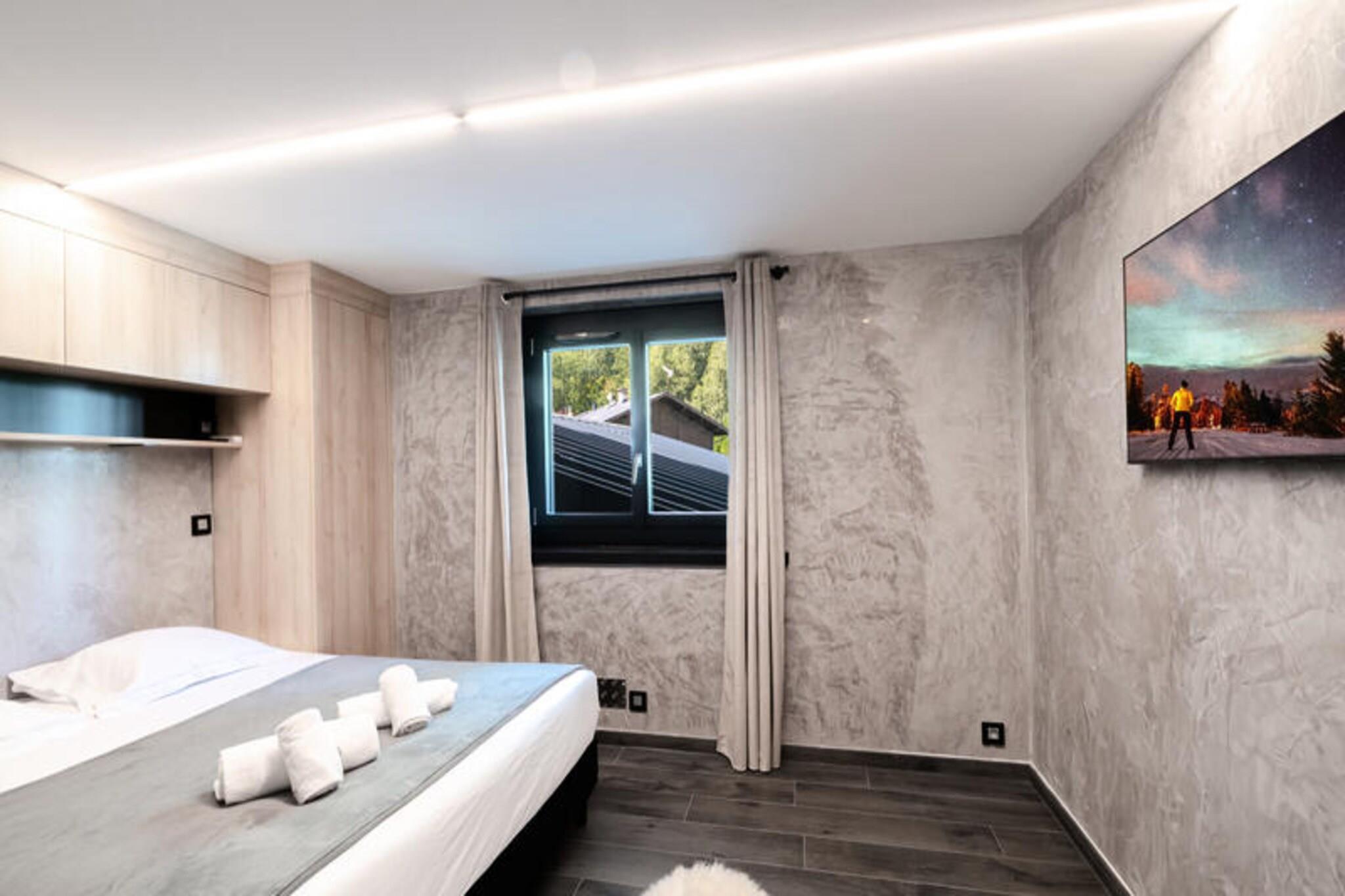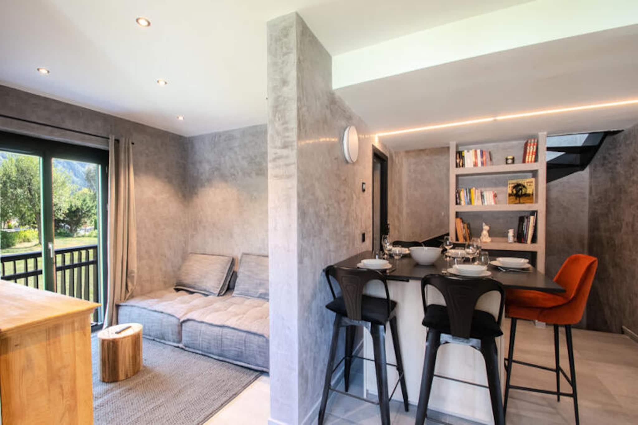 Dieses 134 m² große Halbchalet bietet auf 3 Ebenen Platz für bis zu 6 Personen. Es verfügt über 3 Schlafzimmer, darunter ein Doppelzimmer mit TV, ein Einzelzimmer mit Blick auf den Mont-Blanc und ein Doppelzimmer mit Blick auf Flégère. Das Wohn-/Esszimmer ist mit einem TV-Bereich ausgestattet und im Keller steht ein Schlafsofa für weitere Gäste zur Verfügung. Die Unterkunft ist eine Nichtraucherunterkunft und akzeptiert keine Haustiere. Es bietet WLAN und private Parkplätze und bietet einen komfortablen Aufenthalt für Familien oder Gruppen, die einen ruhigen Rückzugsort suchen. Dieses Chalet liegt in der ruhigen Wohngegend Les Praz, 2 km vom Zentrum von Chamonix entfernt, wo Sie Cafés, Geschäfte und Märkte finden. Die Flégère-Seilbahn liegt in der Nähe und eignet sich daher ideal zum Skifahren oder Wandern. Die Bushaltestelle Les Ilettes ist 160 m entfernt und der SNCF-Bahnhof in Les Praz ist 1 km entfernt und bietet eine gute Anbindung an das Tal. Das Chalet verfügt über eine voll ausgestattete Küche mit modernen Geräten wie Kühlschrank, Backofen, Mikrowelle, Induktionskochfeld und Geschirrspüler. Ein Waschraum mit Waschmaschine und Trockner sowie ein Skischuhtrockner in der Garage sorgen für zusätzlichen Komfort. Die Terrasse bietet Gartenmöbel und Liegestühle, ideal zum Entspannen und Genießen der Aussicht.