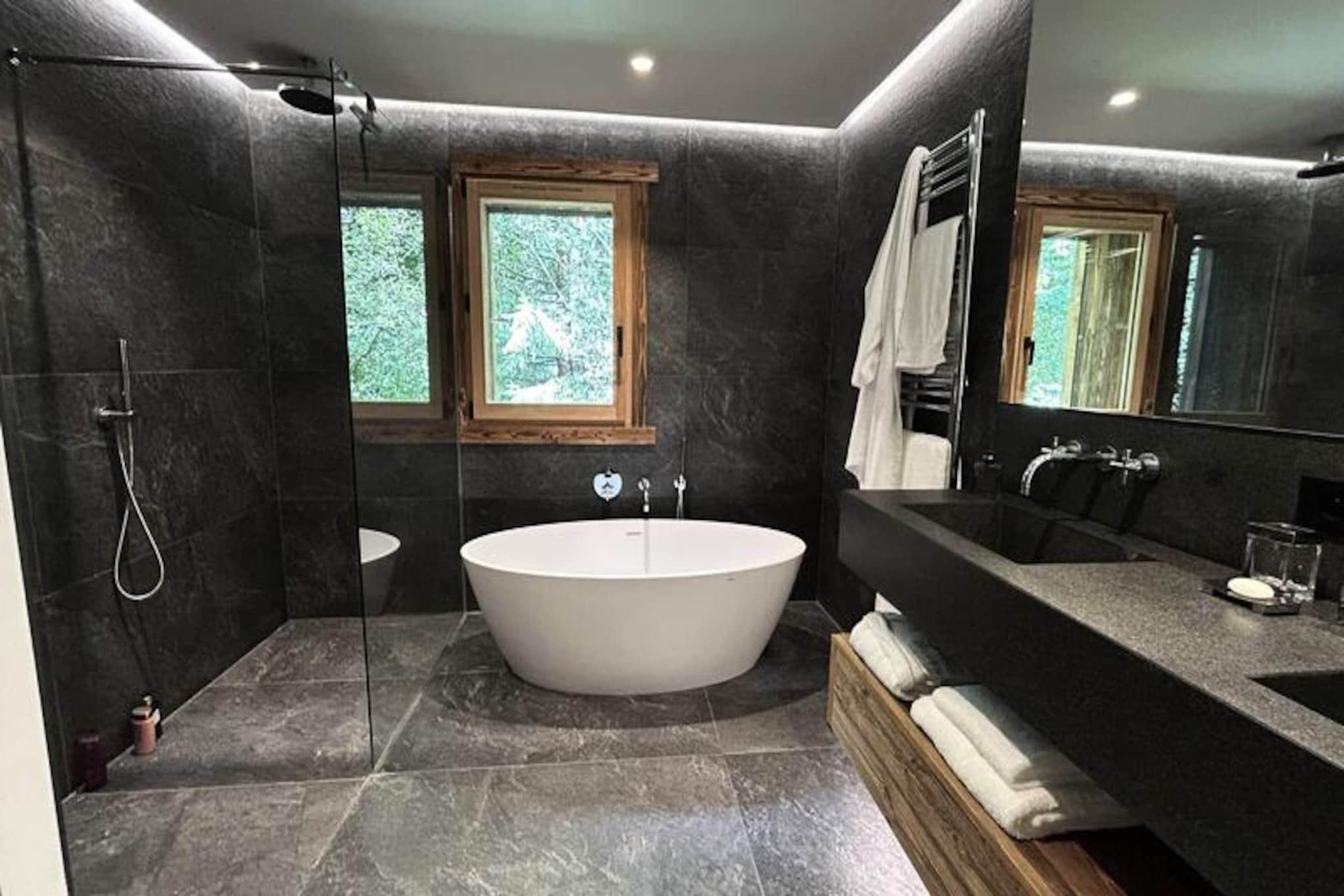 Mitten in der malerischen Ebene von Les Praz lädt das Chalet Black Rock Sie ein, in die friedvolle Schönheit der Alpen einzutauchen. Mit atemberaubendem Blick auf den Mont Blanc verbindet dieses luxuriöse Refugium traditionellen alpinen Charme mit moderner Eleganz und bietet so einen unvergesslichen Rückzugsort für bis zu 10 Gäste. Ob Sie Abenteuer oder Entspannung suchen – dieses Chalet bietet die perfekte Balance aus beidem. Stellen Sie sich vor, wie Sie im Whirlpool unter dem Sternenhimmel entspannen oder nach einem Tag auf der Piste einen Moment der Ruhe in der privaten Sauna genießen. Das Chalet erstreckt sich über drei Ebenen und bietet so Komfort und Privatsphäre für alle. Im Erdgeschoss befindet sich ein großzügiger, offener Wohnbereich mit einem gemütlichen Kamin, einer voll ausgestatteten Küche und einem Essbereich für 10 Personen, die sich zu einer Terrasse mit Panoramablick auf die Berge öffnen. Die Master-Suite auf dieser Ebene verfügt über ein komfortables Doppelbett, ein eigenes Ankleidezimmer und ein luxuriöses Badezimmer. Im Obergeschoss bieten drei elegant eingerichtete Schlafzimmer, jeweils mit eigenem Bad, erholsame Rückzugsorte. Im Untergeschoss befinden sich ein Schlafraum mit Etagenbetten, eine Fernsehlounge und ausreichend Stauraum für Ski- und Fahrradausrüstung. Das Chalet Black Rock ist ideal gelegen, nur 1,2 km von der Seilbahn La Flégère entfernt und bietet somit bequemen Zugang zu erstklassigen Ski- und Wanderwegen. Das charmante Dorf Les Praz mit seinen Geschäften, Restaurants und dem Bahnhof ist nur einen kurzen Spaziergang entfernt, und die lebhafte Stadt Chamonix erreichen Sie nach nur 3,1 km. Ob Sie die Pisten erkunden oder die exklusiven Annehmlichkeiten des Chalets genießen – hier erleben Sie jeden Moment alpine Magie. Wählen Sie das Chalet Black Rock für Ihren nächsten Bergurlaub und erleben Sie die perfekte Kombination aus Komfort, Eleganz und Abenteuer im Herzen der französischen Alpen.
