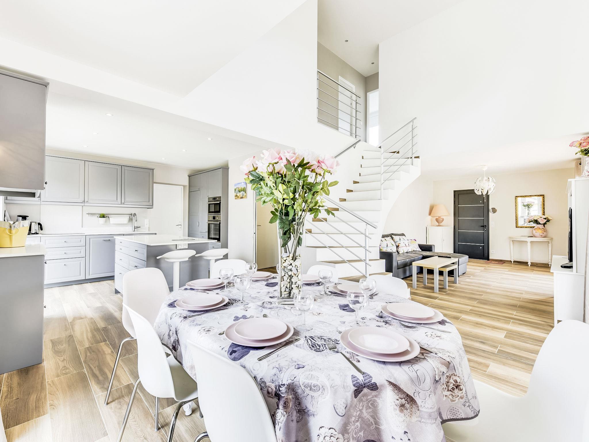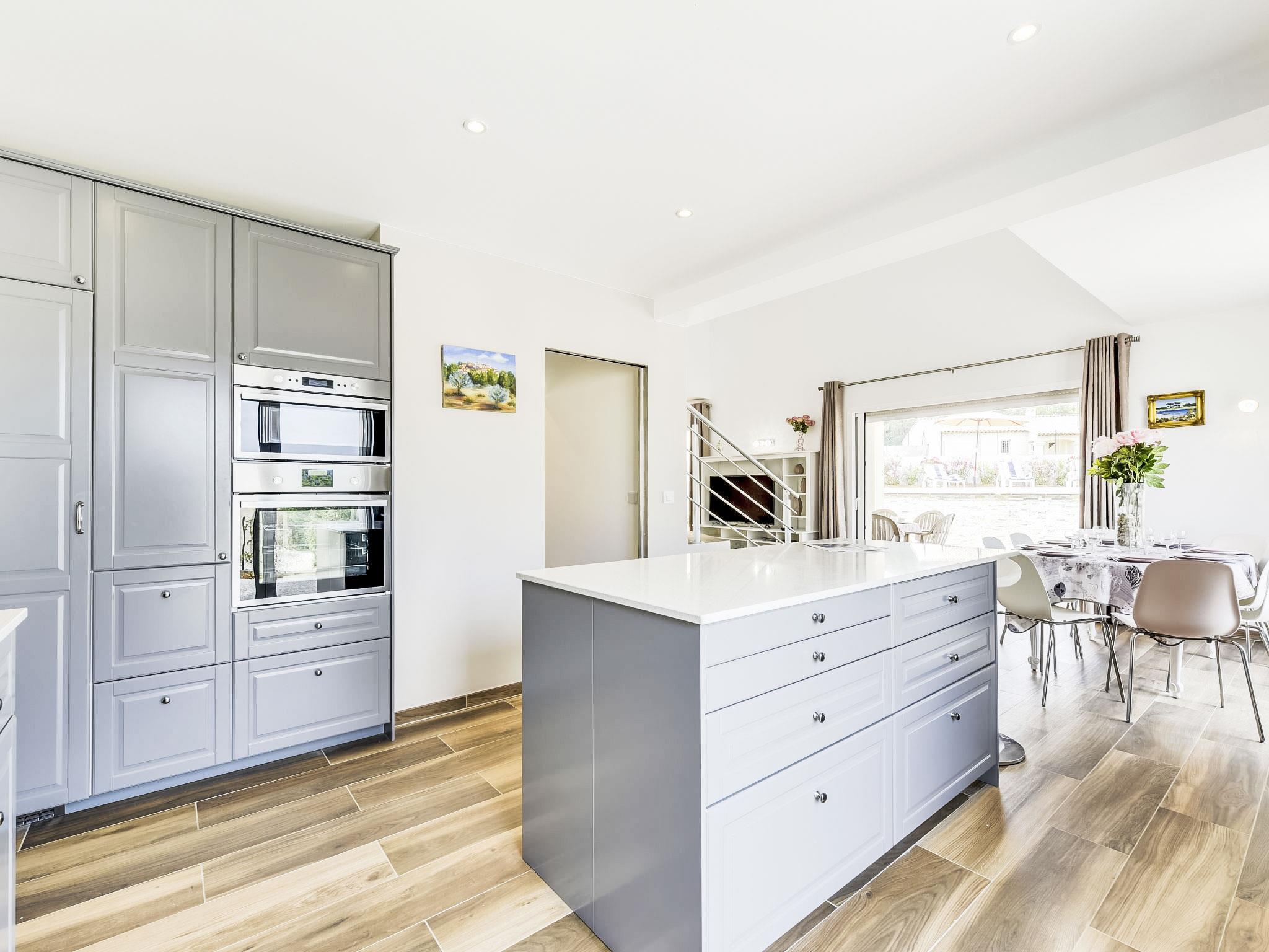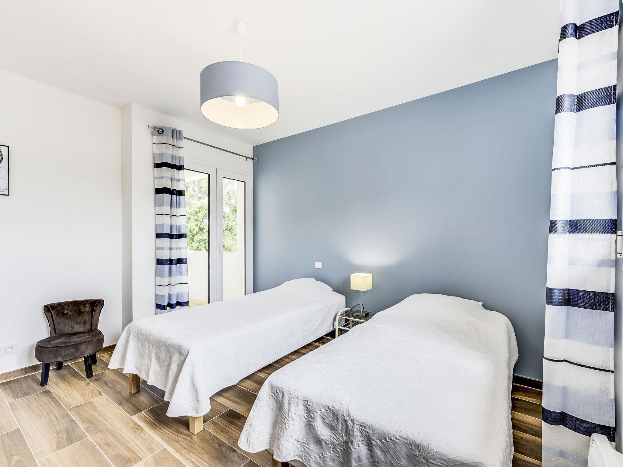 5-Zimmer-Haus 120 m2 auf 2 Stockwerken. Komfortabel und modern eingerichtet: Wohn-/Esszimmer mit TV (Flachbildschirm). Ausgang zur Terrasse. 1 grosses Zimmer mit 1 franz. Bett (140 cm, Länge 190 cm), Dusche und Klimaanlage. Offene Küche (Backofen, Geschirrspüler, 4 Induktionskochplatten, Mikrowelle, Tiefkühler, elektrische Kaffeemaschine, Kapseln für die Kaffeemaschine (L'or barista) extra, Kochinsel). Sep. WC. Obergeschoss: 1 Zimmer mit 2 Betten (90 cm, Länge 190 cm). Ausgang zur Terrasse. 1 Zimmer mit 1 franz. Bett (140 cm, Länge 190 cm). 1 Zimmer mit 1 franz. Bett (140 cm, Länge 190 cm). Ausgang zur Terrasse. Dusche/WC, sep. WC, Doppelwaschbecken. E-Heizung, Klimaanlage. Balkon 10 m2, Terrasse 40 m2. Gartengrill, Liegestühle (6). Zur Verfügung: Waschmaschine, Kinderhochstuhl, Babybett. Internet (WLAN, gratis). Bitte beachten: Nichtraucher-Haus. Rauchmelder.