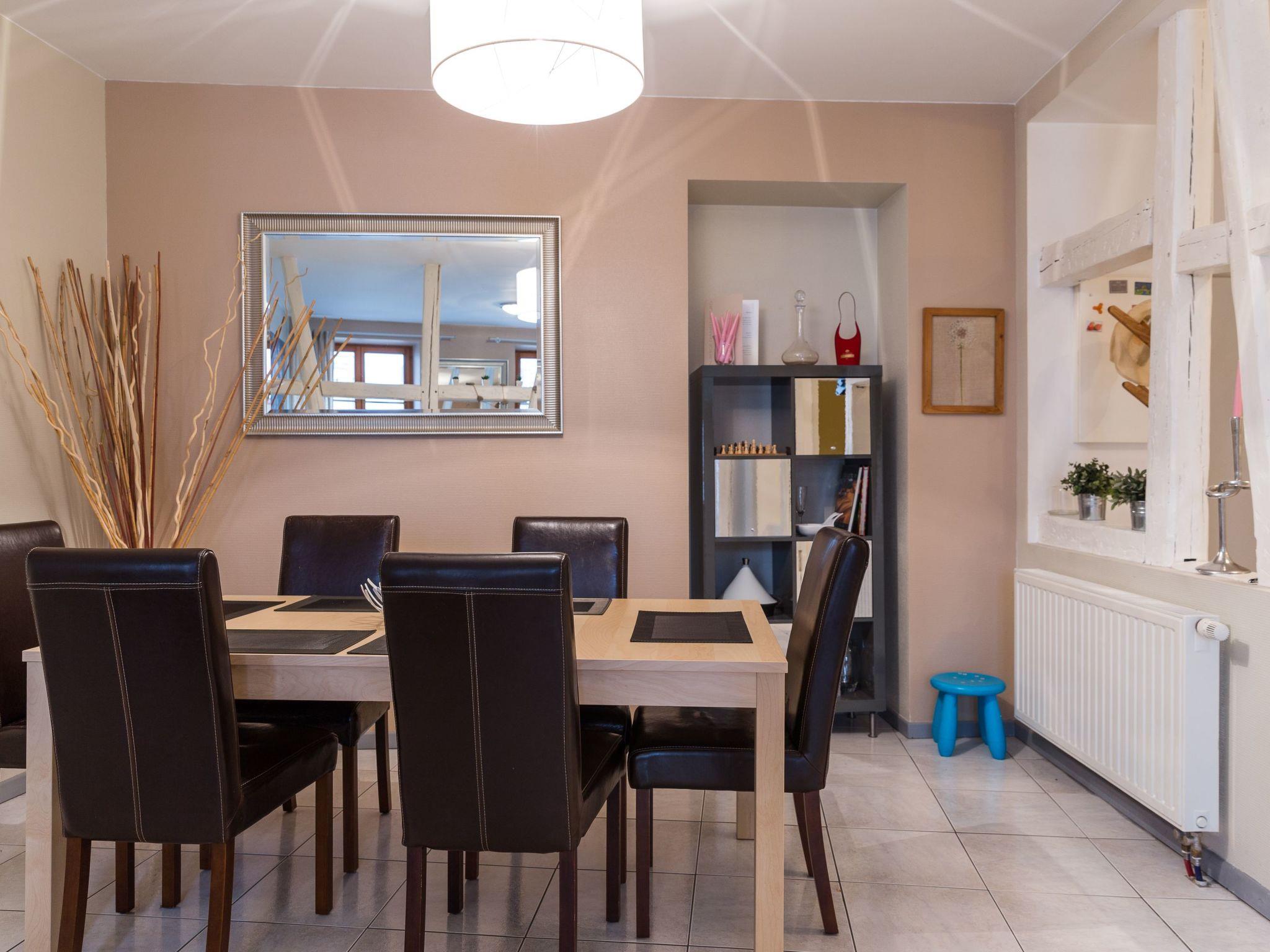 In der ersten Etage eines typisch elsässischen Hauses, bietet diese helle und geräumige Wohnung auf 105 m² Platz für acht Personen. Zwei von drei Schlafzimmer sind jeweils mit zwei 80 cm breiten Einzelbetten ausgestattet, die sich auch zu Doppelbetten zusammenschieben lassen. In einem davon, gibt es darüber hinaus ein Schlafsofa mit 140 cm Breite. Im dritten Schlafzimmer sind die beiden Einzelbetten 90 cm breit. Des Weiteren ist der Wohnbereich neben einem großen Esstisch und einem Flachbildfernseher mit einem Schlafsofa für zwei Personen (140 x 200 cm) ausgestattet. Das Bad verfügt über eine Badewanne mit Duschwand, ein doppeltes Waschbecken, WC, Wäscheständer und Föhn. Die Küche ist mit Kühlschrank, Tiefkühlschrank, Ceran-Induktionsherd, Spülmaschine, Backofen, Mikrowelle, Toaster, einer Senseo-Kaffemaschine, Zitruspresse sowie einem Raclette- und Fondue-Gerät versehen. Auch eine Waschmaschine mit Trockenfunktion steht hier für Sie zur Verfügung. Ebenso sind ein Staubsauger, Bügeleisen und -brett, Reinigungsmittel sowie Geschirrtücher vorhanden. Handtücher und Bettwäsche können auf Wunsch gegen einen Aufpreis bereitgestellt werden. Heizung und Internet (WLAN mit hoher Geschwindigkeit) sind in allen Räumen vorhanden.