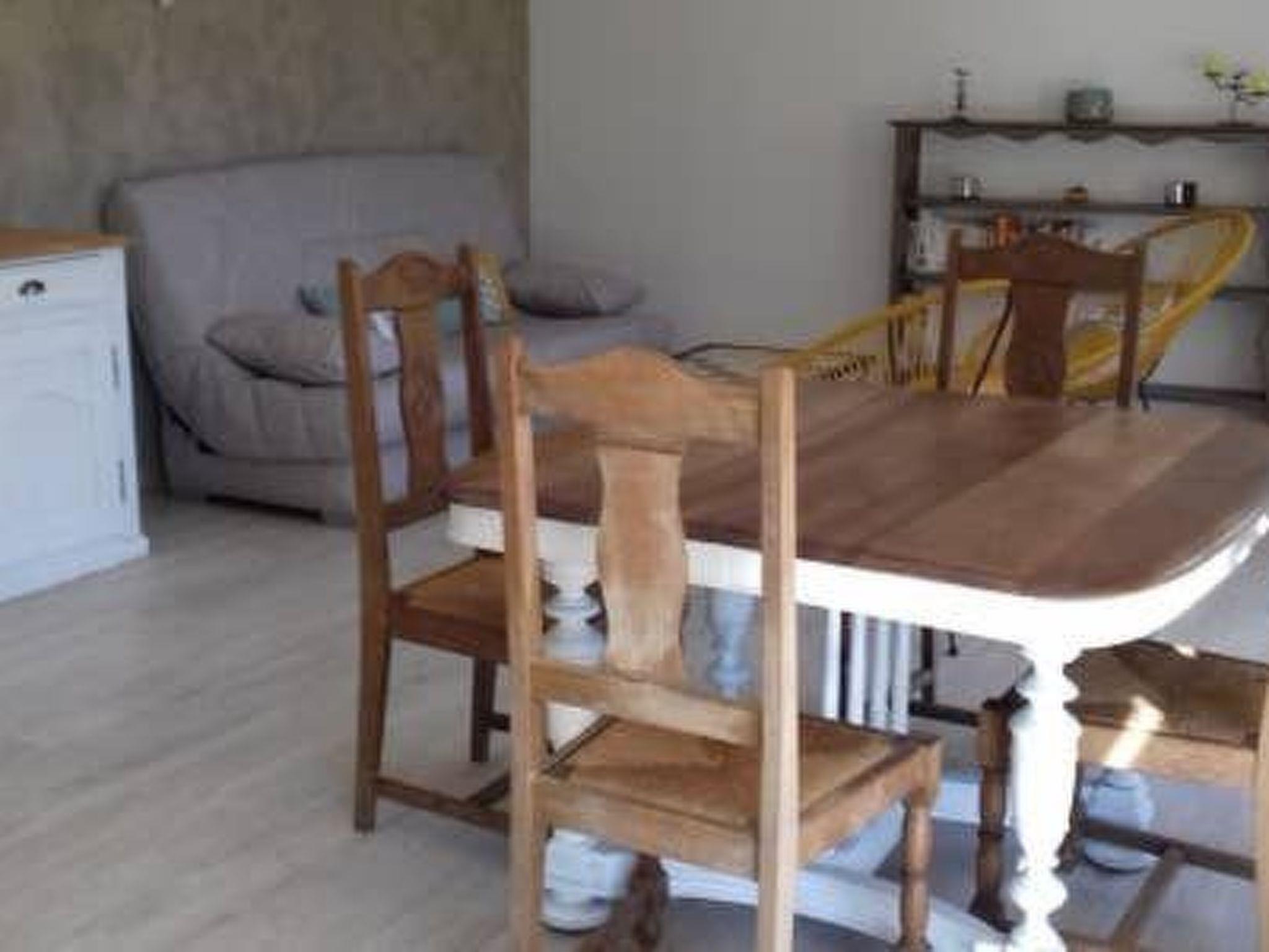 Terrasse: Sofa, 2 Sessel, Tisch mit 6 Stühlen.