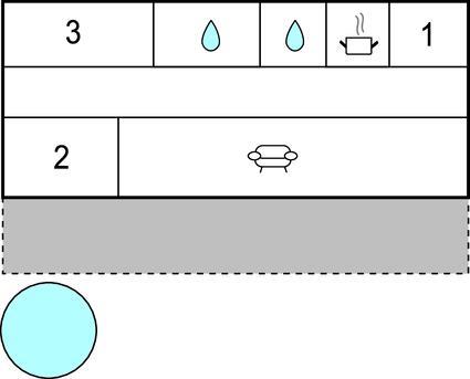 Badezimmer 5m2 (nr. 1) - WC. Warmes und kaltes Wasser. Dusche