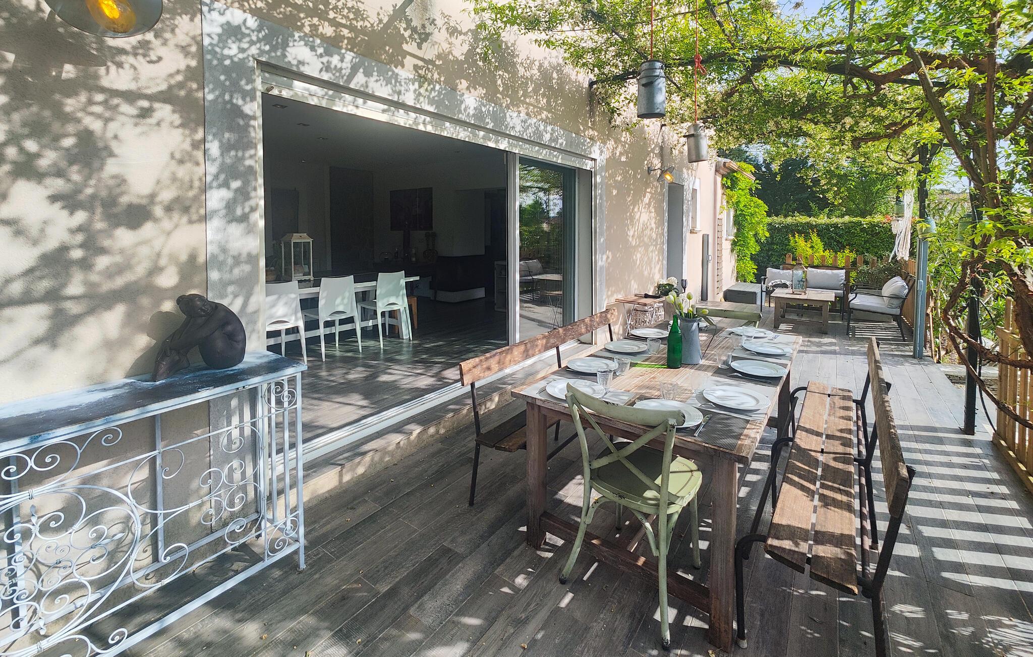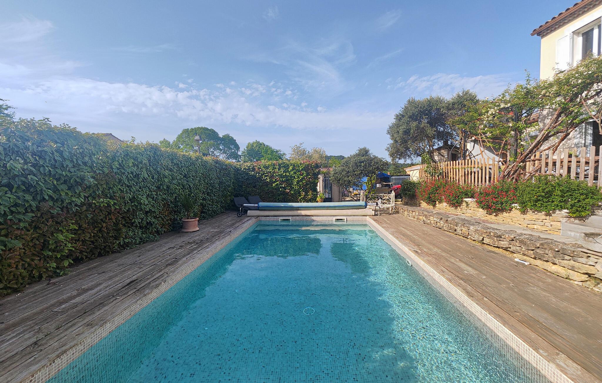 Genießen Sie entspannte Urlaubstage in diesem stilvollen Ferienhaus mit Pool und schöner Terrasse.