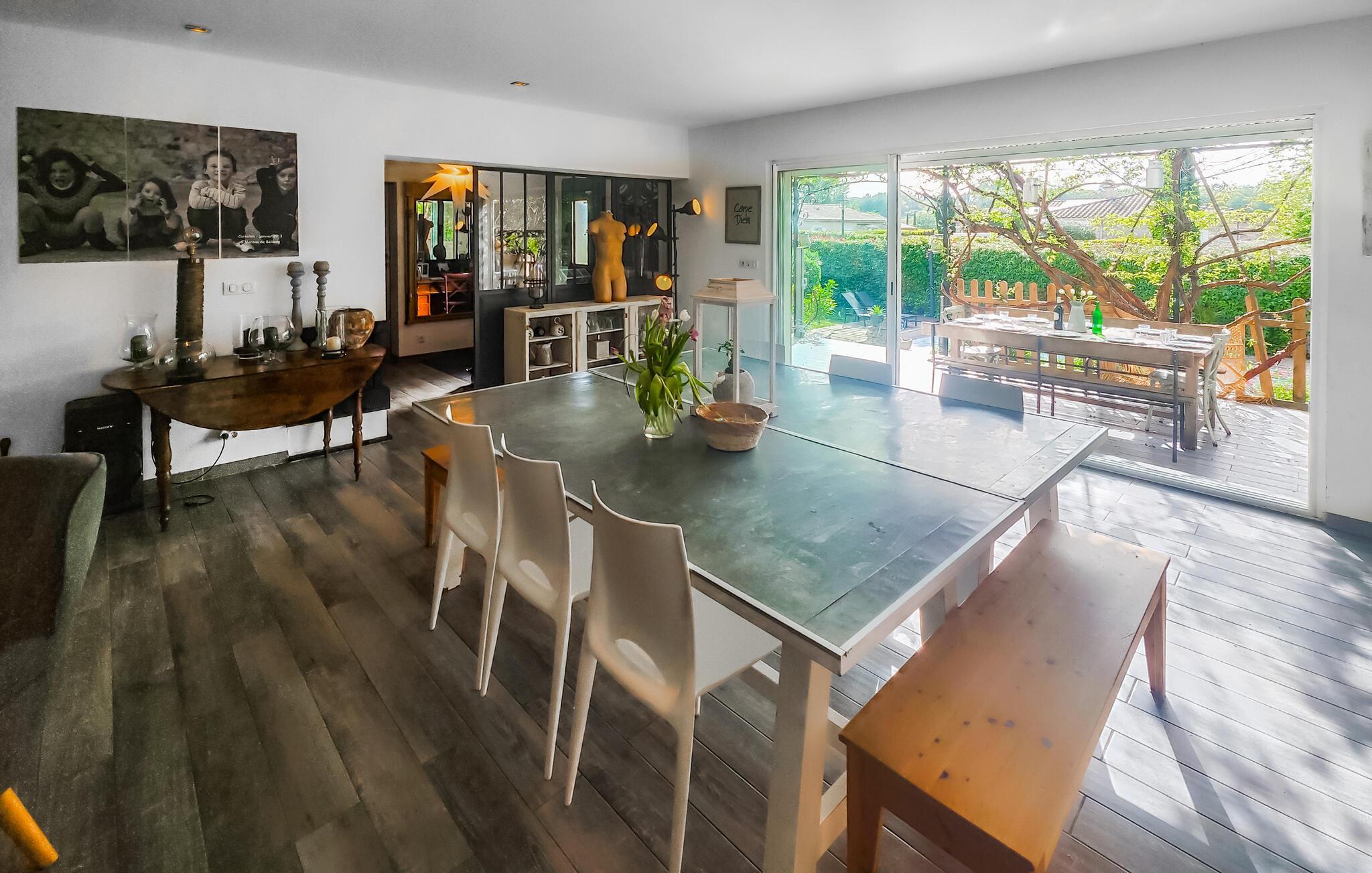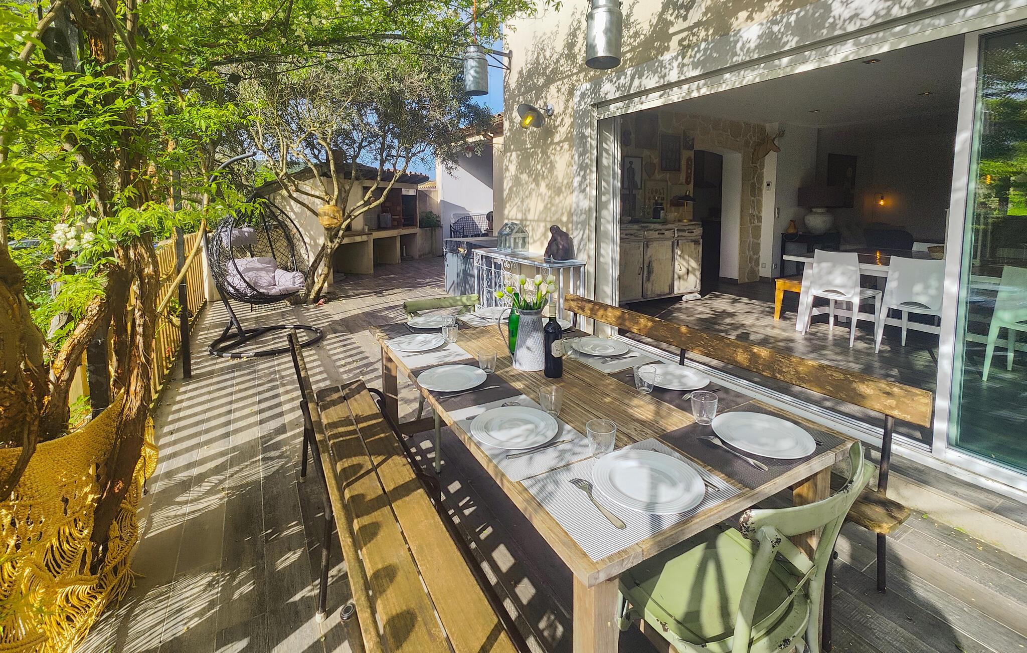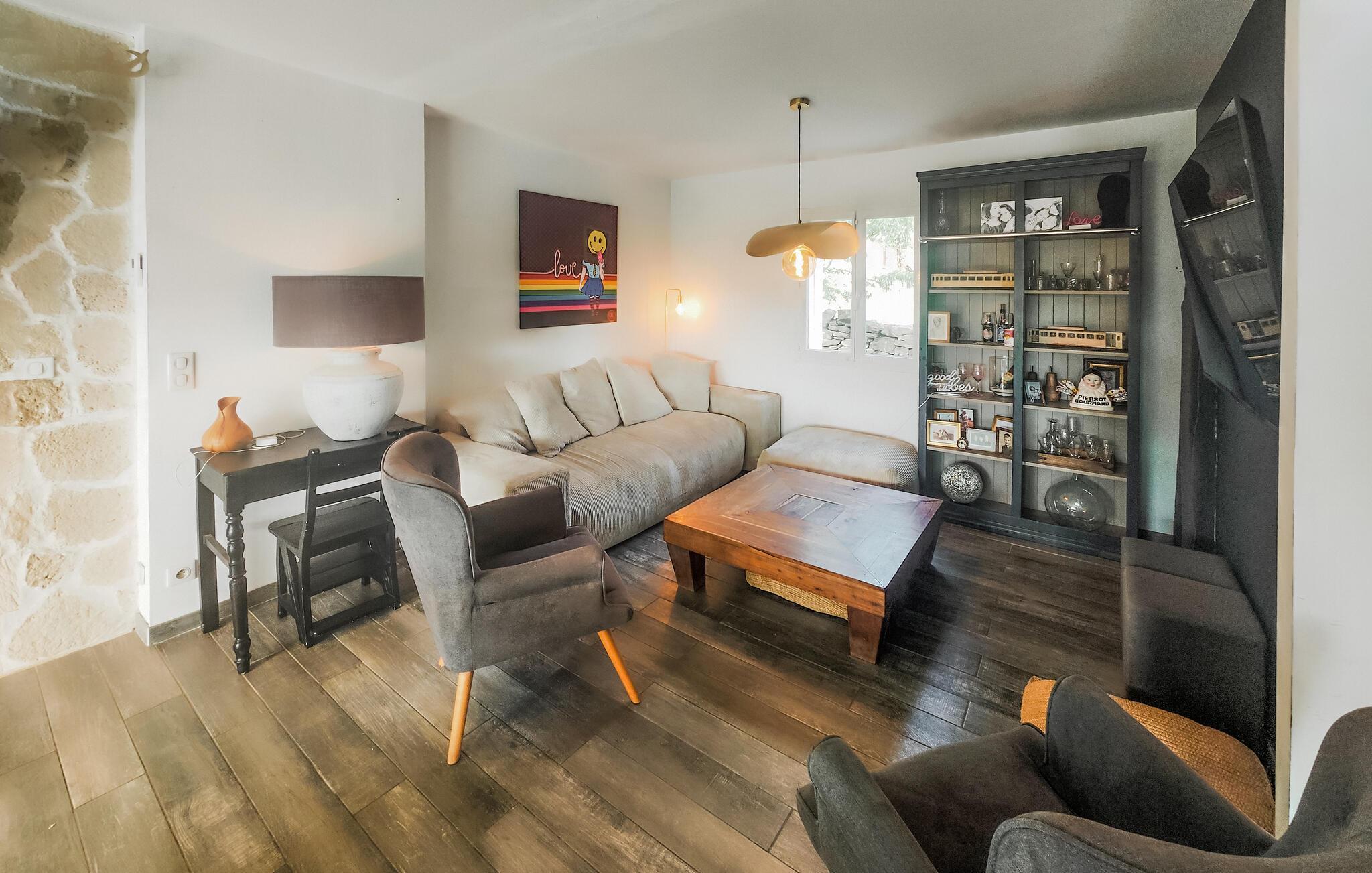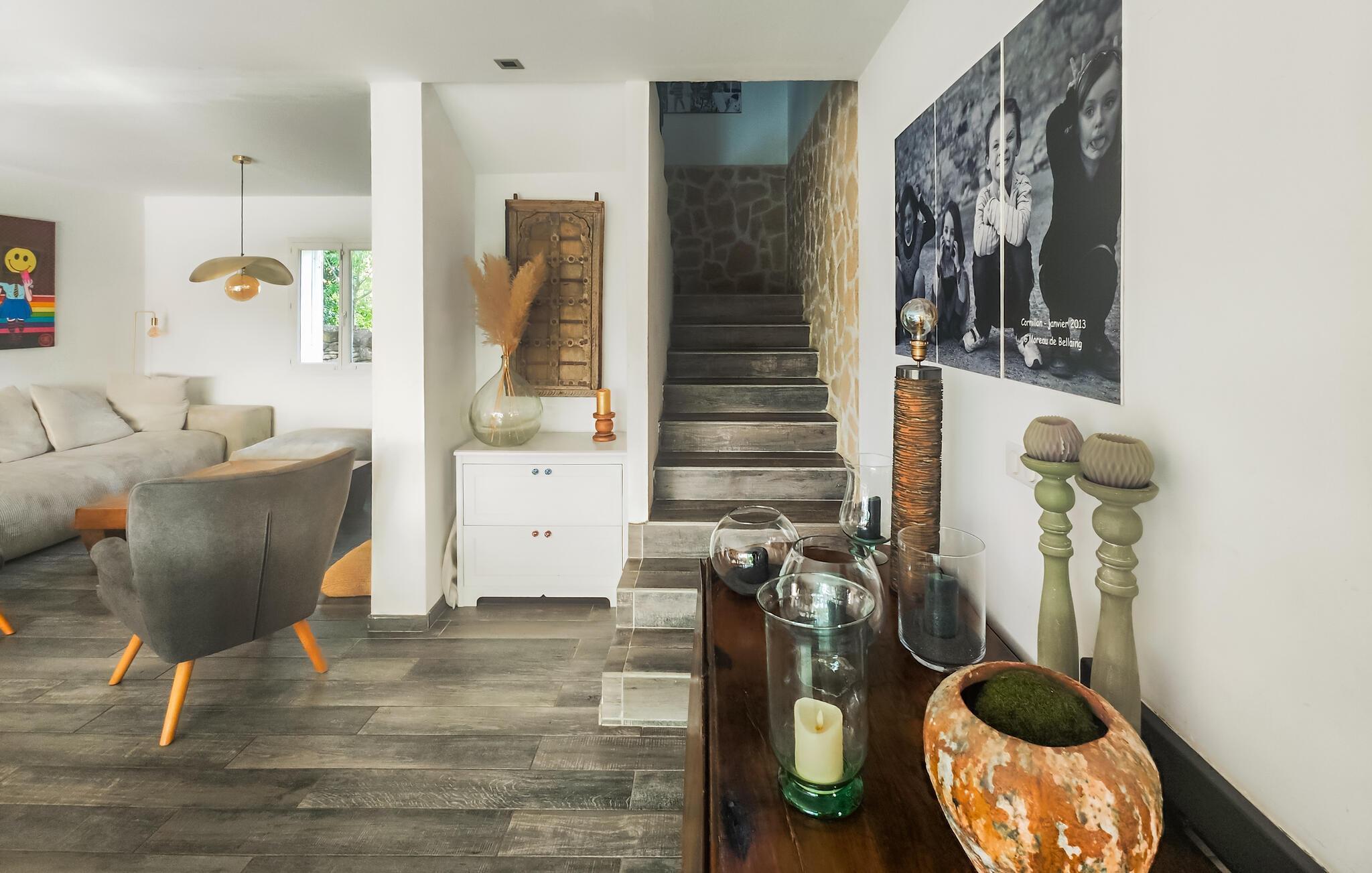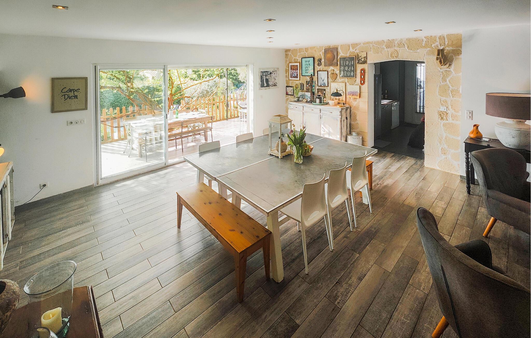In diesem Ferienhaus mit mediterranem Charme ist viel Platz für Ihre Familie oder Freunde. Lassen Sie sich von der schönen Einrichtung und der ruhigen Lage begeistern. Der helle Wohn- und Essbereich mit großen Glasflächen bietet direkten Zugang zur Terrasse. Genießen Sie gemeinsame Mahlzeiten an dem langen Esstisch, entspannen Sie sich in der gemütlichen Sitzecke oder bereiten Sie Ihre Lieblingsgerichte in der praktischen Küche mit Küchentheke zu. Das Interieur verbindet geschickt modernes Design mit rustikalen Akzenten, was für eine einladende Atmosphäre sorgt.
