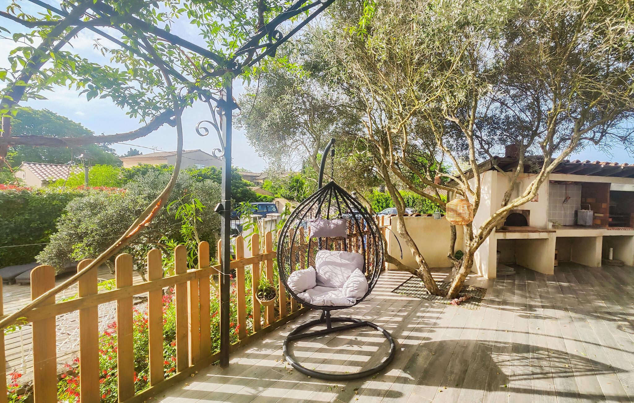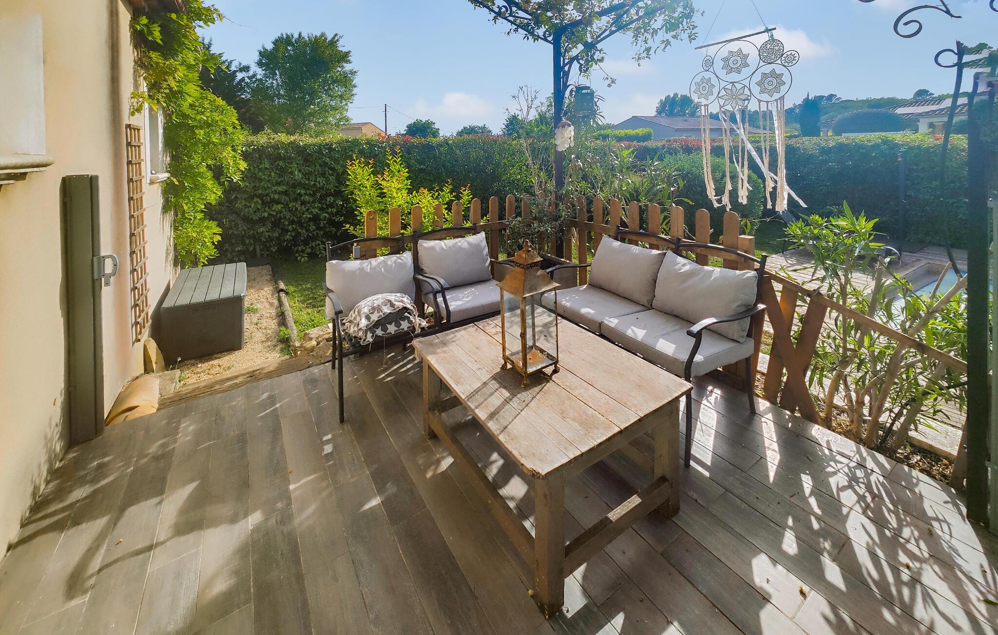 Auf der überdachten Terrasse mit Lounge-Sofa und schönem Esstisch können Sie den Tag im Freien verbringen. Ruhen Sie sich auf einer der Liegen am Pool aus und nehmen Sie gelegentlich ein erfrischendes Bad. Der liebevoll angelegte Garten mit Blick auf die umliegenden Hügel und Felder bietet Privatsphäre und mediterranes Flair.
