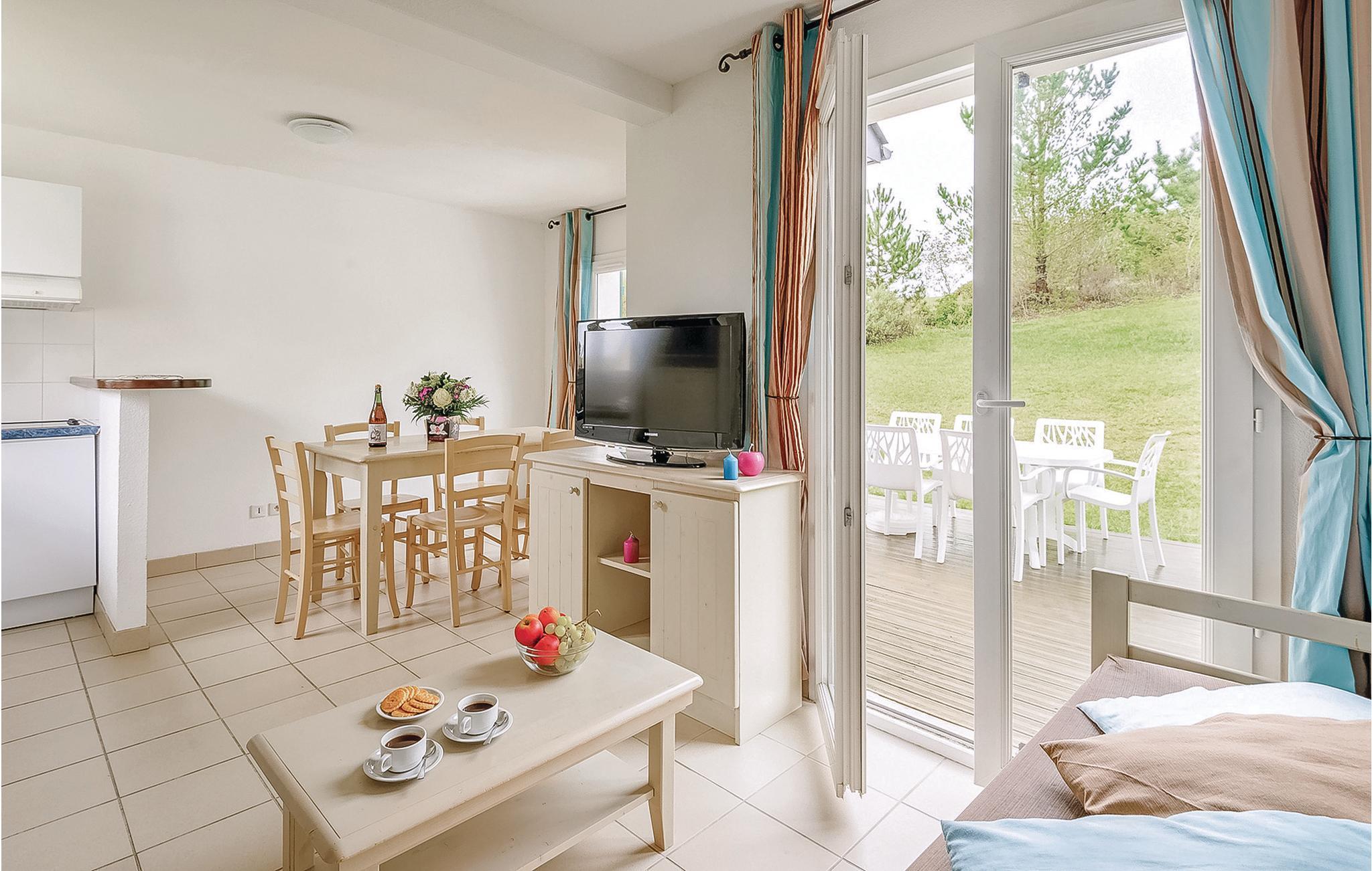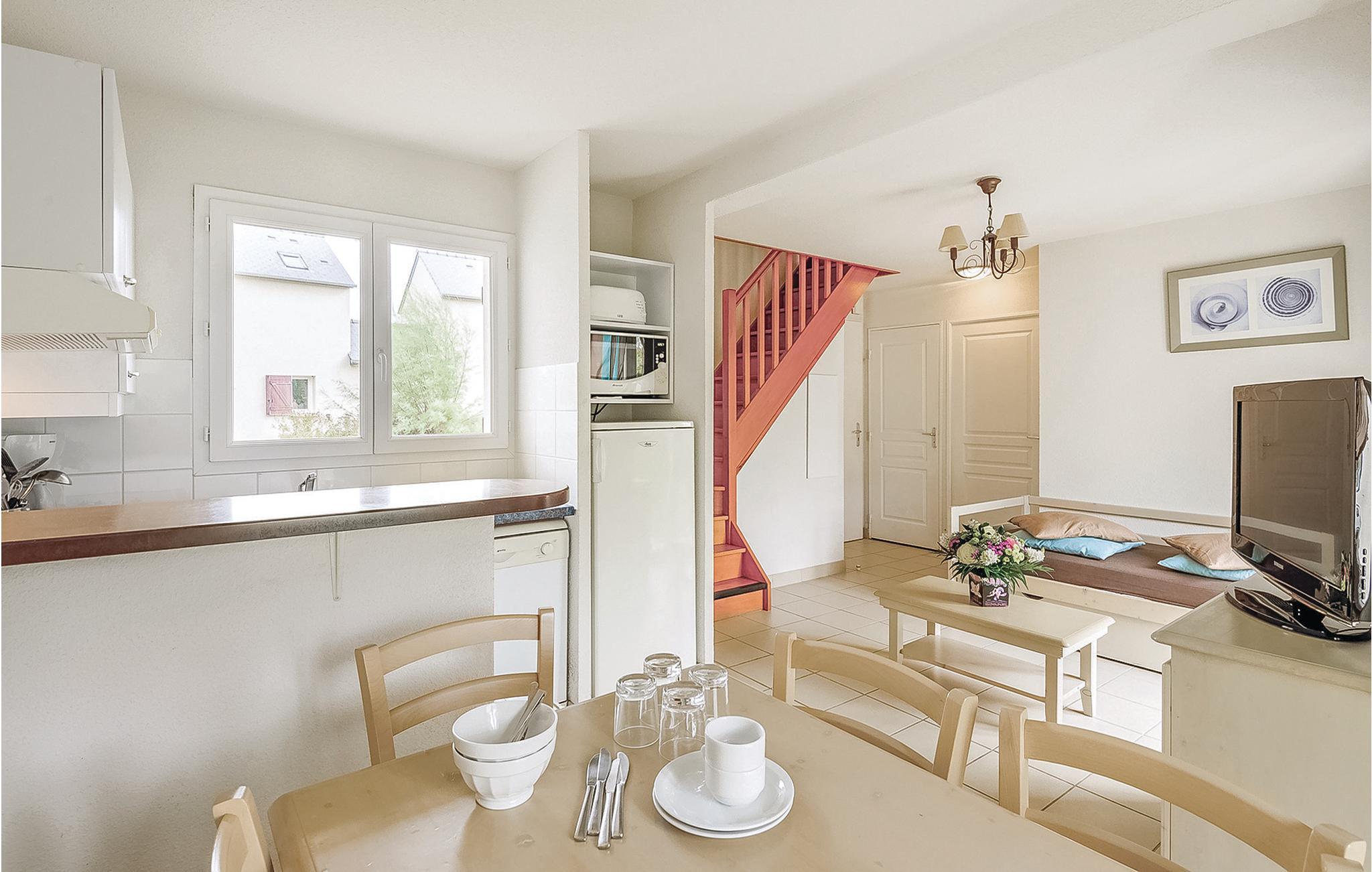 In fußläufiger Entfernung zum Dorfzentrum und dem Strand empfängt Sie dieses Haus in einem Ferienpark im Herzen der Bretagne. Machen Sie es sich in den hellen Räumen bequem, die mit modernen Möbeln und wohnlichem Ambiente zum Entspannen einladen. Genießen Sie die gemeinsamen Mahlzeiten mit schönem Blick ins Freie oder verlegen Sie das Abendessen gleich auf die Terrasse.