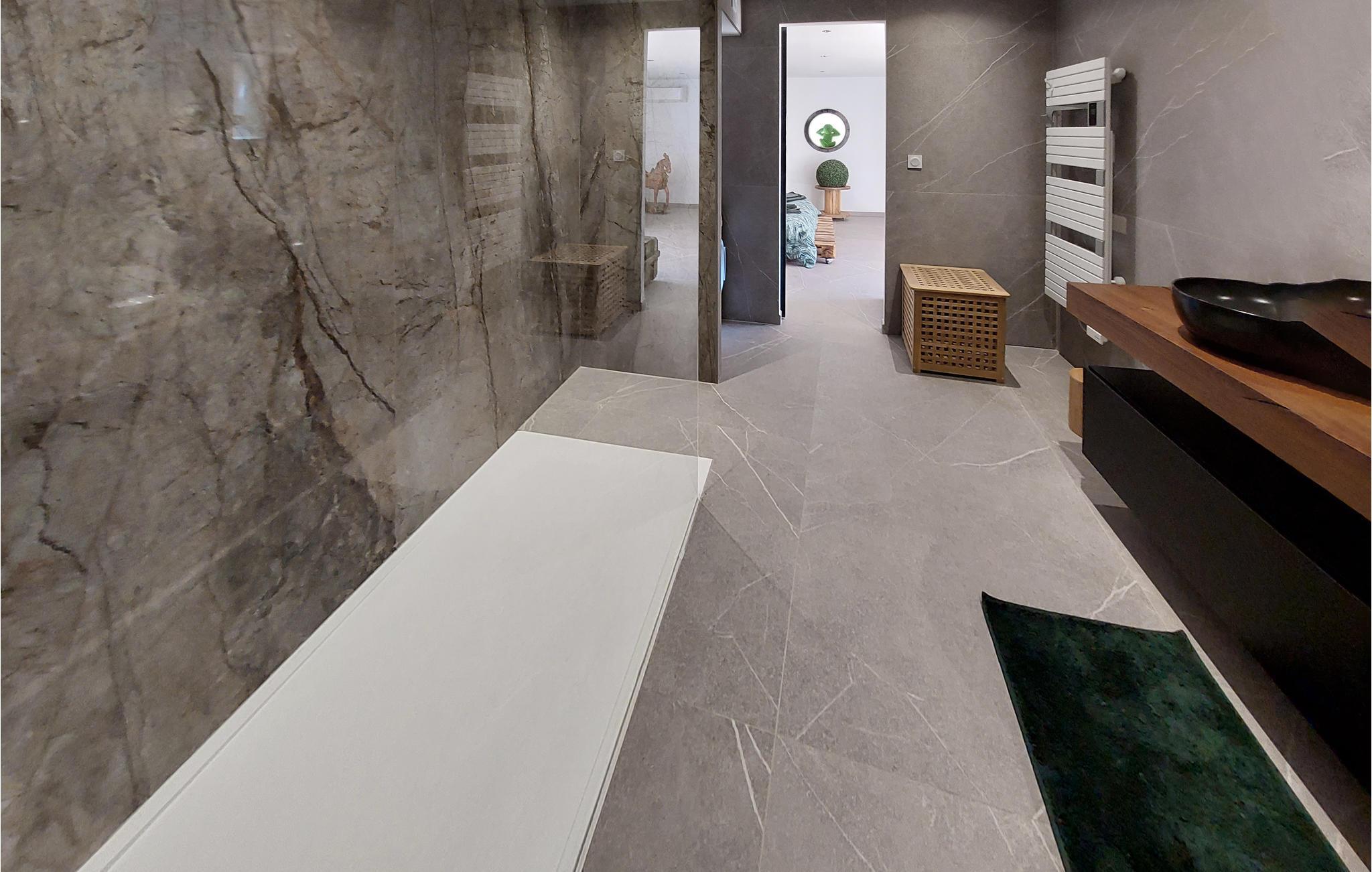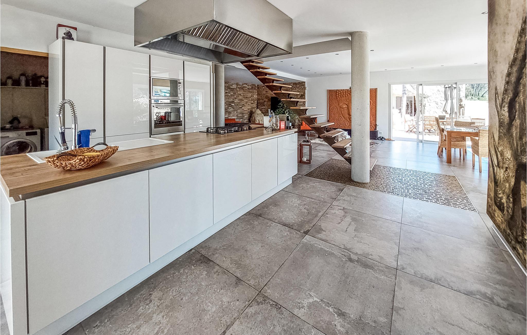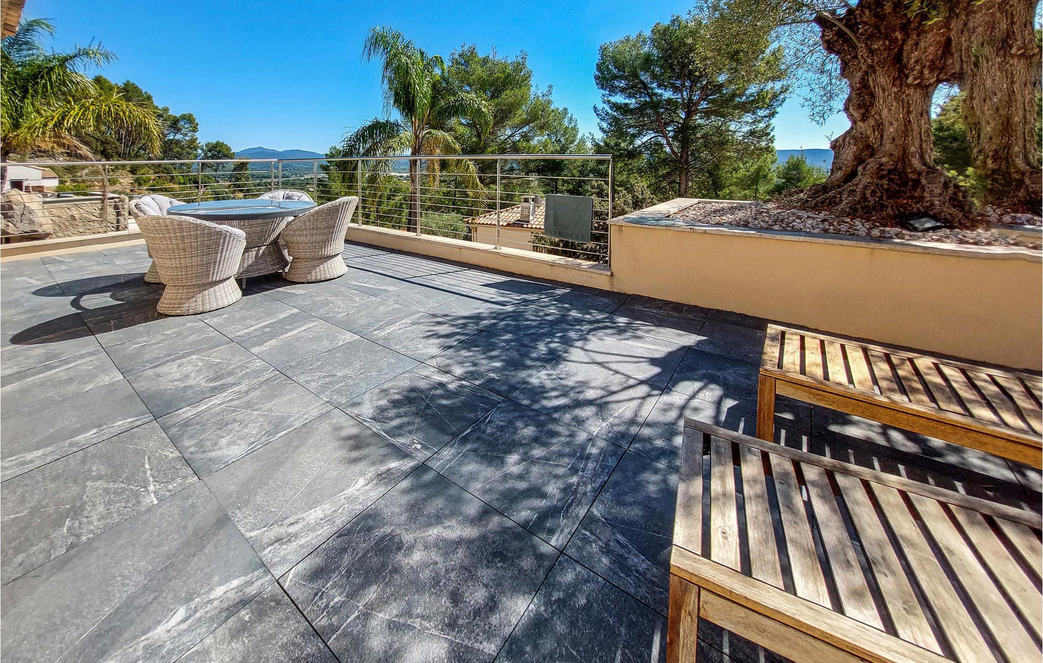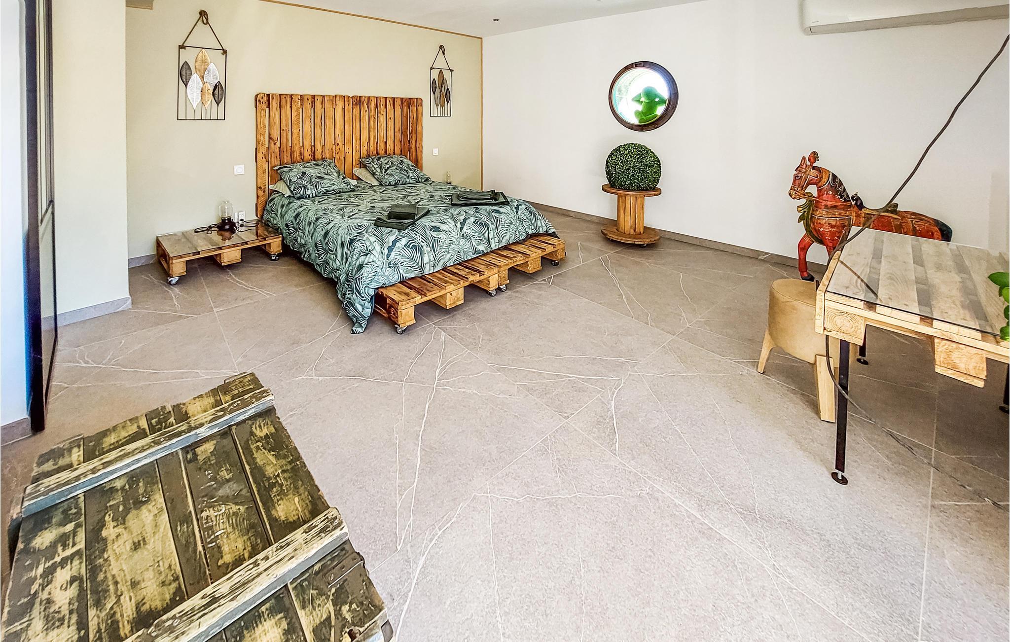 Die schöne Terrasse mit anschließendem Swimmingpool versprüht den Charme einer Grotte, da das Dekor der Hausaußenwände sehr daran erinnern. Hier können Sie Baden und sich nach Herzenslust entspannen. Auch eine große und schöne Terrasse im oberen Stockwerk lässt Sie die Sonne anbeten.