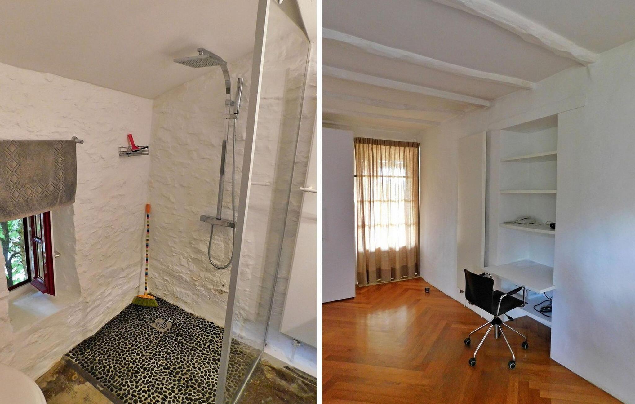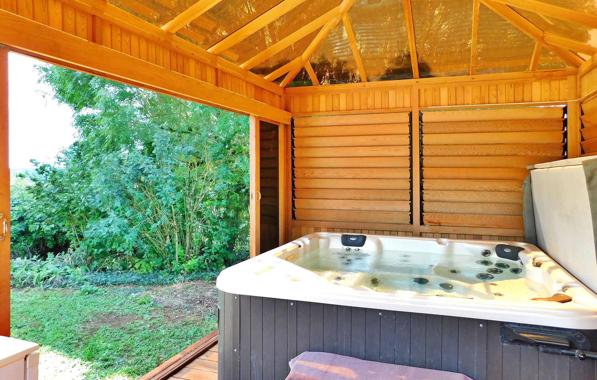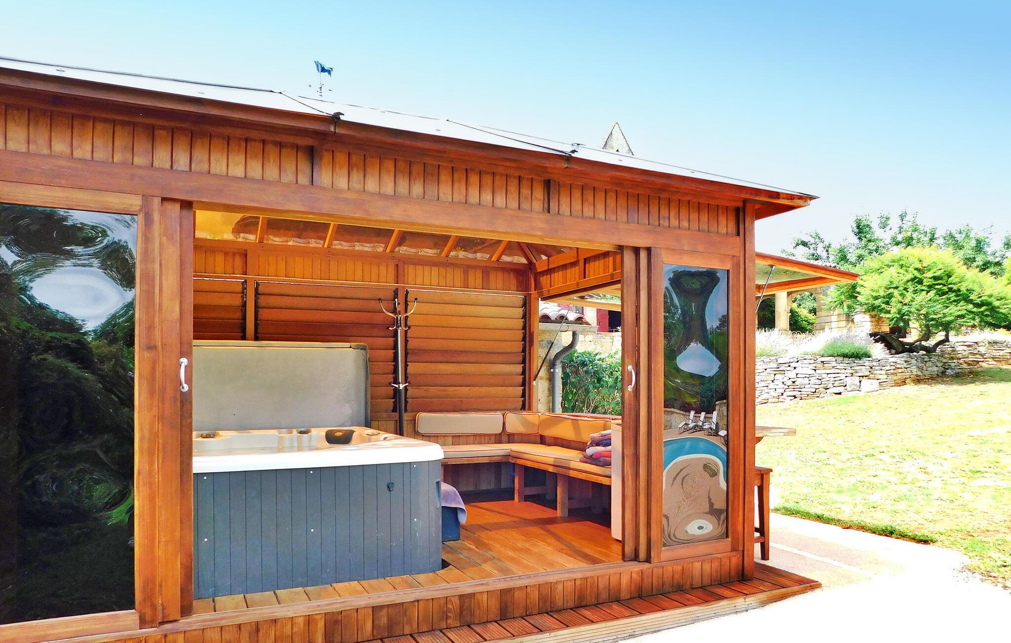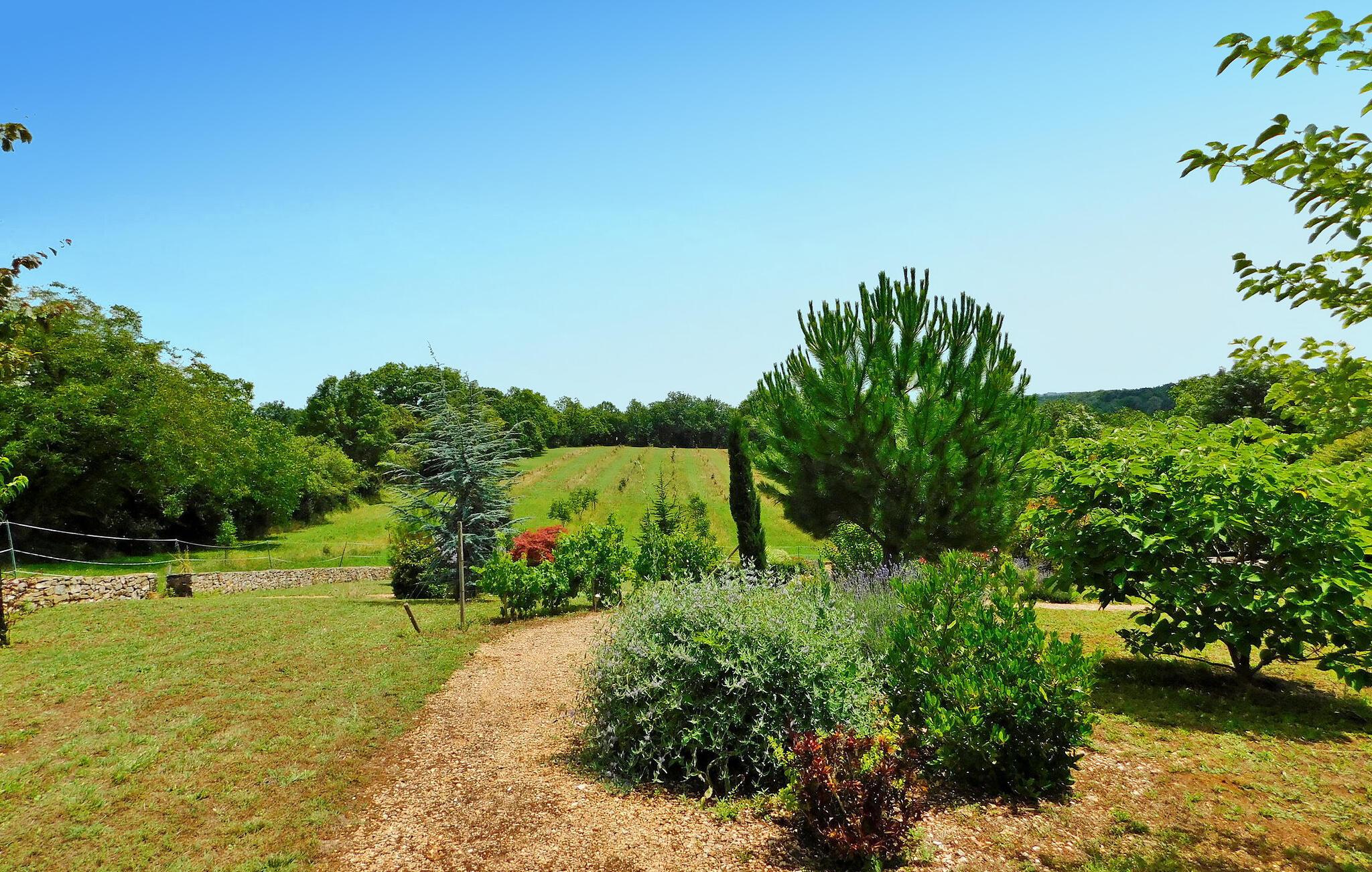 Eingebettet in die Landschaft der Dordogne lädt dieses geräumige Ferienhaus seine Gäste zum Entspannen inmitten einer malerischen Umgebung ein. Das Anwesen verfügt über einen beheizten Pool, ein Spa und eine reizvolle Umgebung, gegenüber dem Haupthaus (für 6 Personen) und einem unabhängigen Nebengebäude für 4 Gäste. Das Haupthaus empfängt Sie mit einer gut ausgestatteten Küche, einem charmanten Essbereich und einem gemütlichen Wohnbereich mit Kamin. Im Erdgeschoss befindet sich ein Schlafzimmer mit Zugang zur Terrasse, während sich im Obergeschoss das zweite Schlafzimmer, ein klimatisierter Raum für vier Personen und ein eigenes Badezimmer befindet. Das unabhängige Nebengebäude liegt nicht weit vom Haupthaus entfernt und verfügt über einen geräumigen Wohnbereich und eine kleine Küchenzeile, die zusätzlichen Komfort und Privatsphäre bieten. Draußen umgibt ein großer Park das Anwesen und bietet einen ruhigen Blick auf die Landschaft. Genießen Sie die überdachte Terrasse mit Sitz- und Liegemöglichkeiten, einem Grillplatz und einem zum Entspannen konzipierten Spa. Der private beheizte Pool (11 x 5 m) verfügt über eine elektrische Sicherheitsabdeckung und wird durch eine Terrasse mit Liegestühlen und Sonnenschirmen für ultimative Freizeitgestaltung ergänzt. Tauchen Sie ein in die Ruhe der Landschaft, genießen Sie Momente der Ruhe und genießen Sie die Annehmlichkeiten dieses charmanten Ferienhauses – ein perfekter Rückzugsort für Familien oder Gruppen, die Entspannung und Komfort inmitten der Schönheit der Dordogne suchen. Das Ferienhaus liegt im Grünen. Das Dorf Daglan ist weniger als 3 km entfernt (örtliche Geschäfte und Restaurants).