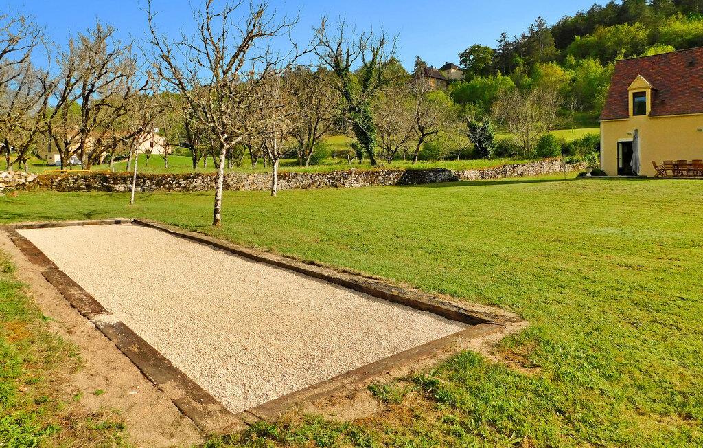 Entdecken Sie dieses geräumige Ferienhaus in Daglan, nur einen Steinwurf von den malerischen Dörfern Domme und Castelnaud entfernt und bietet einfachen Zugang zu den berühmten Touristenattraktionen der Dordogne. Dieser Urlaubsort ist perfekt gelegen und nur wenige Gehminuten vom charmanten Dorf Daglan entfernt. Diese einladende Unterkunft verfügt über einen luftigen Erdgeschossbereich. Betreten Sie einen einladenden offenen Raum, an den sich ein Essbereich anschließt. Das Erdgeschoss umfasst einen Ost-West-Garten, der durch zwei Erkerfenster zugänglich ist, sowie eine gut ausgestattete Küche. Im Erdgeschoss befinden sich außerdem ein Schlafzimmer und ein Duschbad. Steigen Sie in die obere Ebene, um die restlichen Schlafzimmer zu finden. Der Außenbereich bietet eine große eingezäunte Rasenfläche und zwei Terrassen. Darüber hinaus stehen Ihnen Freizeiteinrichtungen wie ein Pétanque-Platz und ein Basketballkorb zur Verfügung. Bitte beachten Sie, dass auf Anfrage ein zusätzliches Einzelbett im Kinderzimmer bereitgestellt werden kann. In der Nähe befindet sich eine kleine Grundschule, die während der Schulzeit für eine fröhliche Atmosphäre sorgt. Darüber hinaus sind Haustiere nach vorheriger Absprache mit den Eigentümern willkommen, um einen familienfreundlichen und zuvorkommenden Aufenthalt zu gewährleisten. Das Haus liegt im hinteren Teil des Dorfzentrums von Daglan, das zu Fuß erreichbar ist. Ruhige Lage, umgeben von 2 Feldern mit Walnussbäumen.