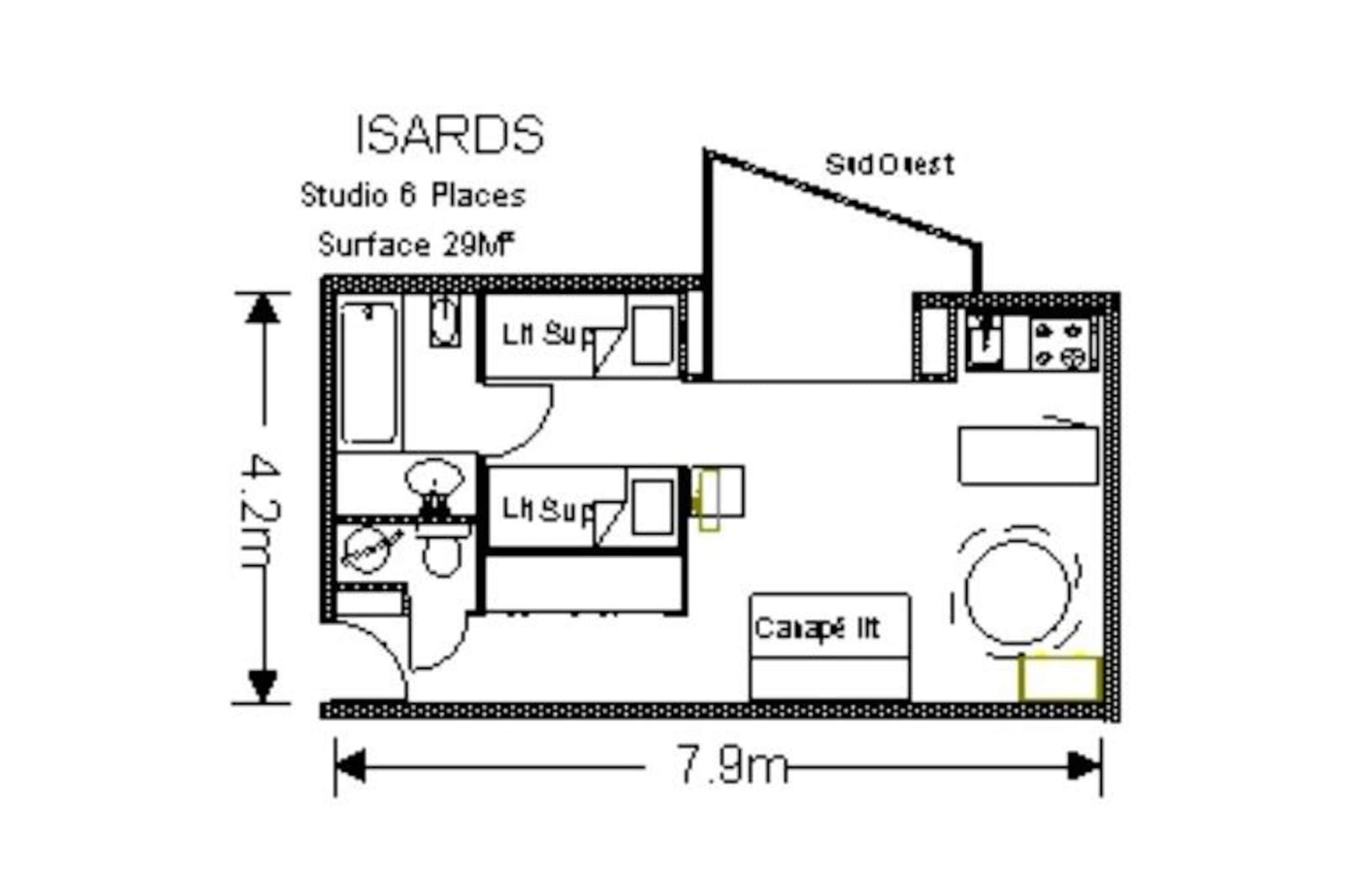 Die Residence Les Isards liegt im malerischen Pyrenäenort Les Angles und bietet einen gemütlichen Rückzugsort nur 150 Meter von den Pisten entfernt – die perfekte Wahl für Skifahrer und Naturliebhaber. Stellen Sie sich vor, Sie wachen in Ihrem nach Südwesten ausgerichteten Studio-Apartment mit atemberaubendem Blick auf schneebedeckte Gipfel auf und spüren die frische Bergluft, die Ihre Sinne vor einem Tag voller alpiner Abenteuer belebt. Ob Wintersport oder Sommerwanderungen – diese charmante Residenz ist Ihr Tor zur Schönheit der Pyrenäen. Das Studio-Apartment bietet bequem Platz für bis zu sechs Gäste und verfügt über eine Schlafnische mit zwei Etagenbetten sowie ein Wohnzimmer mit Doppelschlafsofa. Die voll ausgestattete Küche bietet Cerankochfeld, Backofen, Mikrowelle, Kühlschrank, Geschirrspüler und wichtige Geräte wie Kaffeemaschine und Toaster, sodass Sie mühelos köstliche Mahlzeiten zubereiten können. Das Badezimmer ist mit Badewanne und Waschbecken ausgestattet, ein separates WC sorgt für zusätzlichen Komfort. Eine elektrische Heizung hält den Raum warm und einladend, und die bereitgestellte Bettwäsche bietet zusätzlichen Komfort. Das Nichtraucher-Apartment, in dem Haustiere willkommen sind, bietet für jeden Bedarf das Richtige und optionale Extras wie Verpflegung, Reinigungsservice und Wäschemöglichkeiten an der Rezeption. \n\nNur 100 Meter von Geschäften und Restaurants entfernt, ist die Residence Les Isards ideal gelegen, sodass Sie alles Notwendige bequem erreichen können. Gäste profitieren von exklusiven Rabatten auf Skiausrüstung und Skipässe über das SKIPLUS-Angebot und genießen so einen noch schöneren Winterurlaub. Im Sommer laden die üppigen Wanderwege und die idyllische Landschaft rund um das malerische Dorf zum Erkunden ein oder Sie entspannen sich einfach und genießen die Ruhe der Pyrenäen. \n\nOb Sie aufregende Pisten, erholsame Bergausflüge oder beides suchen – die Residence Les Isards verspricht einen unvergesslichen Aufenthalt im Herzen der französischen Pyrenäen.