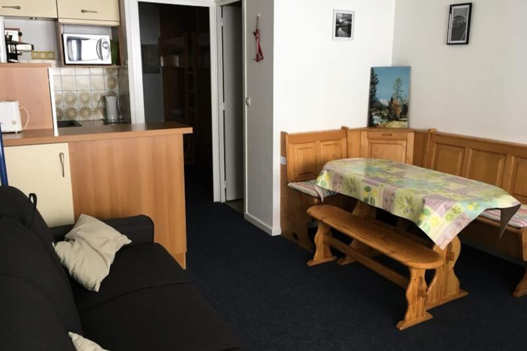 Dieses charmante Studio in der malerischen Primevères Residence bietet einen gemütlichen Rückzugsort für bis zu sechs Gäste, nur 300 Meter von den Pisten der französischen Alpen entfernt. Vom nach Südwesten ausgerichteten, geschlossenen Balkon genießen Sie einen atemberaubenden Blick auf den Ort und die umliegenden schneebedeckten Gipfel und können die ruhige alpine Atmosphäre in vollen Zügen genießen. Ob Sie einen Winterurlaub oder eine Sommerauszeit planen – diese Unterkunft ist der perfekte Ausgangspunkt, um die Schönheit der Region zu entdecken. Das Studio ist durchdacht gestaltet und bietet maximalen Komfort und Funktionalität. Die Schlafnische verfügt über zwei Etagenbetten, ideal für Familien oder Gruppen, während das Wohnzimmer mit einem Doppelschlafsofa und einem Fernseher für entspannte Abende ausgestattet ist. Die Küche ist komplett mit modernen Geräten ausgestattet, darunter ein Cerankochfeld, ein Backofen, ein Kühlschrank, ein Geschirrspüler und eine Mikrowelle, sodass Sie mühelos köstliche Mahlzeiten zubereiten können. Das Badezimmer bietet eine Badewanne und ein Waschbecken sowie ein separates WC für zusätzlichen Komfort. Eine elektrische Heizung sorgt für eine warme und einladende Atmosphäre, und Bettwäsche wird für Ihren Aufenthalt gestellt. Nur 250 Meter von Geschäften und Annehmlichkeiten entfernt, ist alles, was Sie brauchen, bequem erreichbar. Gäste profitieren von exklusiven Rabatten auf Skiausrüstungsverleih und Liftkarten über das SKIPLUS-Angebot und können so ganz einfach die Pisten hinunterfahren und das erstklassige Skifahren der Region erleben. Im Sommer verwandelt sich die Gegend in ein Paradies für Wanderer und Naturliebhaber mit Wanderwegen, die zu atemberaubenden Aussichten und alpinen Abenteuern führen. Ob Sie aufregende Outdoor-Aktivitäten oder einen ruhigen Rückzugsort in den Bergen suchen – dieses Studio vereint Komfort, Bequemlichkeit und einen unschlagbaren Zugang zu den Wundern der französischen Alpen. Schaffen Sie unvergessliche Erinnerungen in dieser idyllischen alpinen Umgebung.
