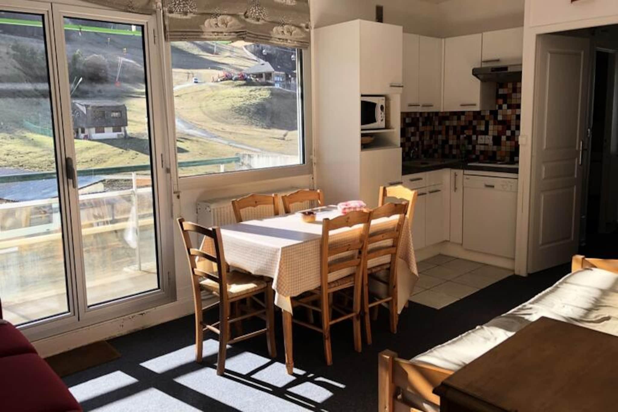 In der ruhigen Pene-Medaa Residence gelegen, bietet dieses charmante Zwei-Zimmer-Apartment einen gemütlichen Rückzugsort für bis zu sechs Gäste im Herzen der französischen Pyrenäen. Stellen Sie sich vor, wie Sie von Ihrem nach Südwesten ausgerichteten Balkon aus mit atemberaubendem Blick auf die Pisten und den Ort erwachen und die frische Bergluft Ihre Sinne belebt. Ob Sie Winterabenteuer oder sommerliche Ruhe suchen – diese Unterkunft verspricht einen unvergesslichen Aufenthalt inmitten natürlicher Schönheit und alpinen Charmes.\n\nDas Apartment besticht durch eine durchdachte Raumaufteilung und Zentralheizung für optimalen Komfort während Ihres Aufenthalts. Das Wohnzimmer lädt mit seinem bequemen Doppelschlafsofa und dem Fernseher zum Entspannen ein, während die voll ausgestattete Küche mit Vier-Flammen-Herd, Mikrowelle, Kühlschrank, Geschirrspüler und sogar einer Küchenmaschine die Zubereitung von Mahlzeiten zum Kinderspiel macht. Die Schlafnische mit Etagenbetten und das separate Schlafzimmer mit einem Queensize-Bett bieten ausreichend Schlafmöglichkeiten für Familien oder Gruppen. Das Badezimmer ist mit Dusche und Waschbecken ausgestattet, ein separates WC sorgt für Privatsphäre.\n\nNur 50 Meter von den Pisten und 100 Meter von den Geschäften entfernt bietet die Residenz einen unvergleichlichen Zugang zu den Highlights der Region. Gäste profitieren von exklusiven Rabatten auf Skiausrüstung und Skipässe über das SKIPLUS-Angebot – die ideale Wahl für Wintersportbegeisterte. Im Sommer laden die nahegelegenen Wanderwege und die malerischen Landschaften der Pyrenäen zum Erkunden ein.\n\nBettwäsche, optionale Verpflegungspakete und die Möglichkeit, Haustiere mitzubringen, lassen in diesem Apartment keine Wünsche offen. Ob Abenteuer oder Entspannung – die Pene-Medaa Residence ist Ihr Tor zu einem unvergesslichen Alpenurlaub.