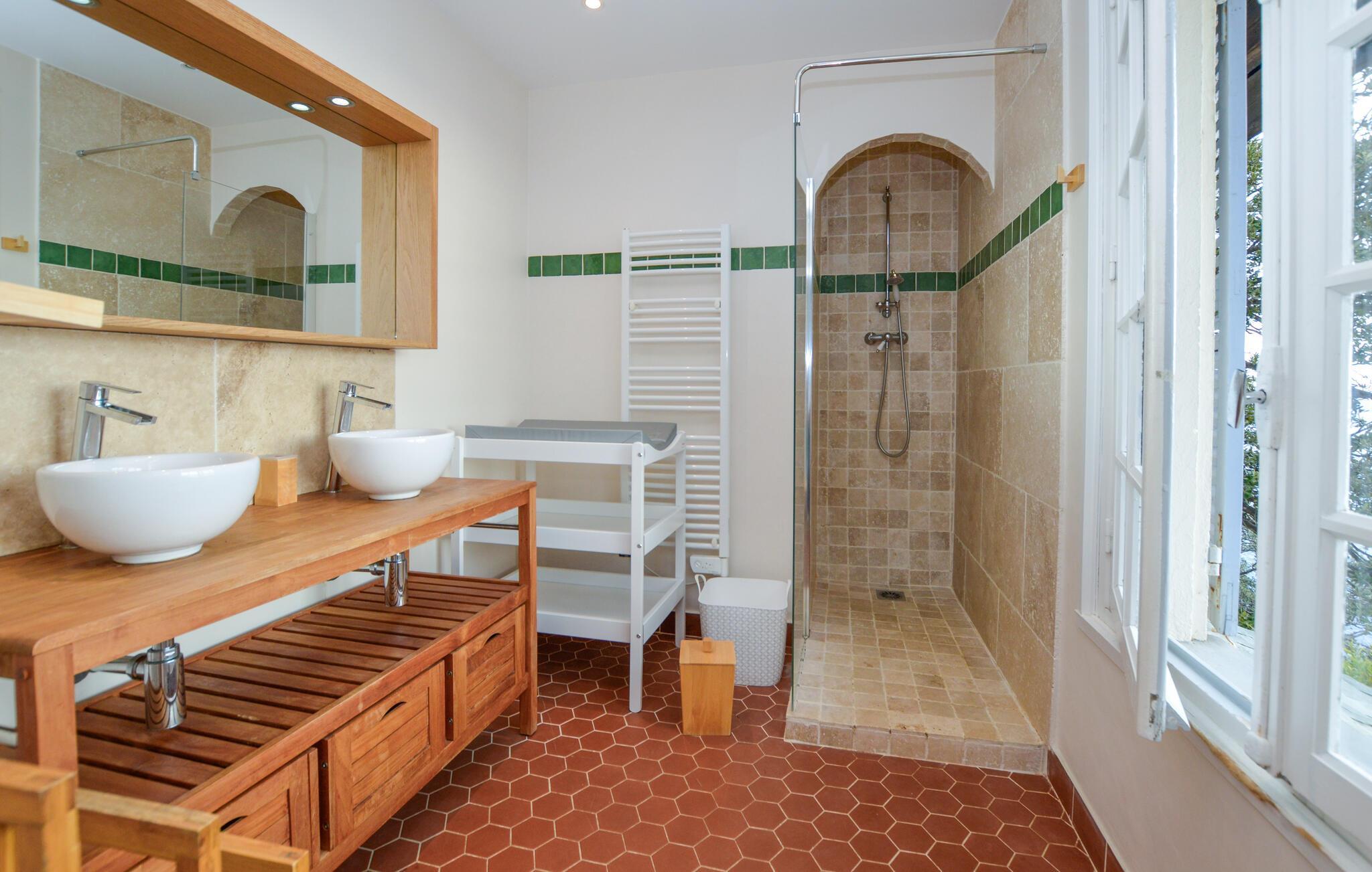 Das Badezimmer hat einen Zugang von außen
