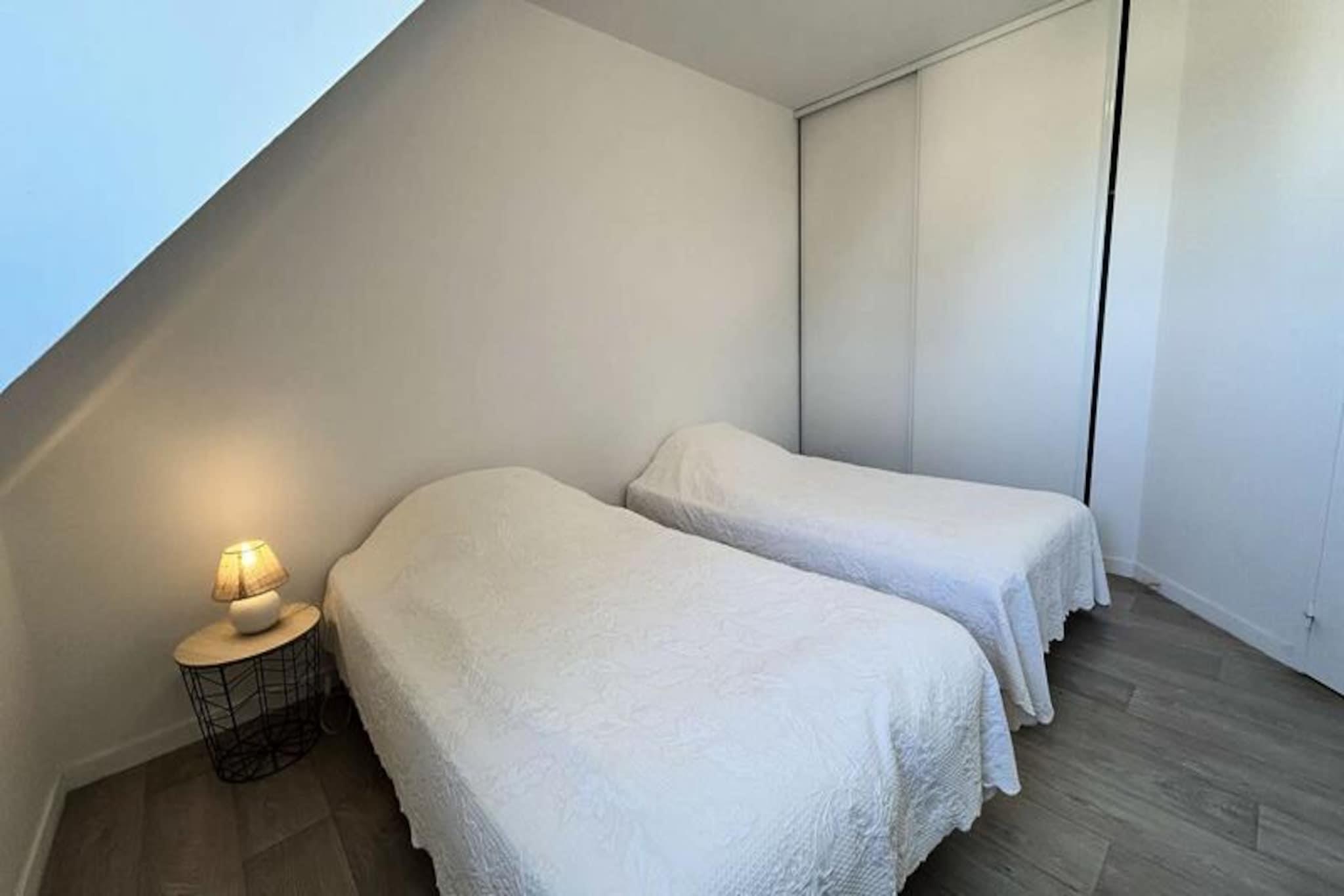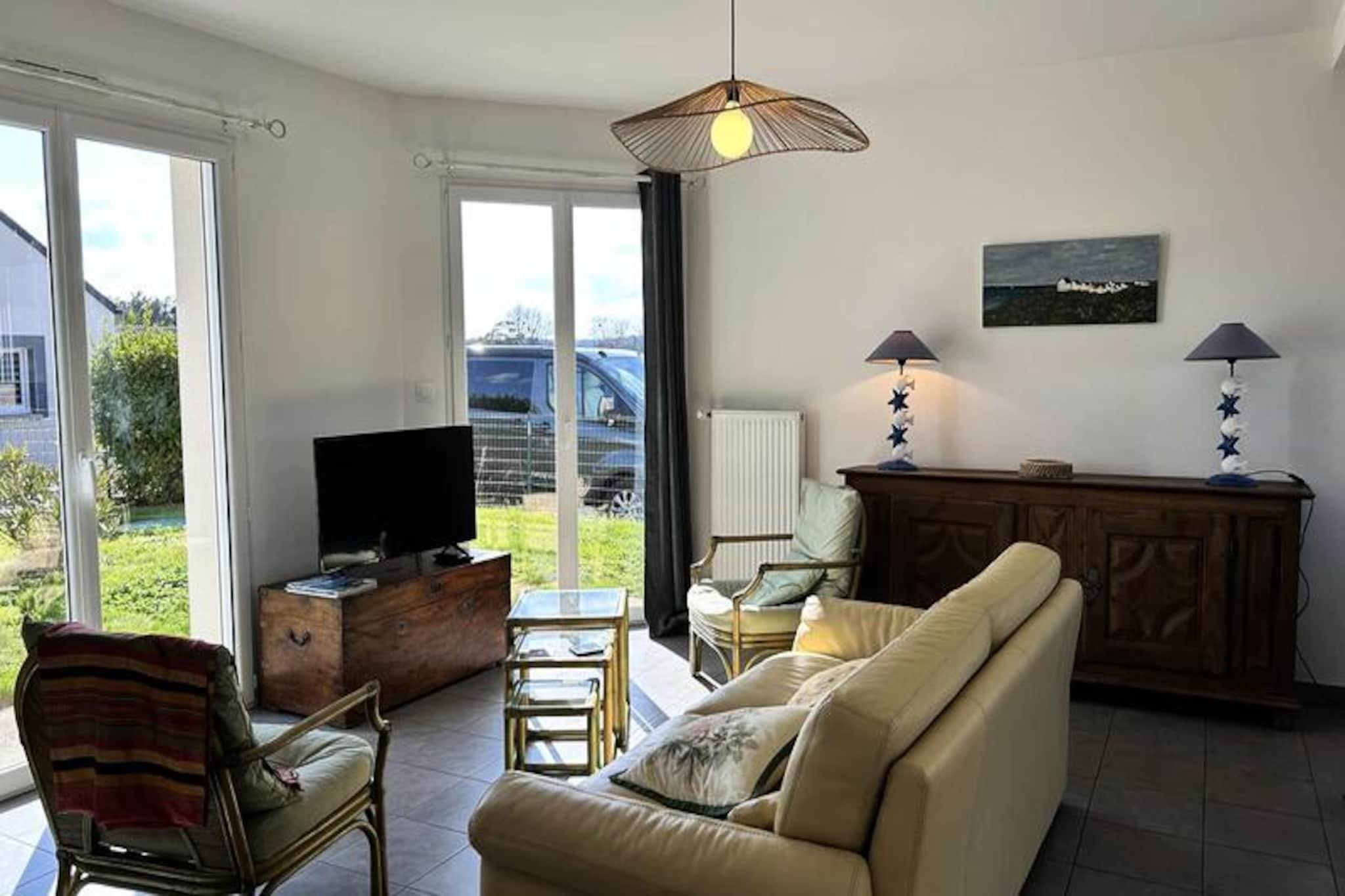 Hoch oben in Erquy gelegen, bietet dieses geräumige und moderne Haus einen ruhigen Rückzugsort und ist gleichzeitig nah am lebendigen Zentrum der Stadt. Dank der idealen Lage in der Nähe von Geschäften und Strand genießen Sie das Beste aus beiden Welten: friedliche Umgebung und bequemen Zugang zu den Annehmlichkeiten dieses charmanten Badeortes. Ob Sie Entspannung oder Abenteuer suchen, diese Unterkunft ist perfekt gelegen, um Ihren Aufenthalt unvergesslich zu machen. Das Haus bietet Platz für bis zu neun Gäste und ist hell und einladend. Die private Terrasse lädt zum Entspannen unter der bretonischen Sonne ein. Im Erdgeschoss befinden sich ein großes Wohnzimmer mit einer gemütlichen Sitzecke und einem Essbereich für neun Personen sowie eine voll ausgestattete Küche, in der Sie köstliche Mahlzeiten zubereiten können. Ein komfortables Schlafzimmer, ein Waschraum und ein Badezimmer vervollständigen das Erdgeschoss. Im Obergeschoss finden Sie drei durchdacht eingerichtete Schlafzimmer, darunter eines mit Etagenbetten – ideal für Familien oder Gruppen. Das Obergeschoss verfügt außerdem über ein geräumiges Badezimmer mit Badewanne und Dusche sowie ein separates WC. Treten Sie hinaus auf die möblierte Terrasse, wo Sie im Freien grillen oder auf den Sonnenliegen entspannen können. Parkplätze stehen Ihnen bequem zur Verfügung, und dank WLAN bleiben Sie während Ihres Aufenthalts stets in Verbindung. Die traumhaften Strände, der malerische Hafen und das lebhafte Stadtzentrum von Erquy sind schnell zu erreichen und bieten Aktivitäten wie Wassersport, Wanderwege und lokale Märkte. Ob Sie die zerklüftete Küste erkunden oder frische Meeresfrüchte in einem Bistro genießen möchten – dieses Haus ist der perfekte Ausgangspunkt, um die Schönheit und den Charme der Bretagne zu erleben. Buchen Sie Ihren Aufenthalt und schaffen Sie unvergessliche Erinnerungen in diesem idyllischen Refugium am Meer.