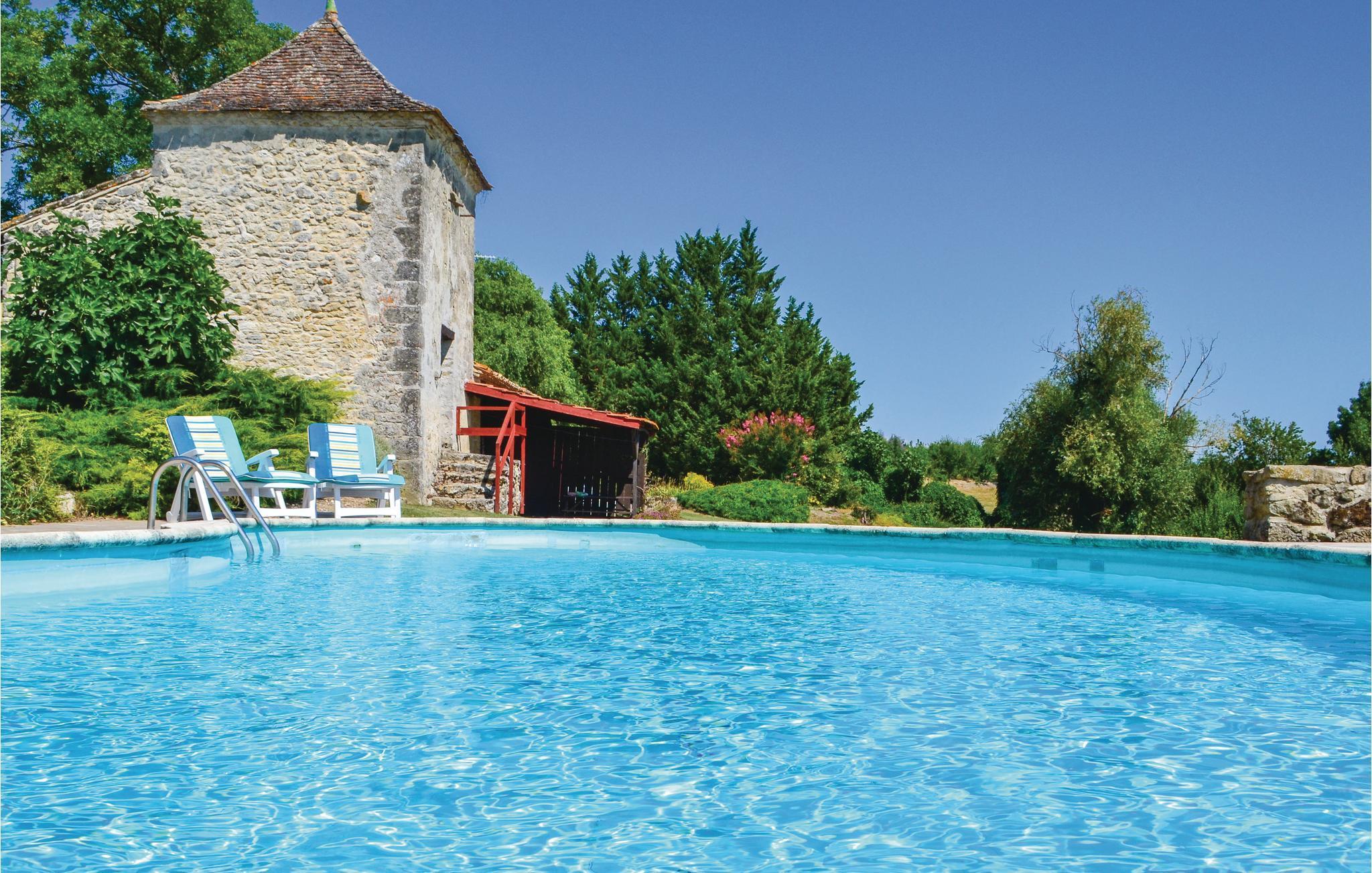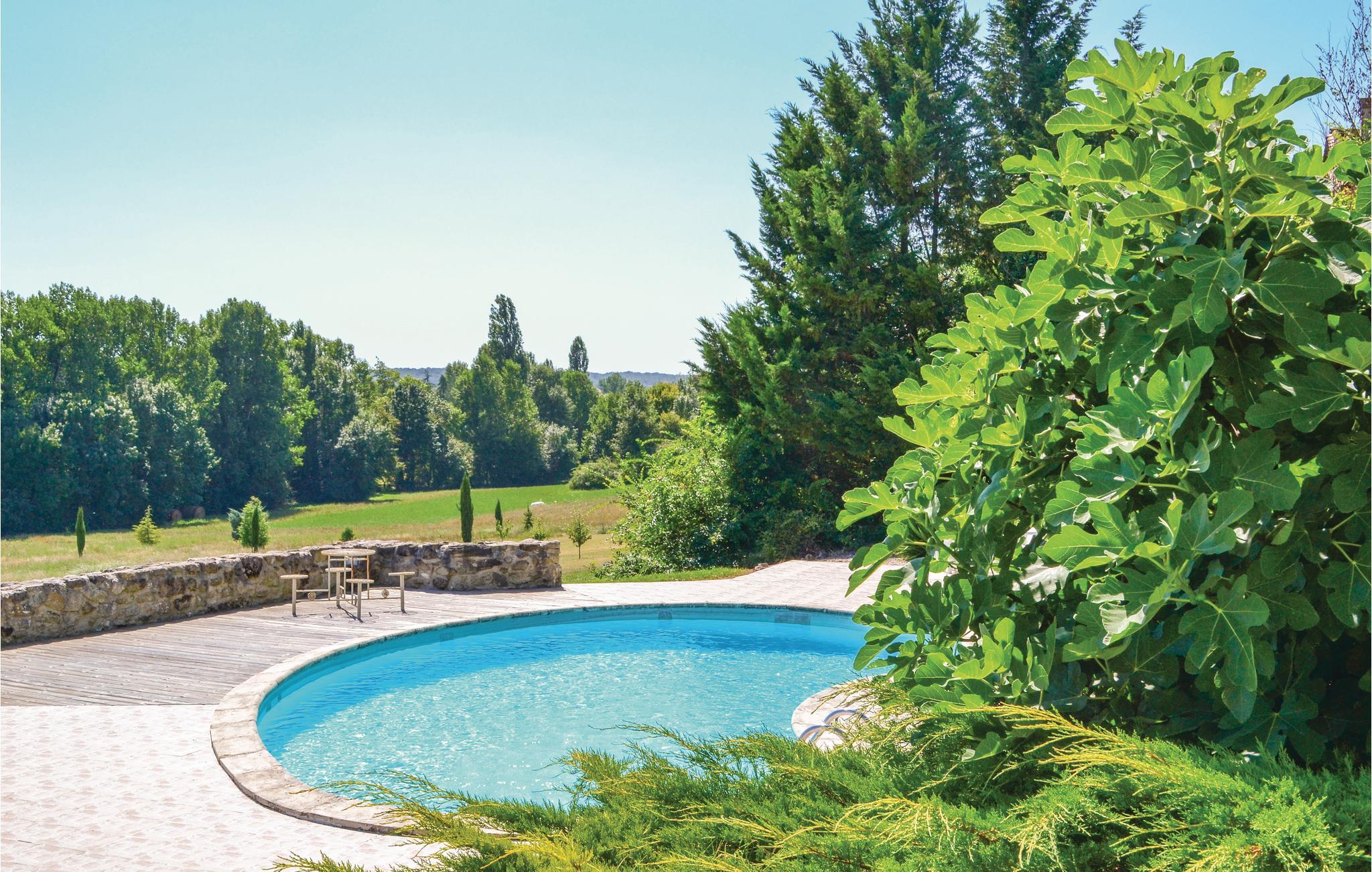 Verbringen Sie Ihren Urlaub in diesem einfachen Ferienhaus mit gemeinsamem Pool und weitem Landschaftsblick.