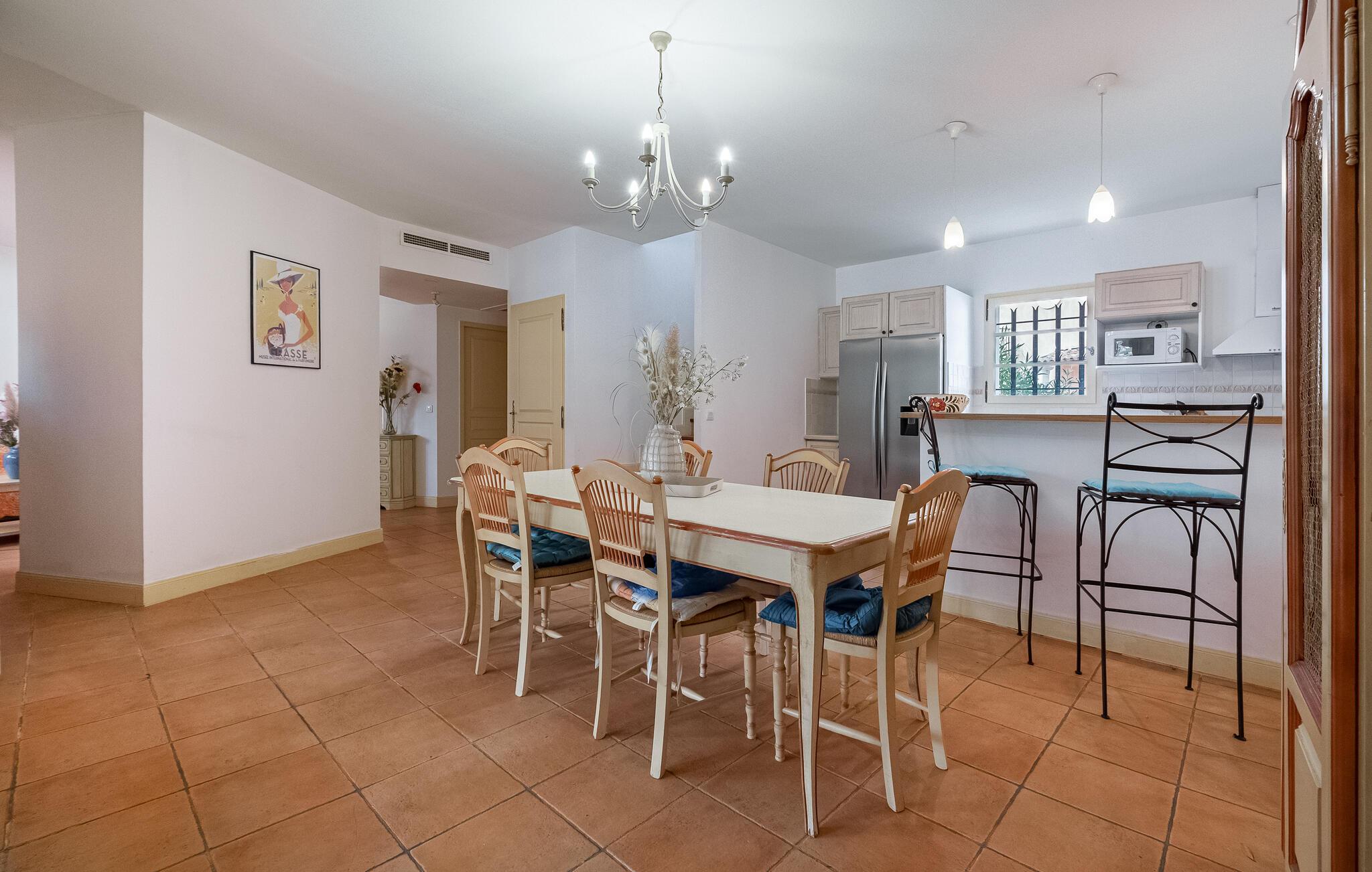 Willkommen in dieser charmanten Urlaubsoase im Herzen der Provence, die Sie mit traditionellem Charme und einer großzügigen Wohnfläche begeistern wird. Experimentieren Sie in der modernen Landhausküche mit Kräutern der Provence und genießen Sie gemeinsame Mahlzeiten am einladenden Esstisch. Machen Sie es sich auf den Sofas gemütlich und widmen Sie sich Ihren Liebsten bei einem Spieleabend.