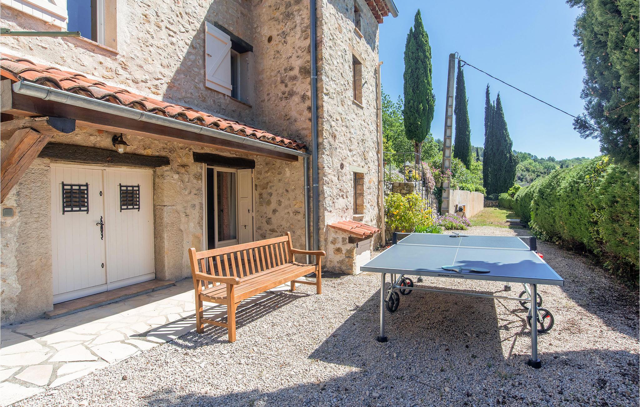 Willkommen! Gemeinsam mit Ihrer Großfamilie oder mehreren befreundeten Familien können Sie es sich in diesem schönen Ferienhaus bequem machen. Das charmante Steinhaus bietet im Inneren moderne Räume, die Sie zum Verweilen einladen. Genießen Sie Ihre gemeinsamen Stunden im großen Wohnraum, in dem Sie das Kochen, Essen, Spielen und Relaxen miteinander verbinden können. Da das Haus an einer Hanglage liegt, können Sie beim Baden im Pool einen herrlichen Ausblick über die Landschaft genießen. Legen Sie sich in die Sonne oder genießen einen Snack am Picknicktisch. Sie können aber auch Tischtennis spielen und die Abende auf der Veranda bei einem Kartenspiel genießen, während Sie Pläne für die anstehenden Urlaubstage machen.