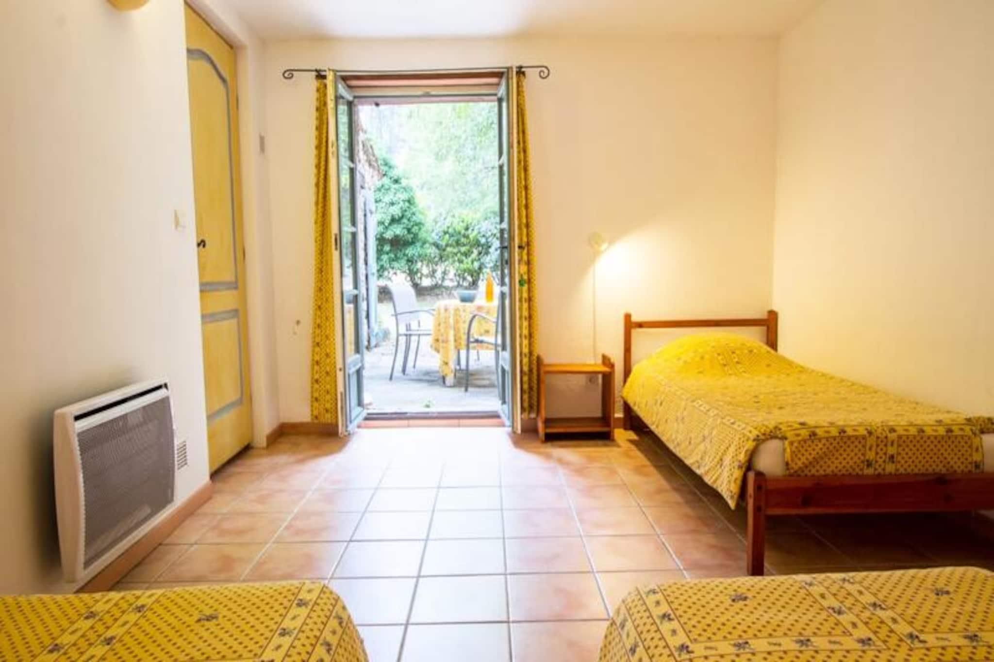 Dieses charmante Ferienhaus bietet einen komfortablen, einstöckigen Wohnraum mit zwei Schlafzimmern, ideal für einen ruhigen Rückzugsort. Das Hauptschlafzimmer verfügt über ein Doppelbett, während das zweite Schlafzimmer entweder mit drei Einzelbetten oder einer Kombination aus Doppel- und Einzelbett ausgestattet werden kann. Die Unterkunft ist haustierfreundlich und das geräumige Wohnzimmer verfügt über einen Loungebereich und einen Essbereich. Die Gäste können sich in der gemütlichen Atmosphäre entspannen und erholen. Das Anwesen liegt im Herzen der Provence Verte und ist von einem malerischen 6 Hektar großen Anwesen umgeben. Erkunden Sie den üppigen Park mit jahrhundertealten Eichen, Kiefern und mediterranen Pflanzen. Die Gegend eignet sich perfekt für Outdoor-Aktivitäten und zum Genießen der natürlichen Schönheit der Region. Für ein erfrischendes Bad steht der Gemeinschaftspool zur Verfügung. Die gut ausgestattete Küche bietet alles, was Sie für die Zubereitung von Mahlzeiten benötigen, und das Badezimmer verfügt über moderne Annehmlichkeiten. Das Anwesen verfügt außerdem über eine private Südterrasse mit direktem Zugang zum Garten. Für zusätzliche Entspannung steht nach Vereinbarung ein Spa mit Sauna, Hamam und Whirlpool zur Verfügung. Es werden umweltfreundliche Verfahren angewendet, bei der Reinigung werden biologische und abbaubare Produkte verwendet.