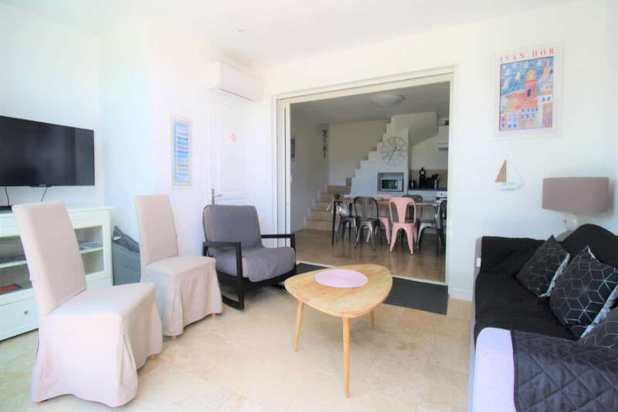 Entfliehen Sie in ein ruhiges Ferienhaus im Herzen einer prestigeträchtigen Residenz, umgeben von einem üppigen Pinienwald. Dieses komplett renovierte T3-Mazet bietet einen gemütlichen Rückzugsort mit einem Doppelbett im Hauptschlafzimmer, zwei Einzelbetten in einem schrägen oberen Raum und einem ausziehbaren Sofa im Erdgeschoss. Dieses Anwesen eignet sich perfekt für Familien oder Gruppen von Freunden und bietet eine haustierfreie und ruhige Umgebung. Den Gästen stehen zwei Gemeinschaftspools, ein Tennisplatz und eine private Terrasse mit Gartenmöbeln zur Verfügung, die sich ideal zum Entspannen im Freien eignet. Dieses Ferienhaus liegt nur 8 km von der pulsierenden Stadt Saint-Tropez und 11 km vom bezaubernden Sainte-Maxime entfernt und bietet einfachen Zugang zu den nur 3 km entfernten unberührten Stränden. Erkunden Sie die nahegelegenen Cafés, lokalen Märkte und Geschäfte, die bequem im Umkreis von 1,5 km liegen, sodass Sie alles haben, was Sie für einen unvergesslichen Aufenthalt benötigen. Die Gegend bietet zahlreiche Möglichkeiten für Besichtigungen, Restaurants und Outdoor-Abenteuer. Das auf Ihren Komfort ausgelegte Anwesen verfügt über eine voll ausgestattete amerikanische Küche mit modernen Geräten wie einem Induktionskochfeld, einem Backofen, einer Mikrowelle und einem Geschirrspüler. Darüber hinaus profitieren Sie von Annehmlichkeiten wie kostenfreiem WLAN, einer Klimaanlage, einem Flachbild-TV und einer Waschmaschine. Eine ebenerdige Dusche und Verdunkelungsvorhänge sorgen für erholsame Morgen, während ein privater Parkplatz für zusätzlichen Komfort sorgt.