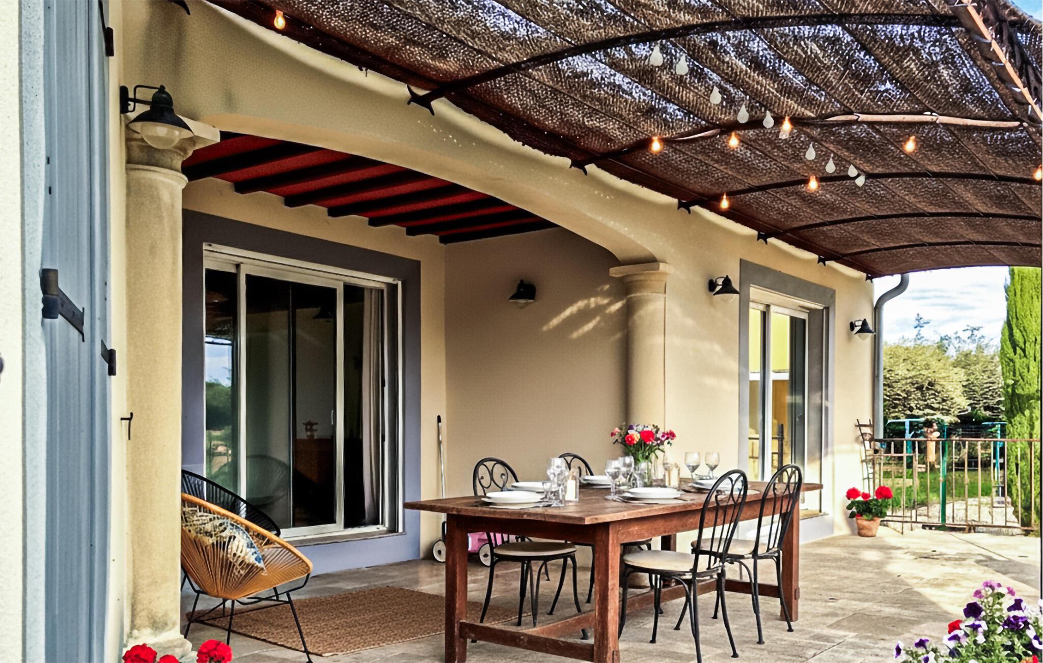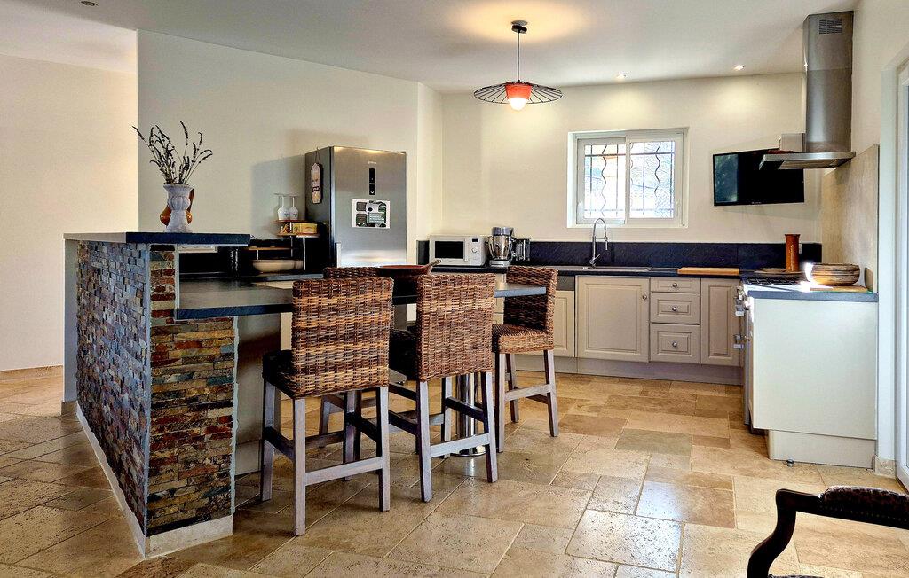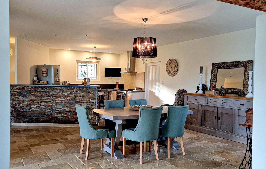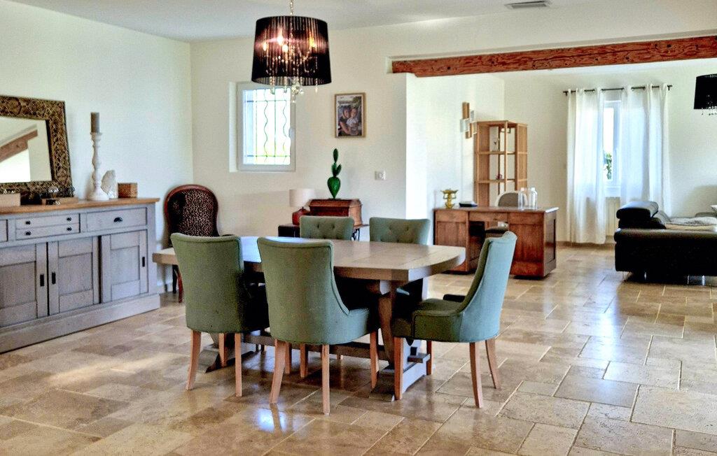 Dieses geräumige Ferienhaus heißt Sie im Herzen des Cèze-Tals willkommen und begrüßt Sie mit einem geschmackvoll eingerichteten Interieur. Freuen Sie sich auf harmonische Mahlzeiten am einladenden Esstisch, planen Sie gemeinsam Ihre Unternehmungen und finden Sie nach einem erlebnisreichen Tag zu einem gemütlichen Spieleabend zusammen.