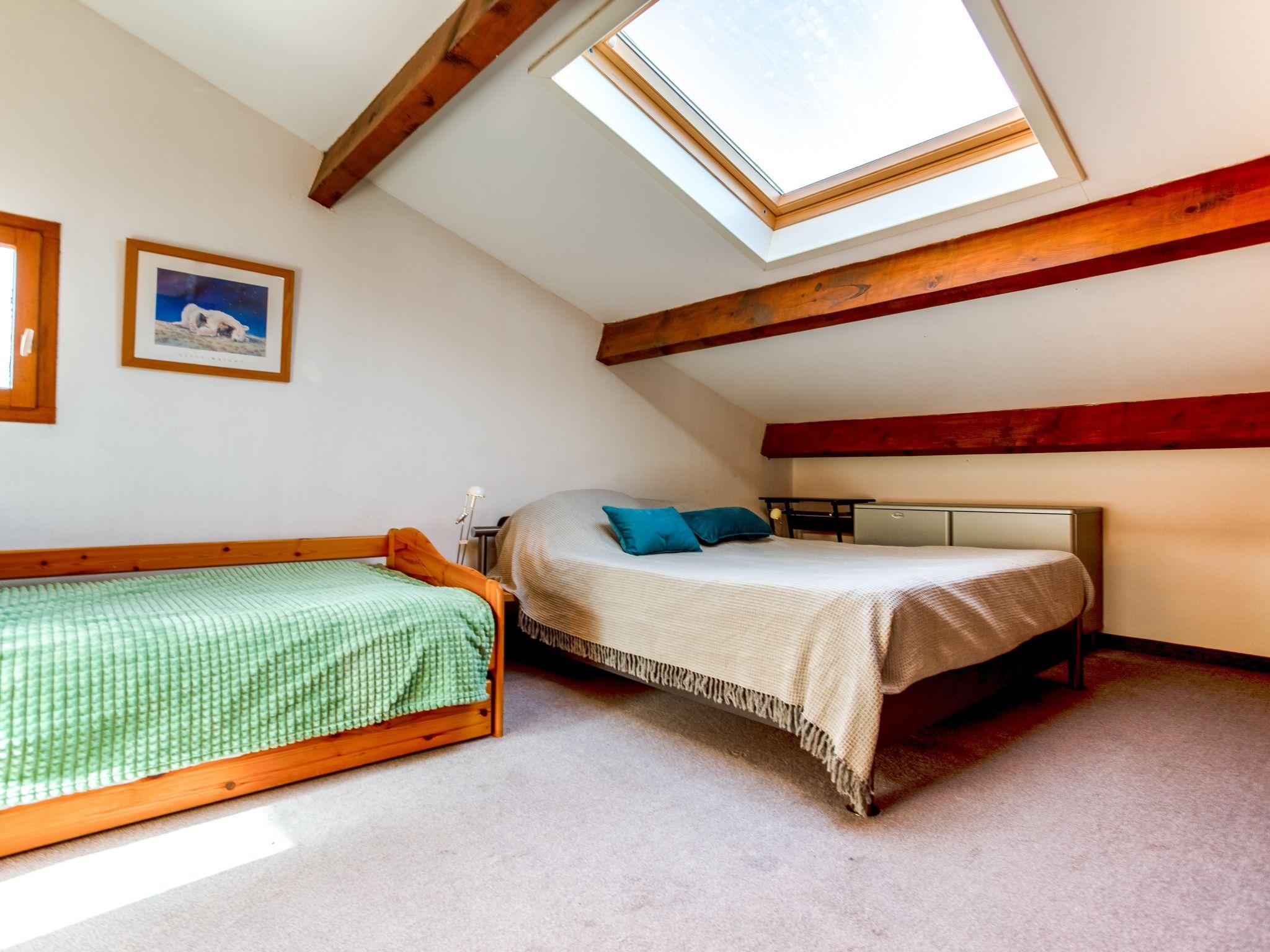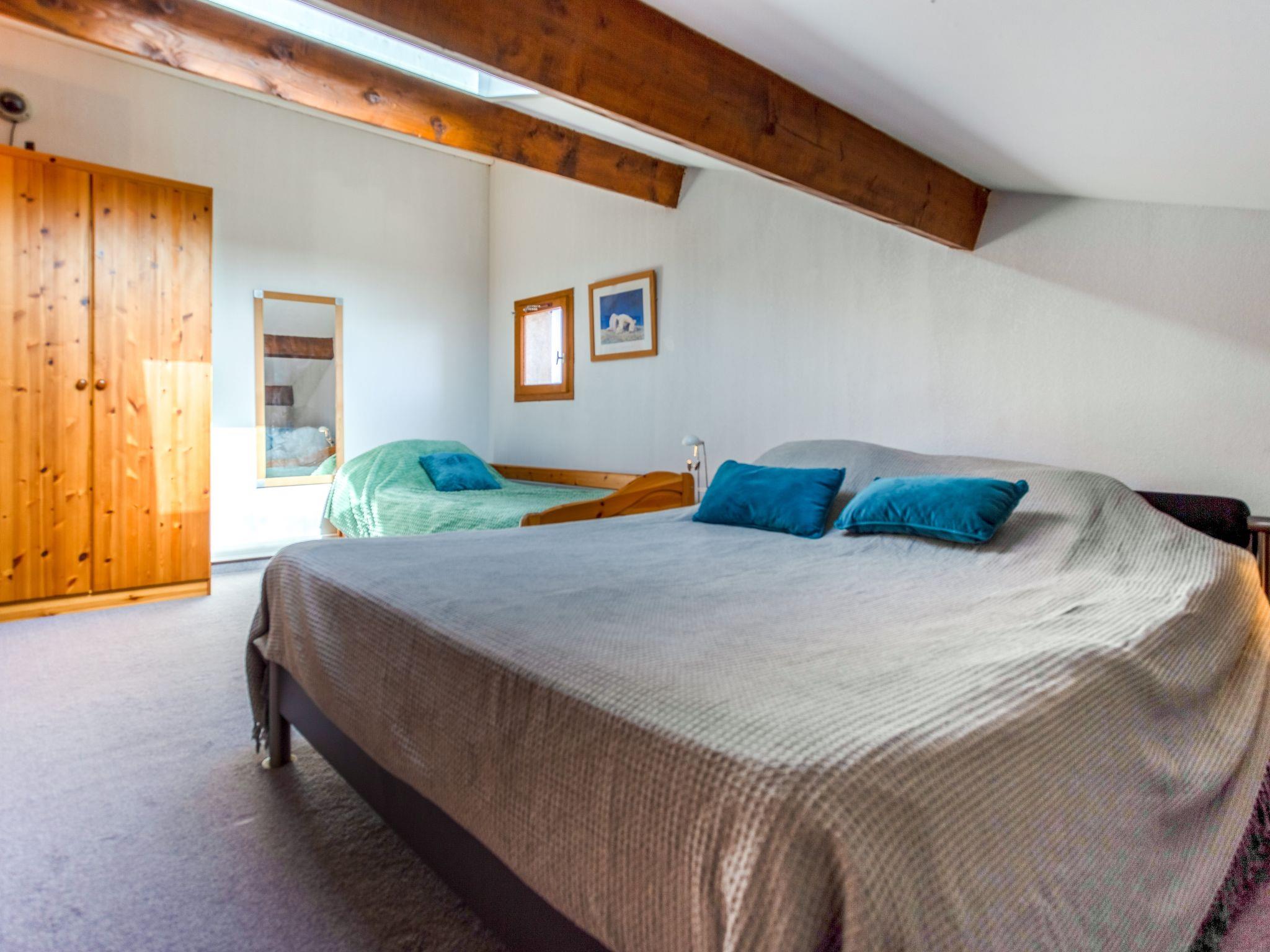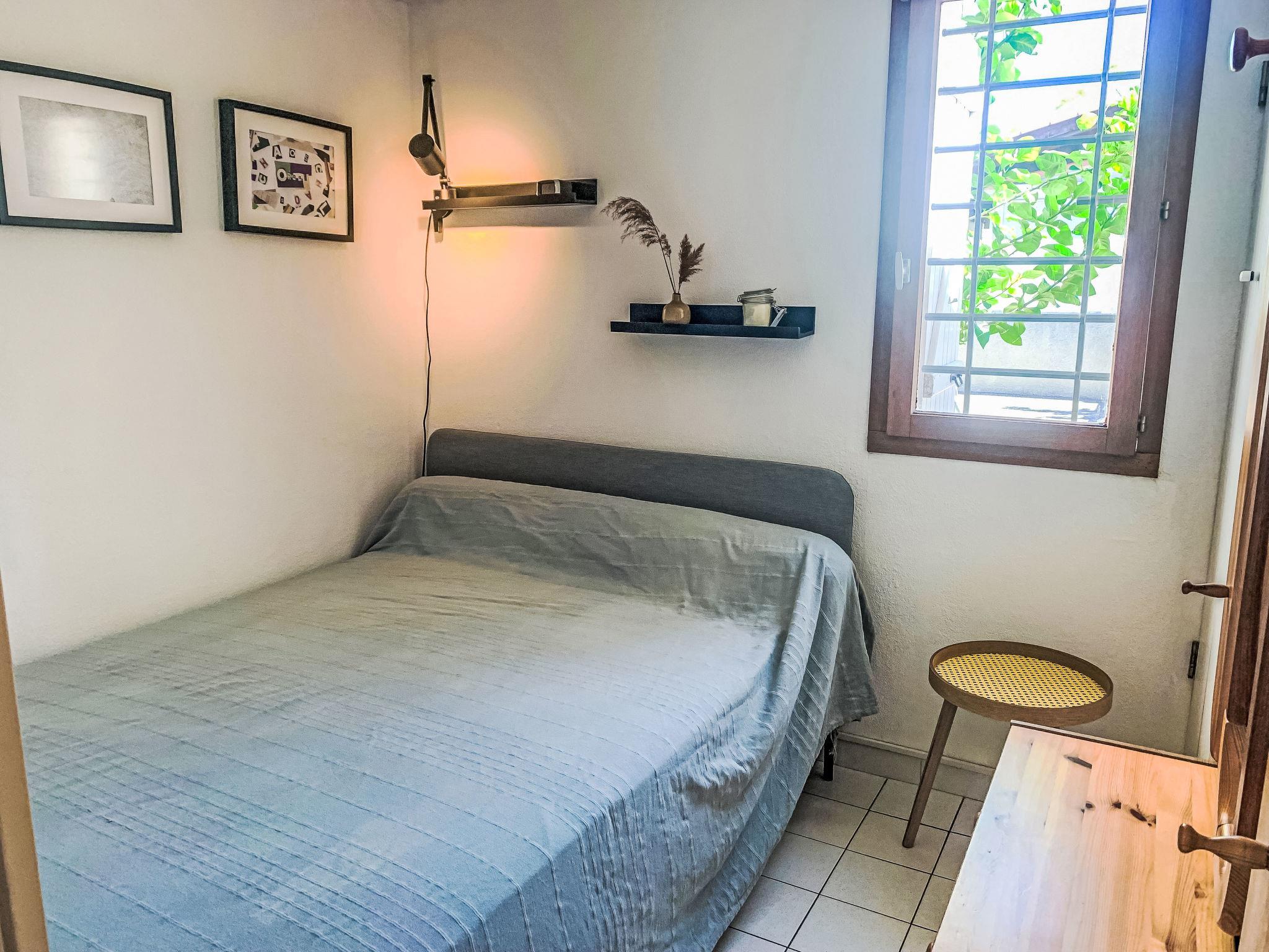 2-Zimmer-Reihenhaus 40 m2. Komfortabel und schön eingerichtet: Salon mit Veranda mit TV (Flachbildschirm). Ausgang zur Terrasse. 1 Zimmer mit 1 Doppeldiwanbett. Kochnische (3 Induktionskochplatten, Mikrowelle). Dusche, sep. WC. Obergeschoss: Galerie mit 1 franz. Bett (1 x 140 cm, Länge 190 cm), E-Heizung. Terrasse 15 m2. Terrassenmöbel. Schöne Sicht auf die Lagune. Zur Verfügung: Internet (Wireless LAN, extra). Parkplatz. Bitte beachten: TV nur FR. Rauchmelder. Anstelle eines abgeschlossenen Schlafzimmers befinden sich manche Schlafplätze in einem offenen Bereich (Galerie, Nische etc.). Inserat einer Privatperson nach Artikel 155, IV, CGI.