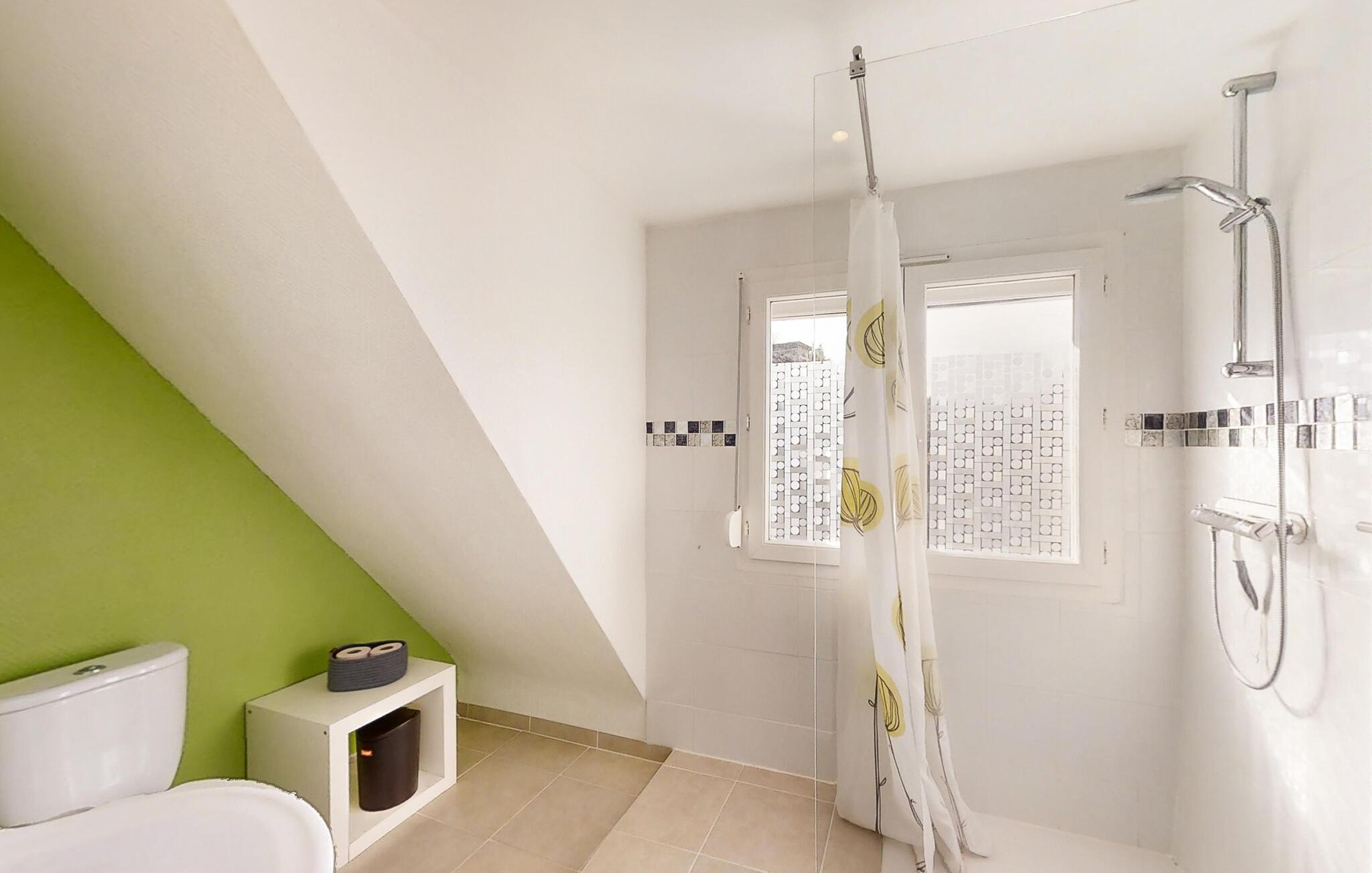Ihr Ferienhaus ist geschmackvoll eingerichtet und bietet eine einladende Atmosphäre. Im Erdgeschoss befindet sich der Wohnbereich, in dem Sie auf den komfortablen Sitzgelegenheiten entspannen können. Die Einrichtung ist modern und dennoch warm, mit liebevollen Details, die das Haus besonders einladend machen. Genießen Sie Ihr Frühstück am Esstisch in der Küche neben den großen Fenstern, die viel Licht in den Raum lassen. Hier finden Sie alles, was Sie für die Zubereitung Ihrer Mahlzeiten benötigen. Servieren Sie ein köstliches französisches Frühstück und genießen Sie es bei schönem Wetter auf dem kleinen Balkon im Obergeschoss, von dem aus Sie einen Blick auf die ruhigen Straßen des Viertels haben.