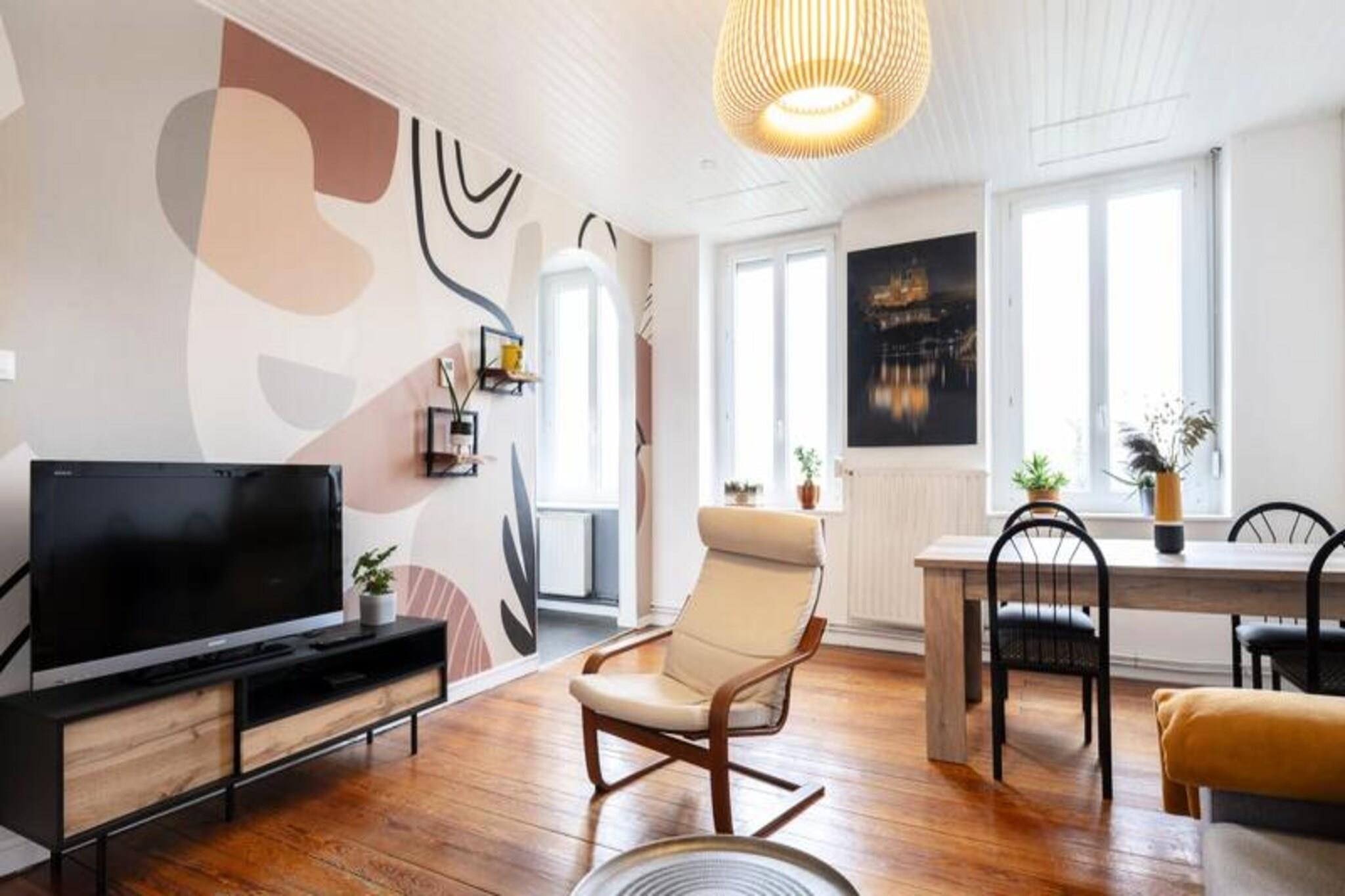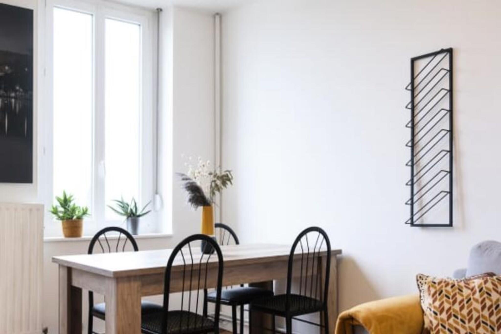 Dieses helle Apartment, perfekt für bis zu 4 Gäste, bietet einen komfortablen Aufenthalt mit einem Doppelbett im Schlafzimmer und einem Schlafsofa im Wohnzimmer. Der großzügige Wohnbereich bietet ausreichend Platz zum Entspannen und das moderne Badezimmer sorgt für zusätzlichen Komfort. Dieses haustierfreundliche Apartment heißt Ihre pelzigen Begleiter gegen eine zusätzliche Gebühr willkommen. Bei Ihrer Ankunft sind die Betten mit hochwertiger Bettwäsche bezogen und für Ihren Aufenthalt ist eine Kaution zu hinterlegen. Für eine einfache und unabhängige Anreise ist ein Self-Check-in möglich. Das Apartment liegt im Herzen von Ban-Saint-Martin, nur 10 Minuten vom Stadtzentrum von Metz entfernt und bietet einfachen Zugang zu lokalen Sehenswürdigkeiten. Gäste können den nahegelegenen Metz'Ô-Fluss-Shuttle nutzen, um Metz schnell zu erreichen und malerische Spaziergänge entlang der Mosel zu unternehmen. Im Winter sind die berühmten Weihnachtsmärkte von Metz ein Muss und bieten eine magische Atmosphäre. Die Umgebung ist voller Cafés, Geschäfte und kultureller Stätten, die es zu erkunden gilt. Das Apartment verfügt über eine ausgestattete Küche, in der Sie Ihre eigenen Mahlzeiten zubereiten können. Ein modernes Badezimmer ergänzt die Gesamtausstattung und die Gäste können den Blick auf die Mosel genießen. Die Ankunft wird durch einen Hausführer und einen Schließfachcode erleichtert, was einen reibungslosen Check-in-Prozess gewährleistet.