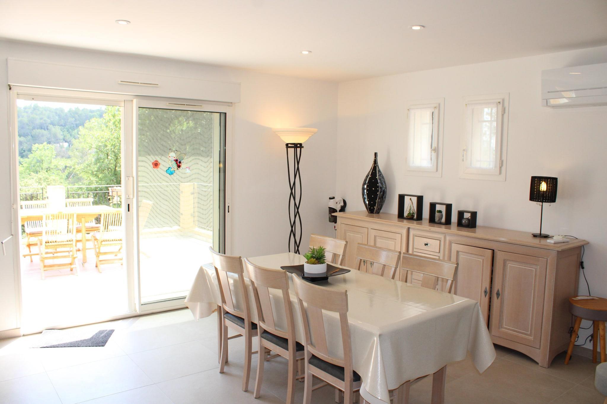Die Villa liegt ruhig in einem Wohngebiet mit anderen Villen. Es verfügt über einen privaten beheizten Pool, umgeben von Liegestühlen und Sonnenschirmen, sowie eine großzügige Sonnenterrasse. Der abfallende Garten mit einer Fläche von 1250 m² bietet viel Platz für Kinder zum Spielen. Ideal für Familien! Diese Villa befindet sich in ruhiger Lage etwa 1,6 km von Lorgues entfernt, wo Sie eine Bäckerei, einen Metzger, einen Fischhändler, verschiedene Supermärkte, Terrassen und Restaurants finden. Die Region beherbergt zahlreiche Weingüter und bekannte provenzalische Märkte, wie zum Beispiel den Dienstagmorgenmarkt von Lorgues. Eine der Terrassen ist vom Wohnzimmer aus durch eine große Schiebetür zugänglich. Der untere Swimmingpool, der Garten und die Terrasse sind über eine Treppe erreichbar. Außerhalb der Monate Juli und August kann der Pool auf Anfrage und gegen Gebühr beheizt werden. Die Villa bietet viel Privatsphäre und einen schönen Blick auf den farbenfrohen Garten mit typisch provenzalischen Pflanzen. Das Haus verfügt außerdem über einen Bouleplatz und ausreichend Parkplätze. Die attraktive Villa verfügt über ein geräumiges Wohnzimmer mit Kamin, WLAN, Klimaanlage, einem großen Esstisch und einer beeindruckenden Schiebetür zur Terrasse. Die Küche ist mit einem amerikanischen Kühlschrank mit Eismaschine ausgestattet. Durch das Wohnzimmer gelangen Sie auf die Terrasse mit elektrischer Markise.