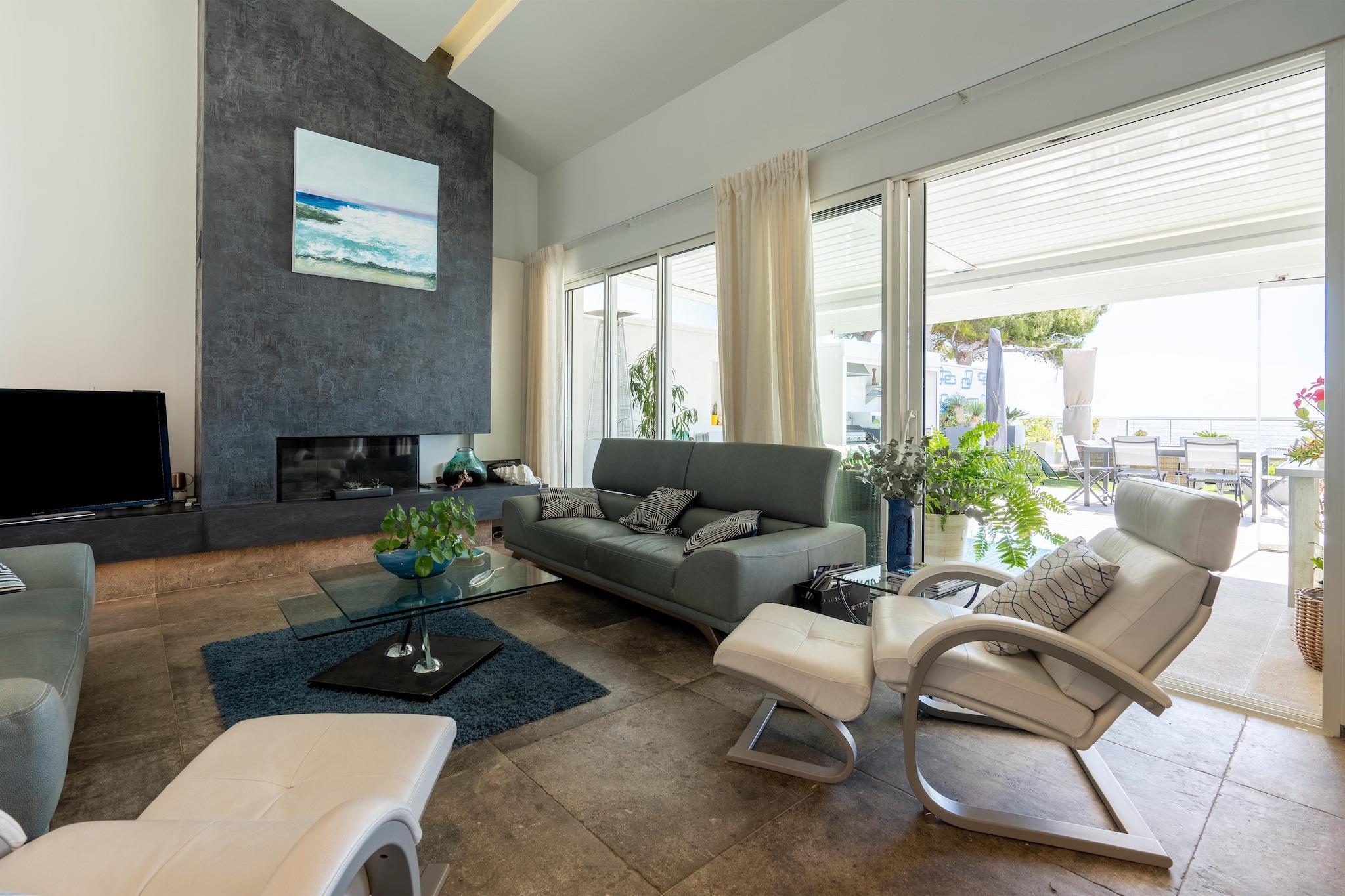 Parterre: (offene Küche(Bar(Esstheke), Kochherd(Ceranfeld), Dunstabzugshaube, Kaffeemaschine, Backofen, Mikrowelle, Spülmaschine, Kühlschrank), Vorratsraum(Kochherd(Gas), Kühl-/Gefrierkombination, Trockner, Waschmaschine), Wohn/Esszimmer(TV, Esstisch, Kaminofen, Sitzecke), Toilette, Saal, Veranda(Sitzecke)) Zwischengeschoss: (Bibliothek, Doppelschlafcouch) In der 1. Etage: (Schlafzimmer(Doppelbett(160 x 200 cm)), Schlafzimmer mit Badezimmer(Doppelbett(180 x 200 cm)), Badezimmer(Badewanne, Dusche, Waschbecken), Toilette(Waschbecken)) Gästeunterkunft Parterre: (Küche(Backofen, Mikrowelle, Spülmaschine, Kühl-/Gefrierkombination, elektrische Kochplatten), Wohn-/Schlafzimmer(Doppelschlafcouch, TV), Schlafzimmer(Doppelbett(160 x 200 cm)), Badezimmer(Dusche, Waschbecken), Toilette) Außenküche, Mikrowelle, Klimaanlage, Terrasse, Garten(umzäunt), Liegen, Parkplatz, Pool(alleinige Nutzung, 6 x 3 m.), Plancha