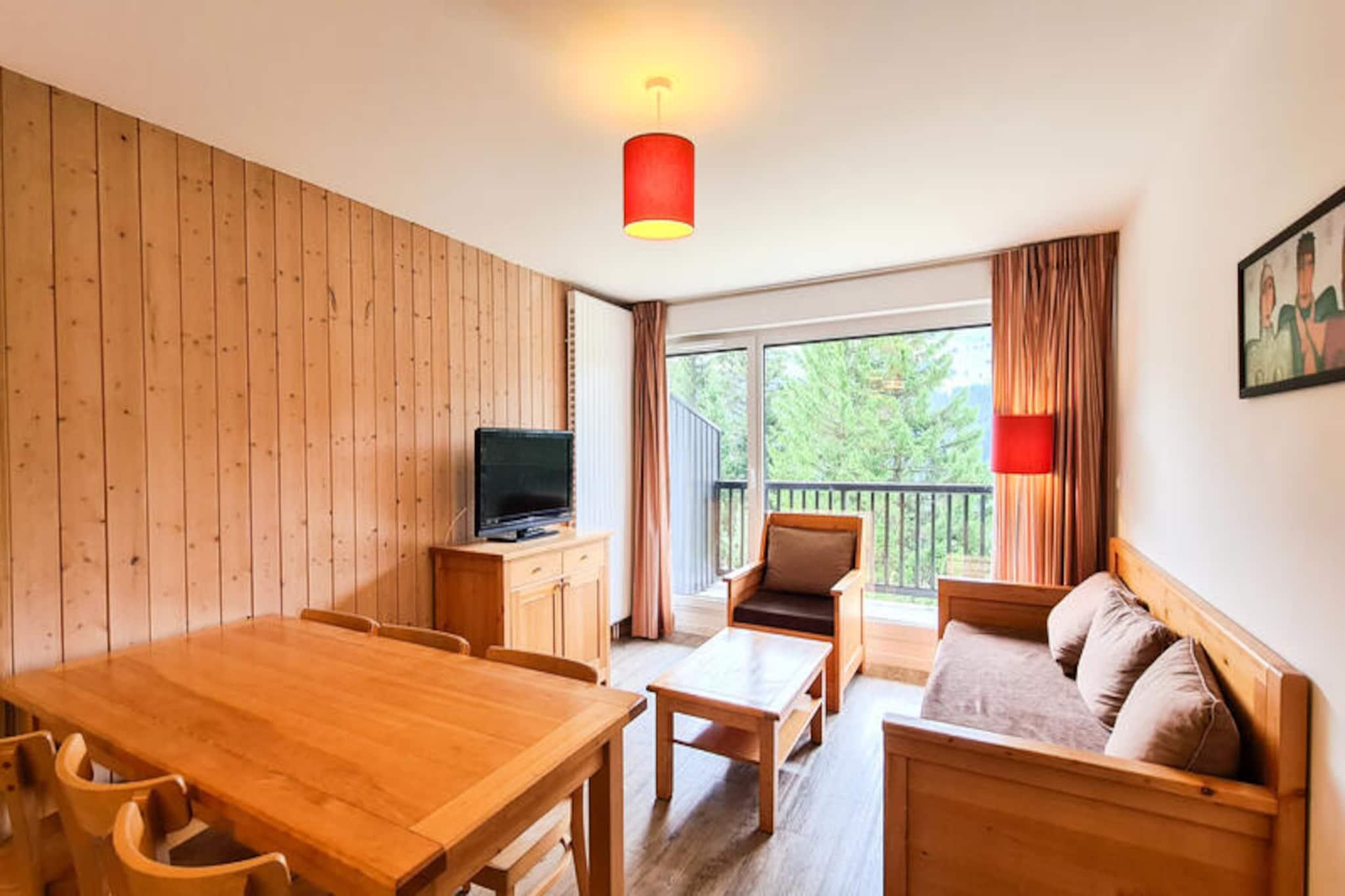 Im ruhigen Herzen von Flaine Forêt bietet dieses charmante Gartenapartment einen herrlichen alpinen Rückzugsort mit einem nach Süden ausgerichteten Balkon, der zum Genießen des Bergpanoramas und der frischen Luft einlädt. Ob Sie die schneebedeckten Pisten oder die vielfältigen Sommeraktivitäten suchen – diese Unterkunft ist ideal gelegen, nur 500 Meter von den Skiliften und 150 Meter vom Einkaufszentrum entfernt. Dank des kostenlosen Skibusses, der direkt vor der Tür hält, genießen Sie maximalen Komfort und einen unbeschwerten Urlaub. \n\nDas Apartment bietet Platz für bis zu sechs Gäste, erstreckt sich über 54 Quadratmeter und besticht durch eine gemütliche und zugleich funktionale Raumaufteilung. Das Wohnzimmer verfügt über ein Schlafsofa und ein Ausziehbett, während die beiden Schlafzimmer – eines mit einem Doppelbett und das andere mit zwei Einzelbetten – erholsame Rückzugsorte bieten. Die offene Küche ist mit modernen Annehmlichkeiten wie Cerankochfeld, Multifunktionsbackofen, Kühlschrank und Geschirrspüler ausgestattet, sodass Sie Ihre Mahlzeiten mühelos zubereiten können. Zu den weiteren Annehmlichkeiten gehören ein Flachbildfernseher mit Kabelanschluss, ein Badezimmer mit Badewanne, ein Duschbad mit WC und ein separates WC. Die Wohnung mit Parkettboden und Fliesen vereint Gemütlichkeit und Funktionalität. \n\nAußerhalb der Unterkunft bietet Flaine eine Fülle an Aktivitäten und Attraktionen. Im Winter sind die Pisten nur wenige Minuten entfernt, und im Sommer ermöglicht der „Flaine Sommerpass“ bei einem Aufenthalt von sechs Nächten oder länger den Zugang zu zahlreichen Abenteuern. Das nahegelegene Einkaufszentrum bietet alles für den täglichen Bedarf, und überdachte Parkplätze stehen für zusätzlichen Komfort zur Verfügung. Ob Skifahren, Wandern oder einfach nur Entspannen – diese Wohnung ist der perfekte Ausgangspunkt, um die Schönheit der französischen Alpen zu entdecken. \n\nWählen Sie dieses einladende Zuhause für einen Urlaub voller Komfort, Abenteuer und unvergesslichem alpinen Charme.