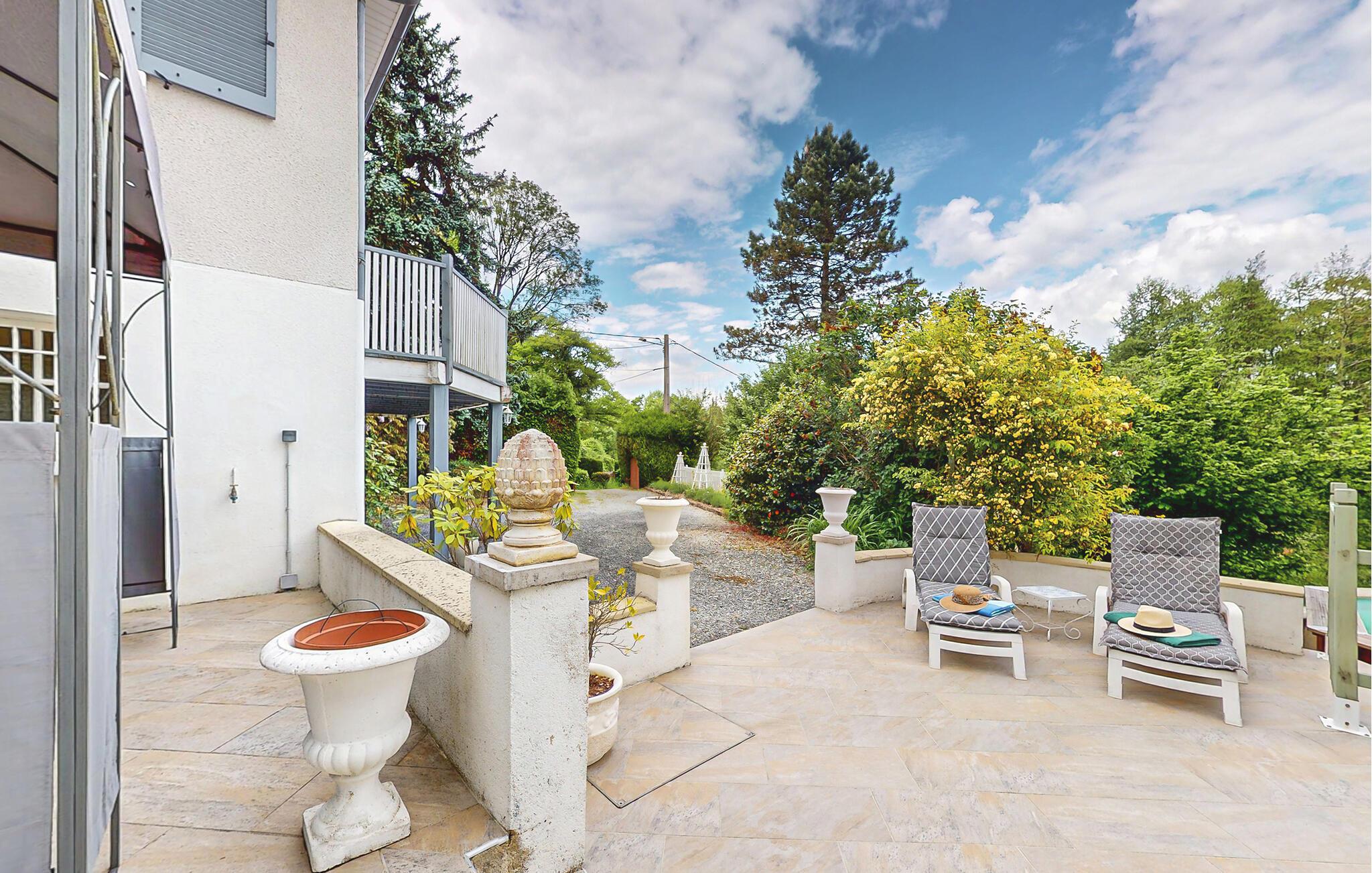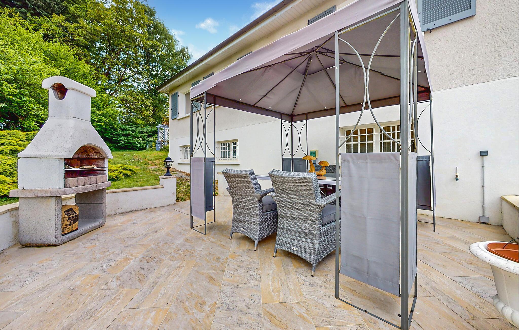 Im Außenbereich erwartet Sie ein idyllischer Garten mit duftenden Blumen, einer großzügigen Terrasse und einem erfrischenden Pool. Genießen Sie die Ruhe auf einer der Liegen oder nehmen Sie mit einem kühlen Getränk unter der überdachten Pergola Platz. Abends bietet der Grill die perfekte Gelegenheit, den Tag mit einem geselligen Barbecue ausklingen zu lassen.