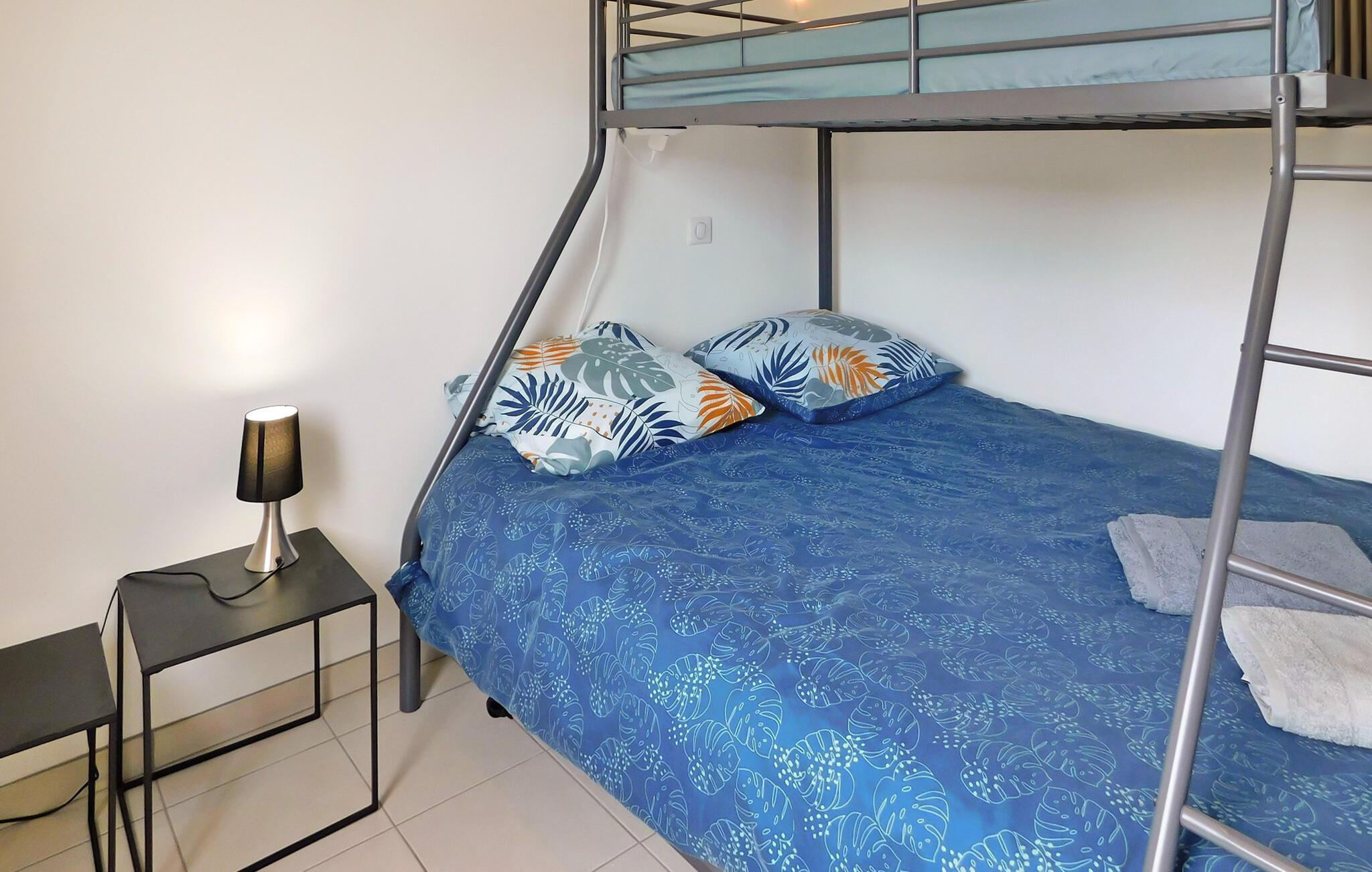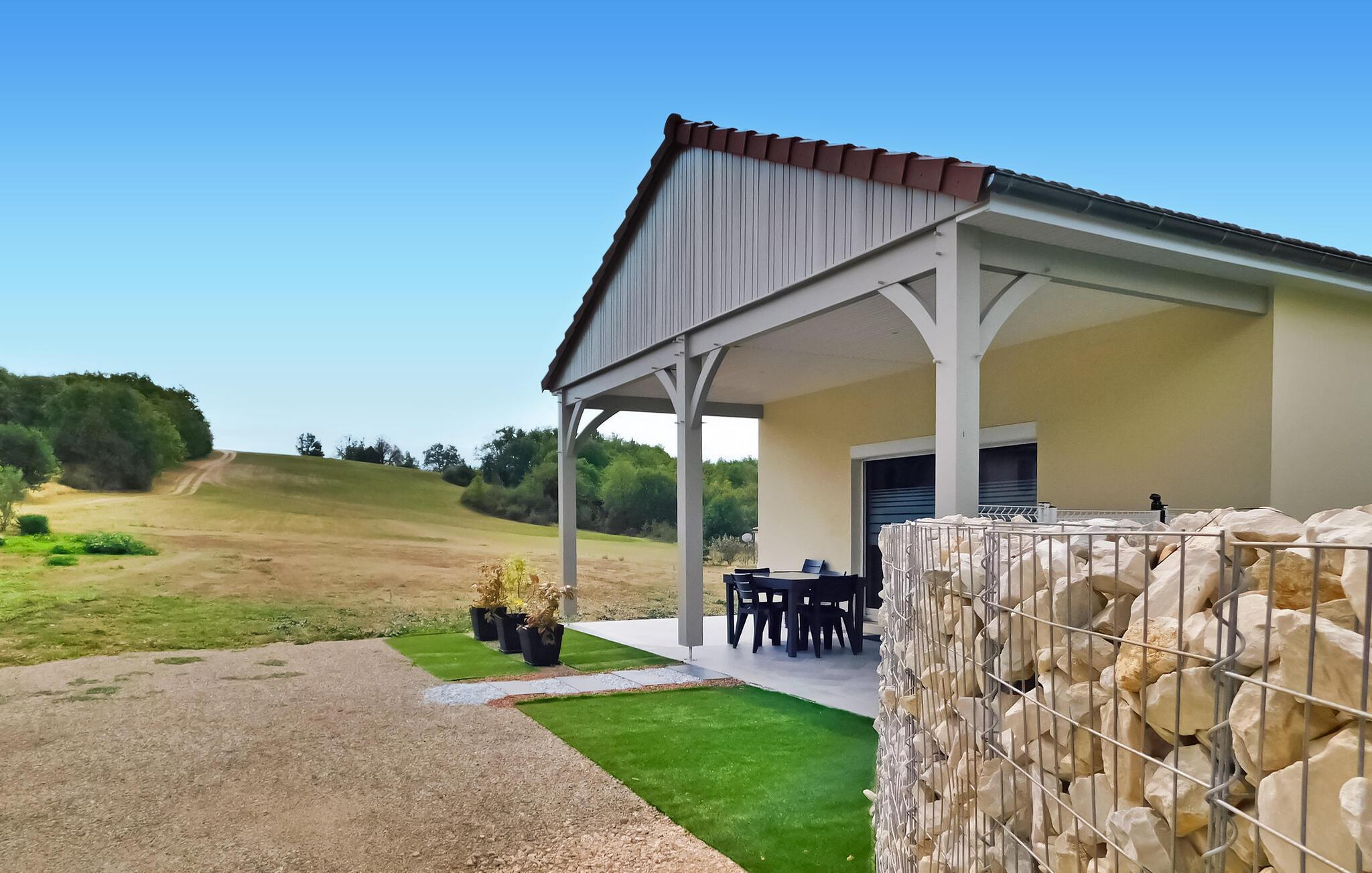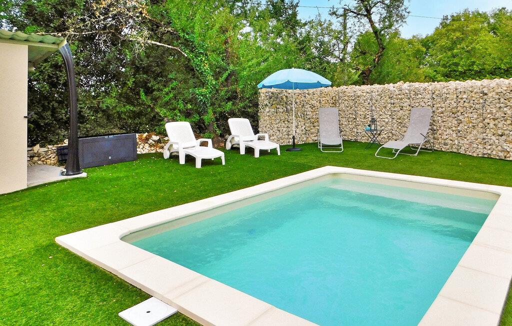 Dieses kürzlich erbaute Feriendomizil im Herzen von Quercy-Lot ist ein perfekter Rückzugsort für eine Familie. Es liegt am Rande des Dorfes Martel (ca. 500 m zu Fuß entfernt) und verfügt über einen klimatisierten Wohnbereich, der eine Küche sowie einen Ess- und Wohnbereich umfasst. Die verglaste Tür öffnet sich zur Terrasse und erweitert so den Wohnraum. Die Miete besteht aus zwei Schlafzimmern: Schlafzimmer 1 verfügt über ein Doppelbett (140 cm breit) und einen Kleiderschrank, während Schlafzimmer 2 über ein Doppelbett (140 cm breit) mit einem Doppelbett verfügt. Bitte beachten Sie: Das Etagenbett ist für Jugendliche bis 15 Jahre geeignet alt, aber nicht für Kinder unter 6 Jahren empfohlen. Draußen bietet das Anwesen eine überdachte, gepflasterte Terrasse, die mit einem Tisch und Stühlen ausgestattet ist. Für das Kochen im Freien stehen außerdem eine elektrische Grillplatte und eine Fritteuse zur Verfügung. Es gibt einen kleinen privaten, eingezäunten Pool mit den Maßen 4 x 2,50 m, der von Gabionenwänden umgeben ist, und einen mit synthetischem Teppich ausgestatteten Poolbereich.