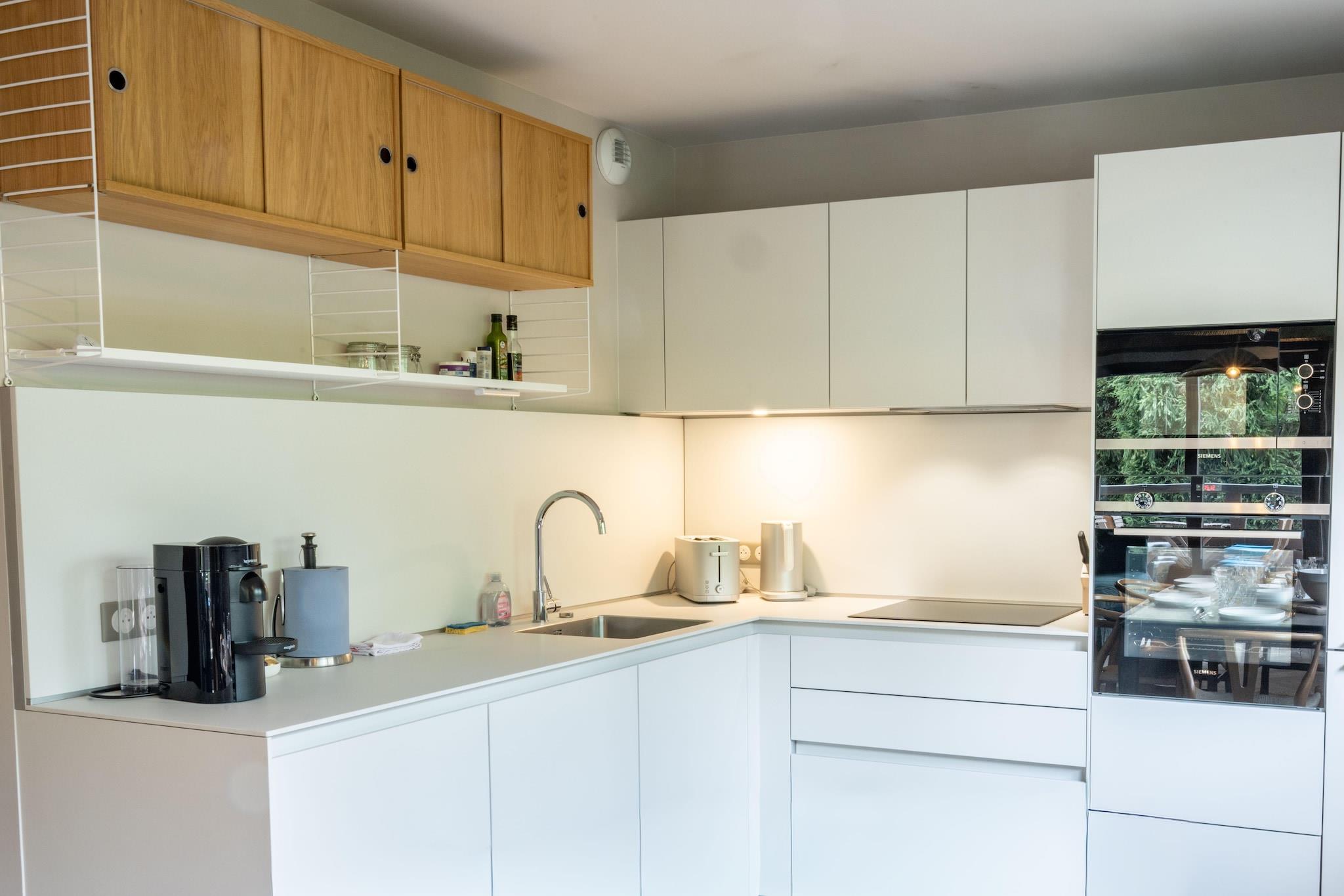 In der 1. Etage: (Wohnzimmer(TV), Küche(Esstisch, Wasserkocher, Toaster, Kaffeemaschine, Mikrowelle, Spülmaschine, Kühlschrank, Tiefkühlschrank, Heizung, , , Baking sheet, Wine glasses), Schlafzimmer(Queen Bed), Schlafzimmer(Einzelbett, Etagenbett), Badezimmer(Dusche), Badezimmer(Badewanne, Dusche, Toilette), Toilette(Toilette)) , , , Erste-Hilfe-Station, TV, Klimaanlage, Bügeleisen, Föhn, , , , Carbon monoxide detector, Cleaning products, Coffee, Downtown, Extra pillows and blankets, Room-darkening shades, Shower gel