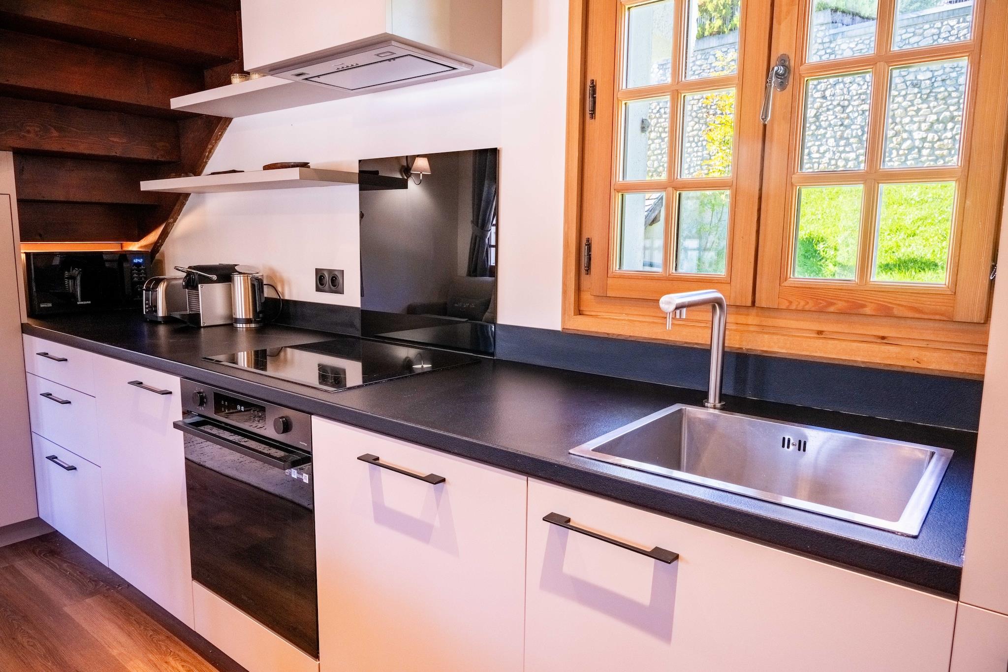 Parterre: (Wohnzimmer(TV, Esstisch, Sitzecke), offene Küche(Herd, Kochplatte, Wasserkocher, Toaster, Kaffeemaschine, Backofen, Mikrowelle, Spülmaschine, Kühlschrank, Tiefkühlschrank, , , Coffee, Wine glasses), Schlafzimmer(Doppelbett, TV), Schlafzimmer(Einzelbett, Einzelbett), Schlafzimmer mit Badezimmer(Doppelbett, TV, Dusche, Waschbecken, Föhn, , , Cleaning products), Badezimmer(Badewanne, Toilette)) , , , Trockner, Waschmaschine, Heizung, Bügeleisen, Handtücher/Bettwäsche (inklusive), , Mountain, Mountain view