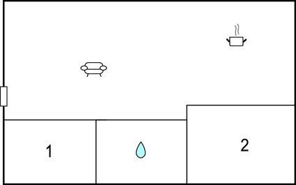 Badezimmer 7m2 (nr. 1) - WC. Warmes und kaltes Wasser. Dusche