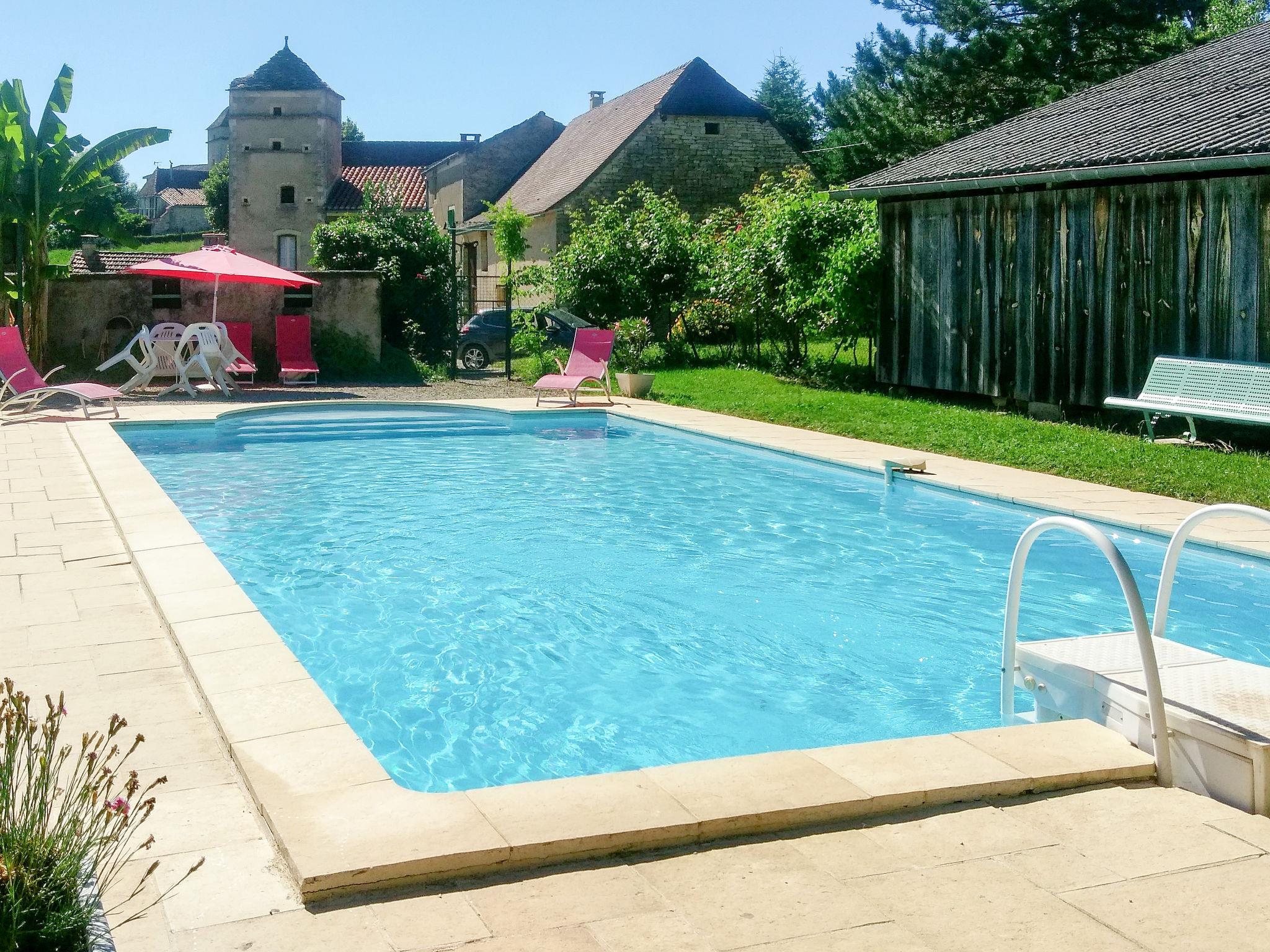 Rustikales, historisches Bauernhaus "Le Mas de Serre", einseitig angebaut, umgeben von Wiesen, Feldern und Weinbergen. In einem Weiler, 5 km vom Zentrum von Mercuès, 4 km vom Zentrum von Espère, 8 km vom Zentrum von Cahors, ruhige Lage, 6 km vom See. Zur Alleinbenutzung: naturbelassenes Grundstück 1'000 m2 (eingezäunt), Hof, Schwimmbad eingezäunt (10 x 5 m, saisonale Verfügbarkeit: 01.Jan. - 31.Dez.) mit Innentreppe und Alarmanlage. Terrasse, Gartenmöbel. Treppenweg bis zum Haus. Parkplatz beim Haus auf dem Grundstück. Supermarkt 4 km, Bushaltestelle "Pont de campagne,Cahors" 10 km, Badesee "Lac vert à Catus" 6 km.