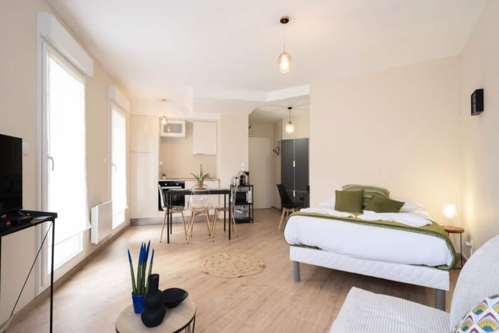 Im lebhaften Sablon-Viertel von Metz bietet dieses moderne Studio einen gemütlichen Rückzugsort für bis zu vier Reisende. Nur wenige Minuten vom TGV-Bahnhof und dem Stadtzentrum entfernt, ist es der perfekte Ausgangspunkt, um den Charme und die Geschichte dieser malerischen französischen Stadt zu entdecken. Ob Sie geschäftlich oder privat reisen, Sie werden das durchdachte Design und die günstige Lage dieser Unterkunft zu schätzen wissen. Das Studio verfügt über ein komfortables Doppelbett und ein Schlafsofa und ist somit ideal für Paare, Familien oder kleine Gruppen. In der voll ausgestatteten Küchenzeile können Sie Ihre Mahlzeiten ganz nach Belieben zubereiten, und das moderne Badezimmer sorgt für einen erfrischenden Start in den Tag. Das Studio befindet sich im zweiten Stock eines ruhigen Hauses mit Aufzug und bietet kostenlose Parkplätze sowie Parkmöglichkeiten in der Nähe. Hochwertige Bettwäsche und bezogene Betten bei Ihrer Ankunft verleihen Ihrem Aufenthalt einen Hauch von Luxus. Metz ist eine Stadt voller Schätze, die darauf warten, entdeckt zu werden. Schlendern Sie durch die historischen Straßen und bewundern Sie die Kathedrale Saint-Étienne, den Temple Neuf und das Centre Pompidou. Verpassen Sie nicht die bezaubernden Parks und Museen, die die Stadt zum Leben erwecken. Im Winter verströmen die stimmungsvollen Weihnachtsmärkte, das Riesenrad auf der Place d'Armes und das Karussell auf der Place Saint-Louis eine magische Atmosphäre. Ob romantischer Kurzurlaub, Familienausflug oder Geschäftsreise – dieses Studio bietet die perfekte Kombination aus Komfort und Bequemlichkeit. Dank Self-Check-in und flexiblen Check-out-Optionen wird Ihr Aufenthalt in Metz so unkompliziert wie unvergesslich.