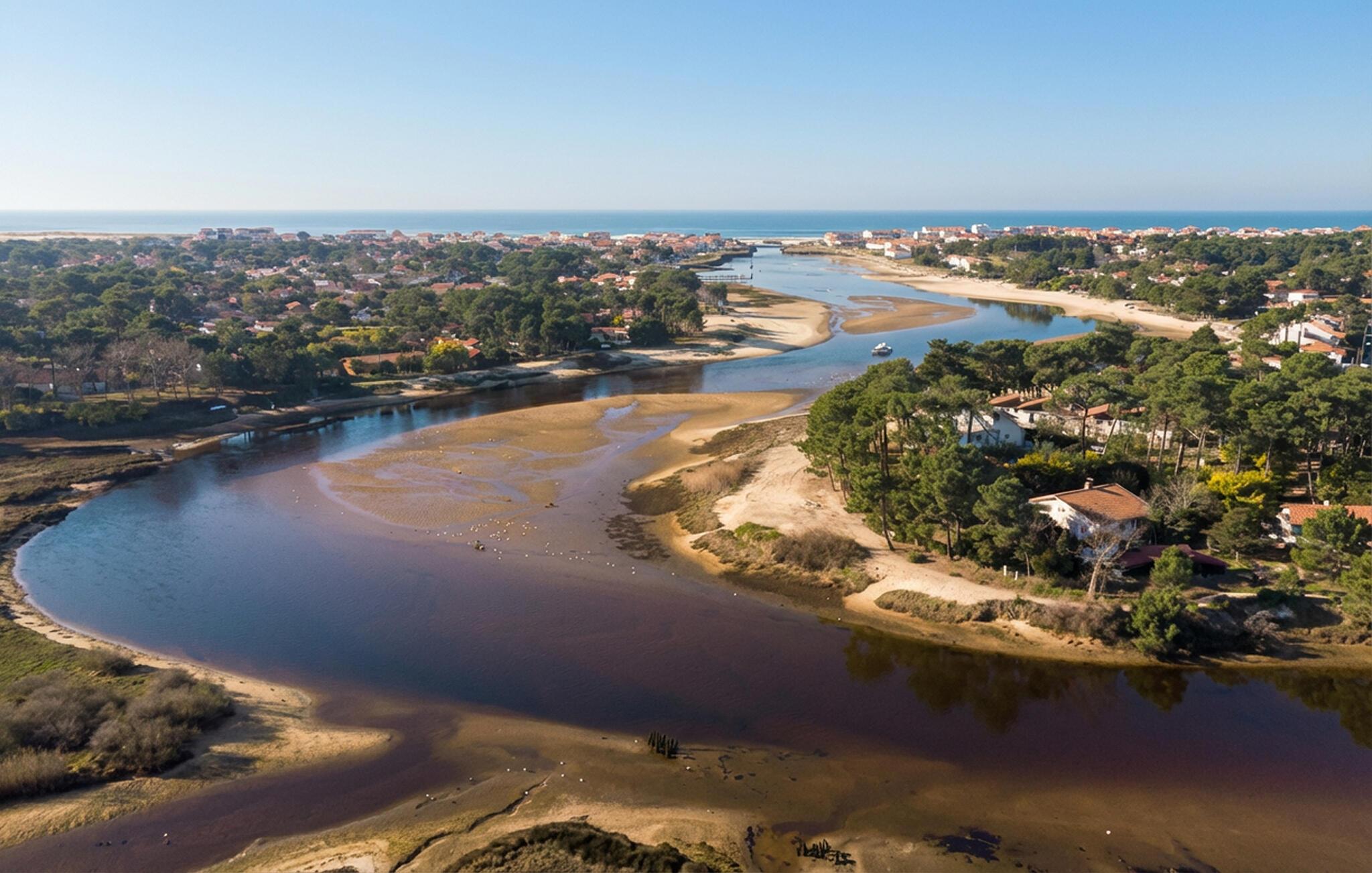 Entdecken Sie die Umgebung von Mimizan mit ihren vielfältigen Natur- und Freizeitangeboten. Spazieren Sie durch die nahe gelegenen Wälder der Landes, unternehmen Sie Radtouren auf gut ausgebauten Wegen oder erreichen Sie in kurzer Zeit die Atlantikstrände. Besuchen Sie den Lac d’Aureilhan für Spaziergänge am Wasser oder fahren Sie ins Zentrum von Mimizan-Plage mit Restaurants, Markt und Surfspots.