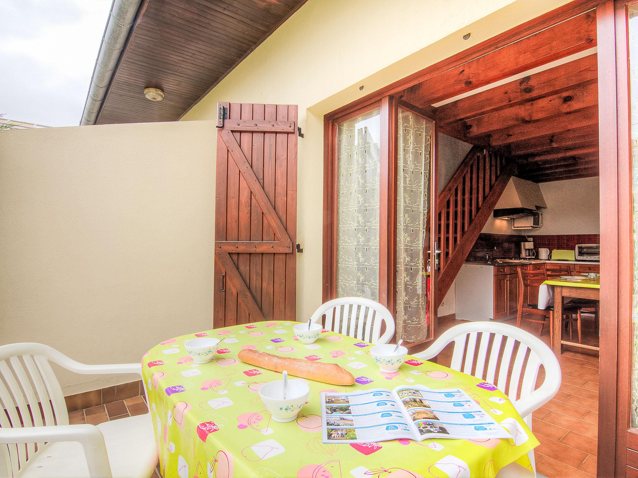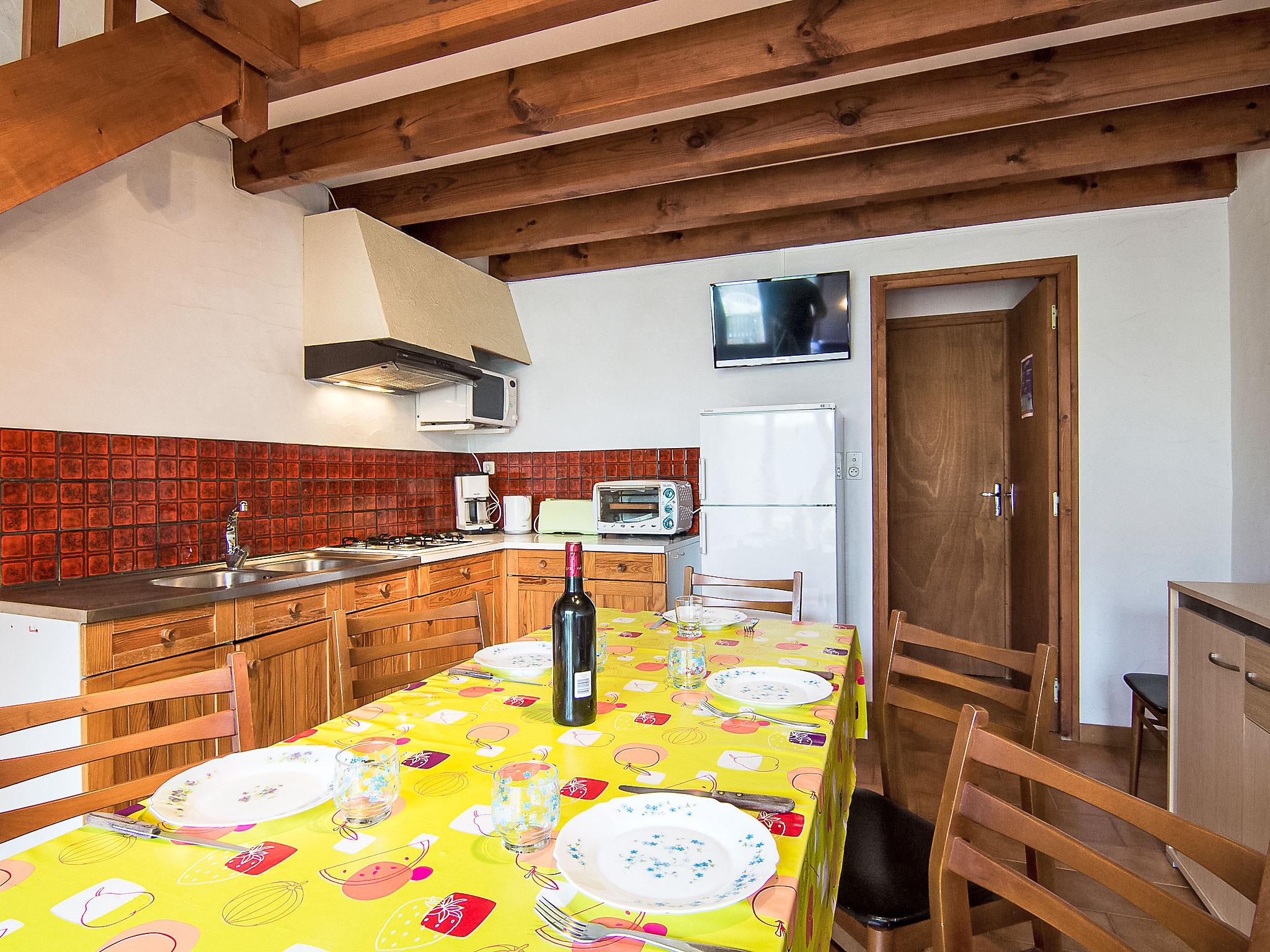 3-Zimmer-Reihenhaus 50 m2 auf 2 Stockwerken. Einfach eingerichtet: Wohn-/Esszimmer mit TV und Internationale TV-Sender (Flachbildschirm). Ausgang zur Terrasse. Offene Küche (1 Kochplatte, Mini-Backofen, 4 Flammen, Toaster, Wasserkocher, Mikrowelle, elektrische Kaffeemaschine, Kapseln für die Kaffeemaschine (filtre) extra). Dusche, sep. WC. Heizung nicht in allen Räumen. Obergeschoss: 1 abgeschrägtes Zimmer mit 1 franz. Bett (1 x 140 cm, Länge 190 cm). 1 abgeschrägtes Zimmer mit 1 Bett (90 cm, Länge 190 cm), 1 franz. Bett (1 x 140 cm, Länge 190 cm). Terrasse. Terrassenmöbel, Liegestühle (1). Zur Verfügung: Internet (WLAN, gratis). Bitte beachten: Maximal 1 Haustier/Hund erlaubt. Rauchmelder.