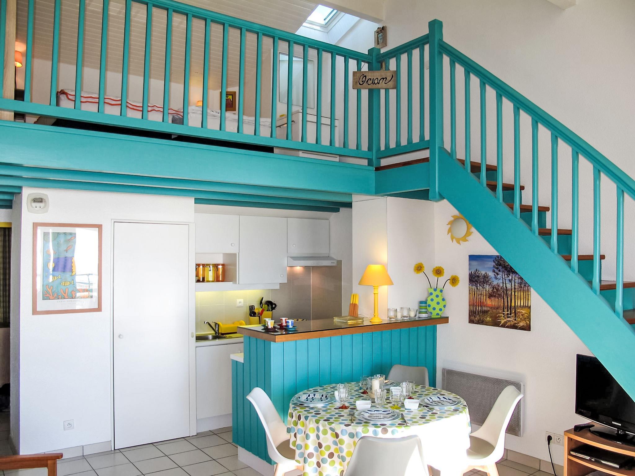 Residenz "Horizon". Im Ort, 100 m vom Zentrum von Mimizan Plage, zentrale, belebte Lage, im Herzen der Stadt, 600 m vom Waldrand, 50 m vom Meer, 10 km vom See, 50 m vom Strand. Einkaufsgeschäft 100 m, Lebensmittelgeschäft 50 m, Supermarkt 500 m, Restaurant 10 m, Bäckerei 100 m, Bushaltestelle 500 m, Sandstrand "la garluche" 50 m. Golfplatz (9 Loch) 8 km, Surfschule 50 m. Nahe gelegene Sehenswürdigkeiten: Arcachon 70 km, Biscarrosse 35 km, eco musée marquèze 40 km, Disc golf 900 m. Wandergebiete: skate parc 900 m.