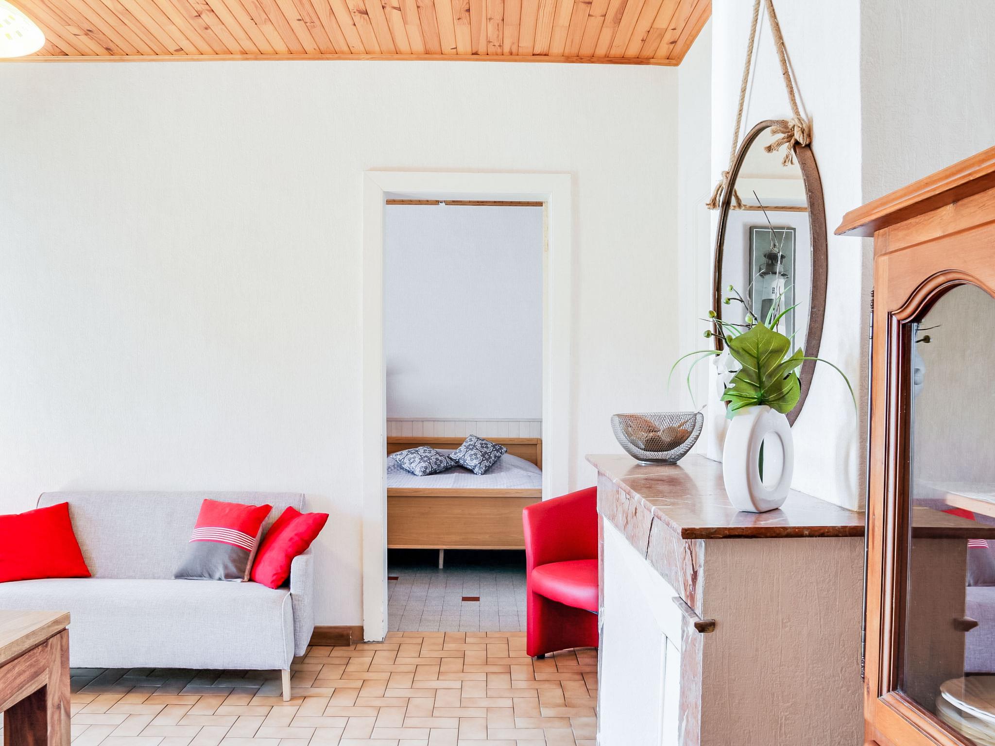3-Zimmer-Doppelhaushälfte 40 m2. Rustikal und antik eingerichtet: Wohn-/Esszimmer mit 1 Bett (80 cm, Länge 190 cm), 2 Doppelbetten (2 x 140 cm, Länge 190 cm), Sat-TV, Internationale TV-Sender, Radio und CD. Ausgang zur Terrasse. 1 Zimmer mit 1 franz. Bett (1 x 140 cm, Länge 190 cm). 1 Zimmer mit 1 Bett (90 cm, Länge 190 cm), 1 franz. Bett (1 x 140 cm, Länge 190 cm). Kochnische (Mini-Backofen, 2 Glaskeramikplatten, Mikrowelle, elektrische Kaffeemaschine, Kapseln für die Kaffeemaschine (FILTRE) extra). Dusche/WC. Heizung nicht in allen Räumen. Terrasse überdacht. Terrassenmöbel, Liegestühle (2). Zur Verfügung: Internet (Wireless LAN, extra). Bitte beachten: Wohnung auf Strassenseite. Rauchmelder.