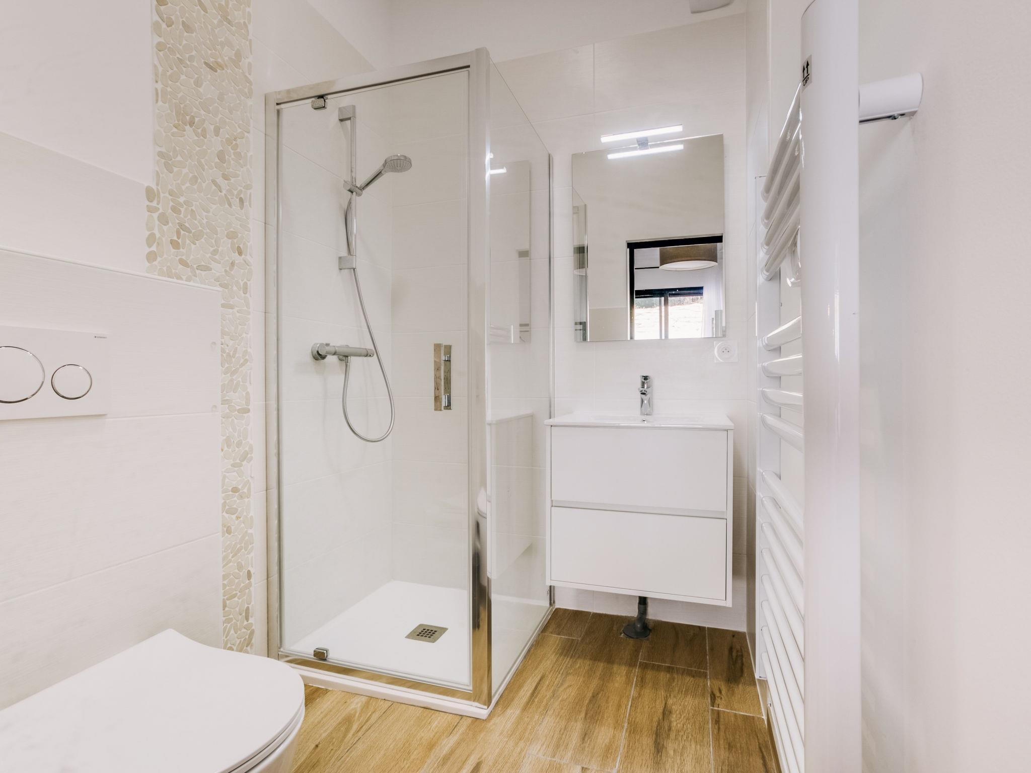 4-Zimmer-Haus 78 m2 auf 3 Stockwerken im 1. Stock. Komfortabel und modern eingerichtet: Wohn-/Esszimmer mit TV und Internationale TV-Sender (Flachbildschirm), Klimaanlage und elektrischem Rollladen. Ausgang zur Terrasse. Obergeschoss: Küche (Backofen, Geschirrspüler, 1 Induktionskochplatten, 3 Flammen, Toaster, Wasserkocher, Mikrowelle, Tiefkühler, elektrische Kaffeemaschine, Kapseln für die Kaffeemaschine (Nespresso) extra) mit Klimaanlage. Ausgang zur Terrasse. Dusche, sep. WC. Klimaanlage, Warmluftheizung. 2. Obergeschoss: 1 Zimmer mit 1 franz. Bett (160 cm, Länge 200 cm), Dusche/WC. Ausgang zur Terrasse. 1 Zimmer mit 1 x 2 Etagenbetten (90 cm, Länge 190 cm), 1 franz. Bett (160 cm, Länge 200 cm). Holzdielenboden. 2 Terrassen 40 m2. Terrassenmöbel, Gartengrill, Liegestühle. Zur Verfügung: Waschmaschine, Bügeleisen. Internet (WLAN, gratis). Parkplatz (2 Autos). Bitte beachten: Nichtraucher-Haus. Maximal 1 Haustier/Hund erlaubt. Rauchmelder. Bitte beachten Sie : Die Etagenbetten und das französische Bett sind durch eine Glastür getrennt, zwischen dem Wohnzimmer und der Küche sind 6 Stufen, zwischen der Küche und den Schlafzimmern sind 6 Stufen. Momentan finden Arbeiten in der Wohnsiedlung statt. FR3420.226.1