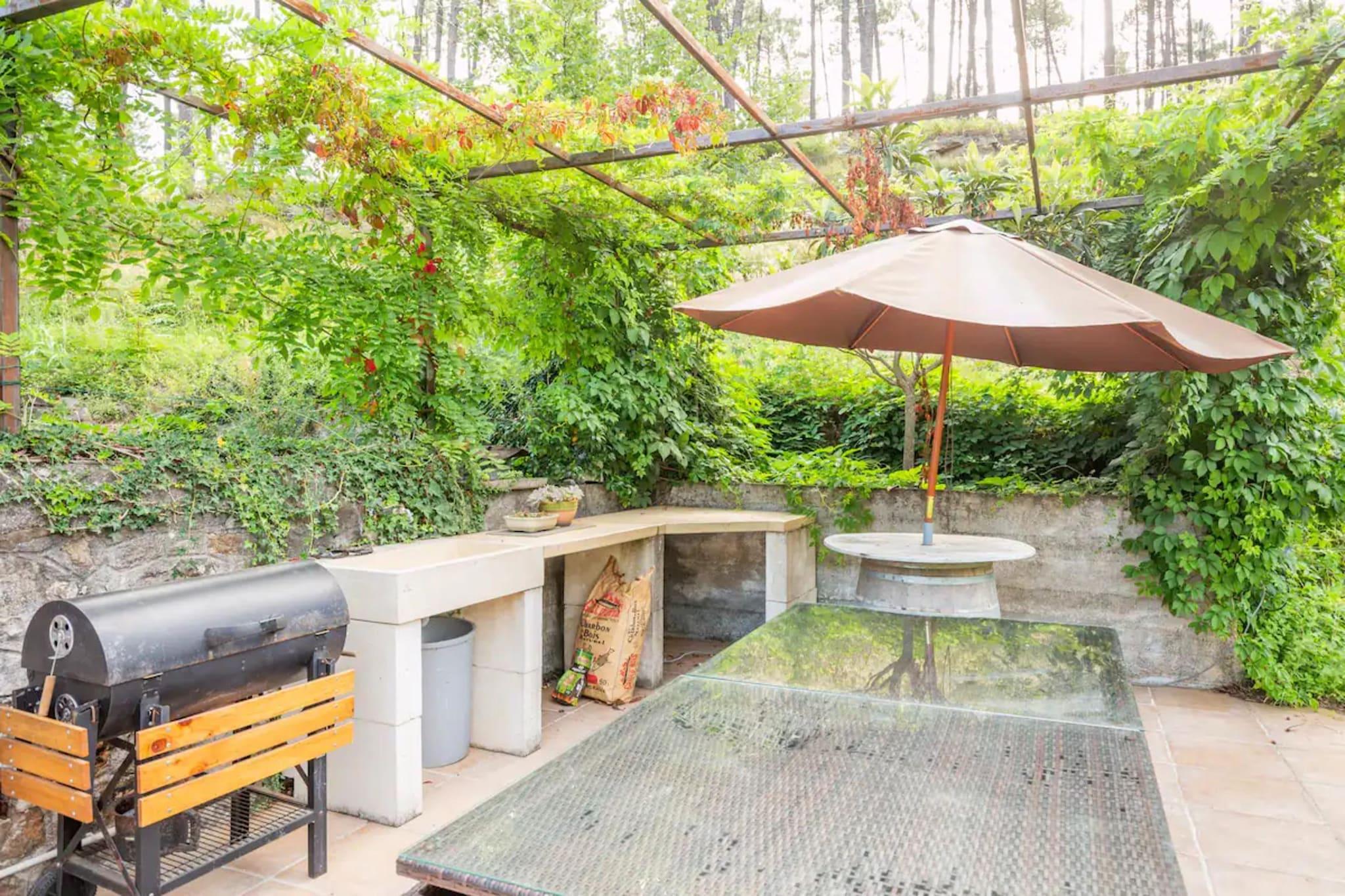 In der 1. Etage: (Aufenthaltsraum(TV, Kaminofen, Sitzecke), Wohnküche(Esstisch(6 Personen), Toaster, Kochherd, Dunstabzugshaube, Espressomaschine, Backofen, Mikrowelle, Spülmaschine, Spülmaschine, Kühlschrank, Tiefkühlschrank, Mixer, Küchenmaschine), Schlafzimmer(Doppelbett), Schlafzimmer(Doppelbett), Schlafzimmer(Doppelschlafcouch), Badezimmer(Dusche, Waschbecken, Toilette, Bügelbrett, Bügeleisen, Föhn), Toilette, Terrasse(überdacht, umzäunt), Terrasse(überdacht), Gartenlounge, Plancha) Esstisch, Terrasse, Garten, Liegen, Grill(Holzkohle), Parkplatz, Pool(alleinige Nutzung, im Garten)