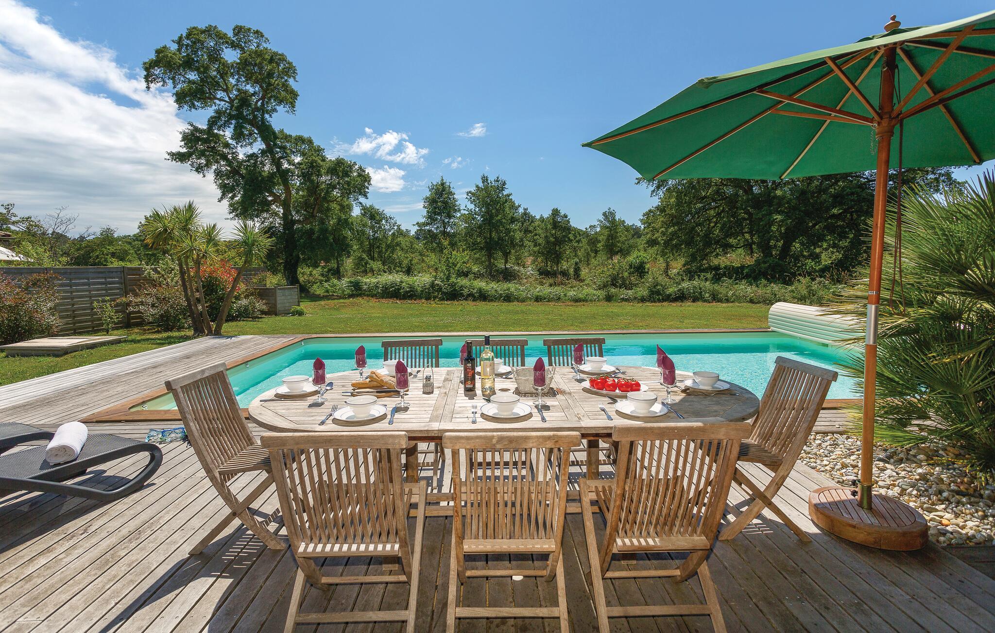 Unweit des Atlantiks mit seinen weitläufigen Sandstränden und inmitten des renommierten Golfplatzes von Moliets erwarten Sie diese komfortablen und modernen Villen in einem Ferienpark, die, egal ob ganz unabhängig oder als Doppelhaushälfte, alle über einen Privatpool mit herrlicher Terrasse verfügen, der in der Saison und abhängig vom Wetter genutzt werden kann.