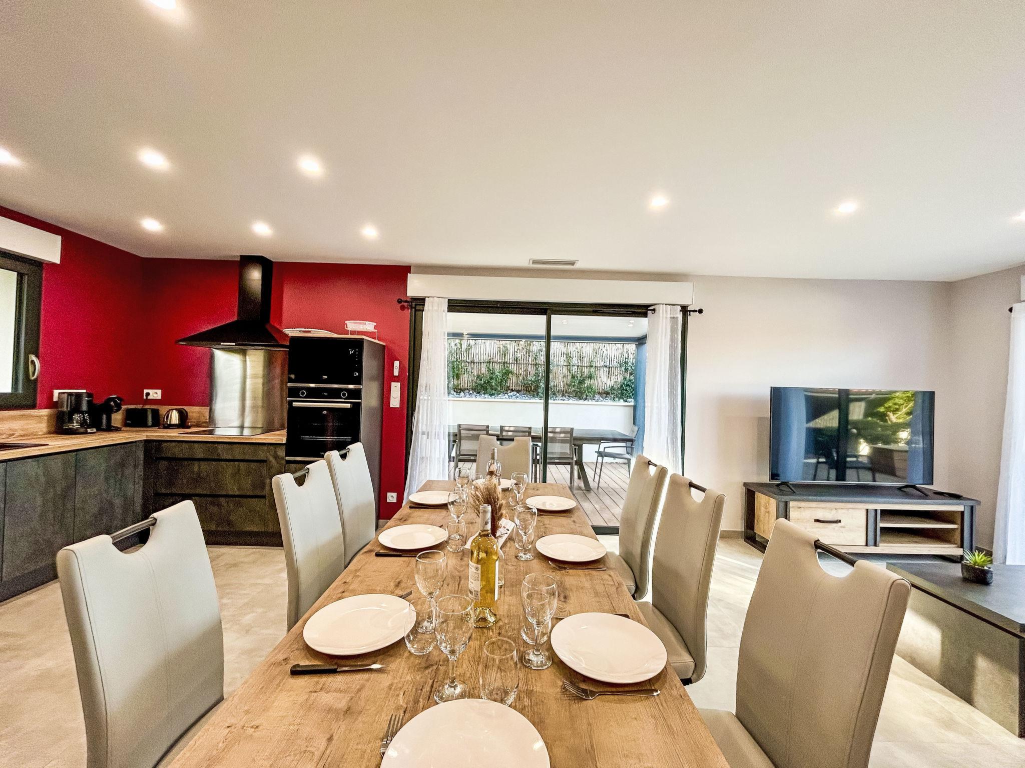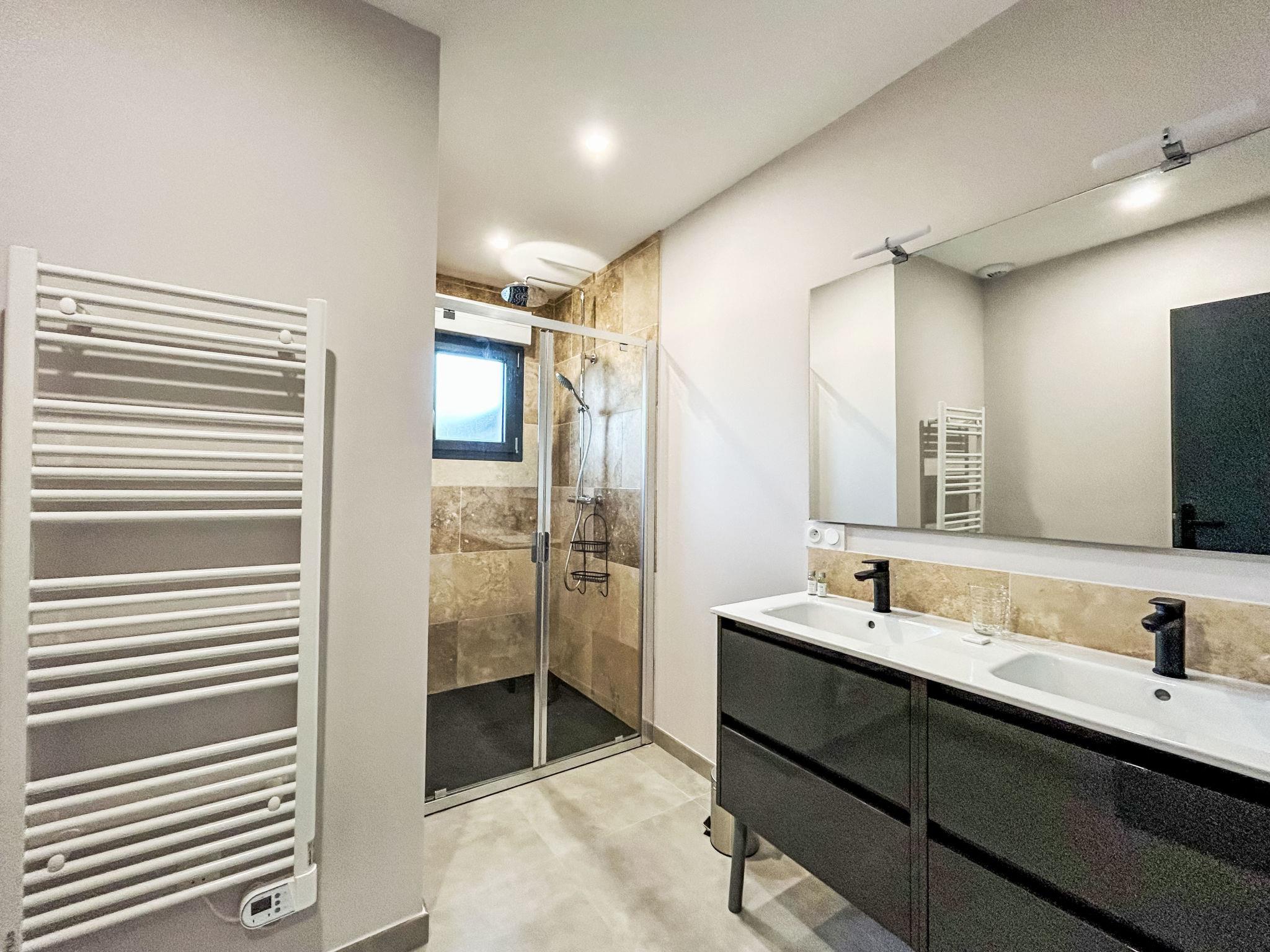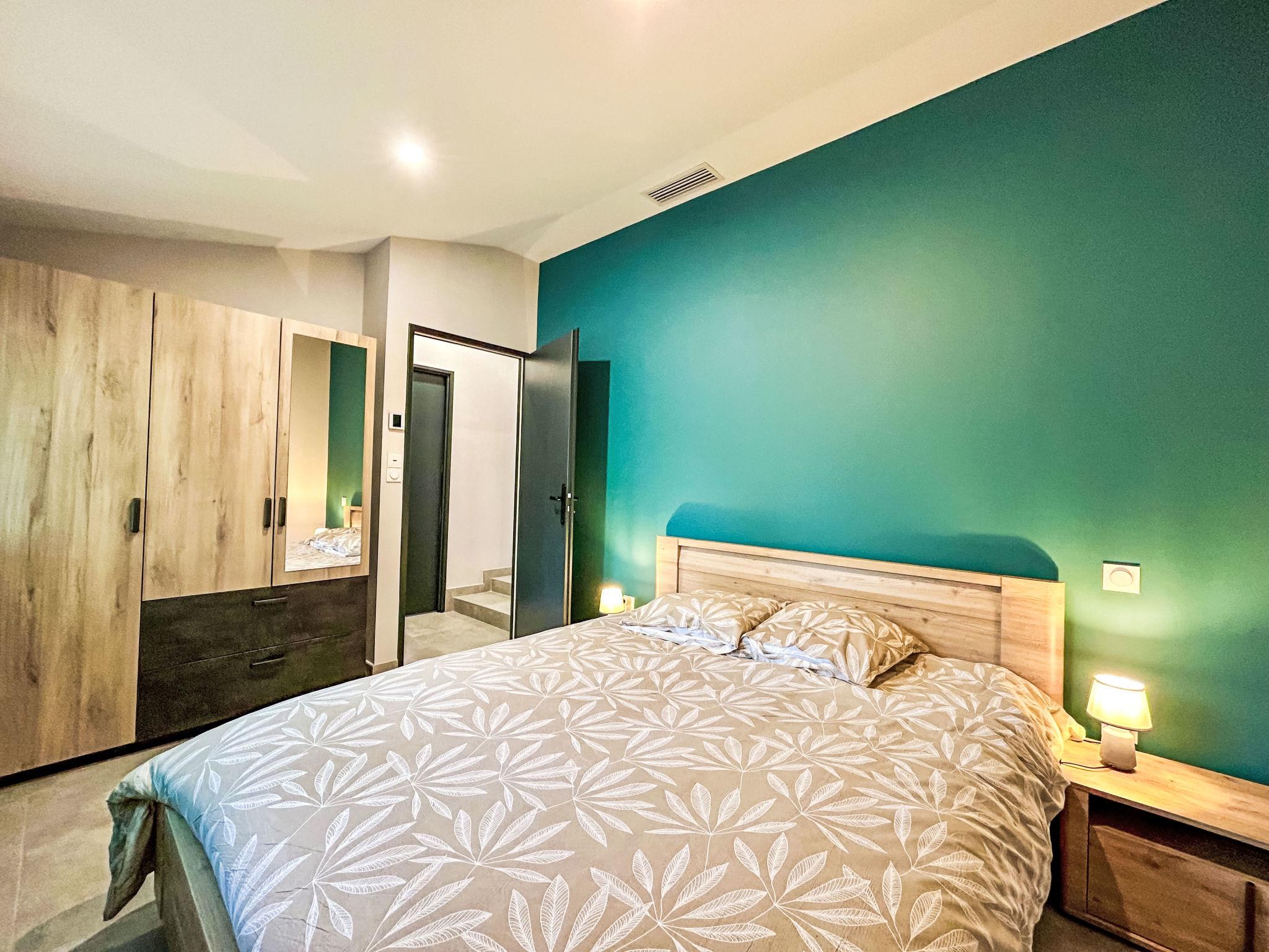 4-Zimmer-Haus. Komfortabel und modern eingerichtet: Wohn-/Esszimmer 40 m2 mit TV (Flachbildschirm). Ausgang zum Garten, zur Terrasse. 2 Zimmer, jedes Zimmer mit 1 franz. Bett (160 cm, Länge 200 cm). 1 Zimmer mit 2 x 2 Etagenbetten (90 cm, Länge 190 cm). Kochnische (Backofen, Geschirrspüler, 3 Induktionskochplatten, Toaster, Wasserkocher, Tiefkühler, elektrische Kaffeemaschine, Kapseln für die Kaffeemaschine (Dolce Gusto) extra). Dusche, sep. WC, Doppelwaschbecken. Klimaanlage. Grosse Terrasse 70 m2, überdacht, Südlage. Terrassenmöbel, Gartengrill. Zur Verfügung: Waschmaschine, Wäschetrockner, Bügeleisen. Internet (WLAN, gratis). Parkplatz beim Haus. Bitte beachten: Nichtraucher-Haus. Rauchmelder. Inserat einer Privatperson nach Artikel 155, IV, CGI.