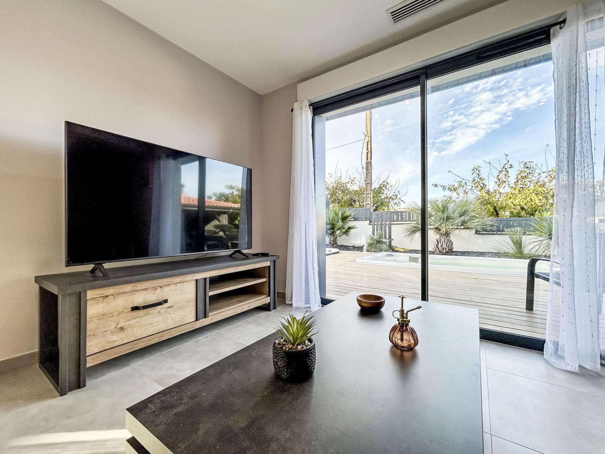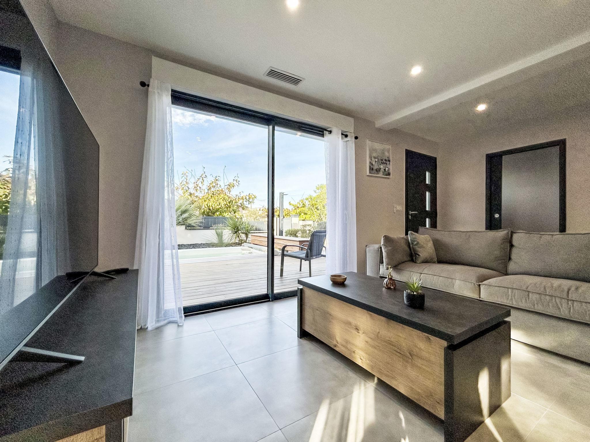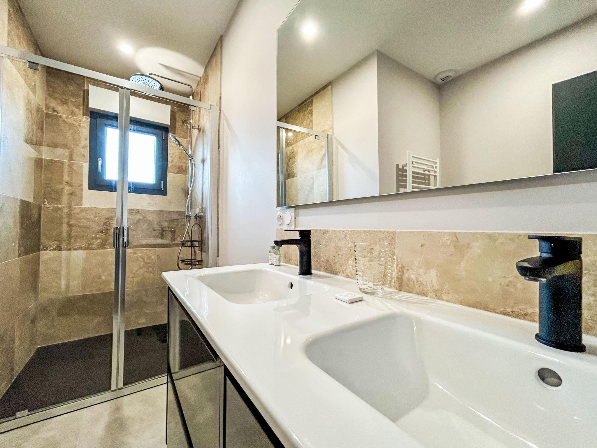 4-Zimmer-Haus. Komfortabel und modern eingerichtet: Wohn-/Esszimmer 40 m2 mit TV (Flachbildschirm). Ausgang zum Garten, zur Terrasse. 2 Zimmer, jedes Zimmer mit 1 franz. Bett (160 cm, Länge 200 cm). 1 Zimmer mit 2 x 2 Etagenbetten (90 cm, Länge 190 cm). Kochnische (Backofen, Geschirrspüler, 3 Induktionskochplatten, Toaster, Wasserkocher, Tiefkühler, elektrische Kaffeemaschine, Kapseln für die Kaffeemaschine (Dolce Gusto) extra). Dusche, sep. WC, Doppelwaschbecken. Klimaanlage. Grosse Terrasse 70 m2, überdacht, Südlage. Terrassenmöbel, Gartengrill. Zur Verfügung: Waschmaschine, Wäschetrockner, Bügeleisen. Internet (WLAN, gratis). Parkplatz beim Haus. Bitte beachten: Nichtraucher-Haus. Rauchmelder. Inserat einer Privatperson nach Artikel 155, IV, CGI.