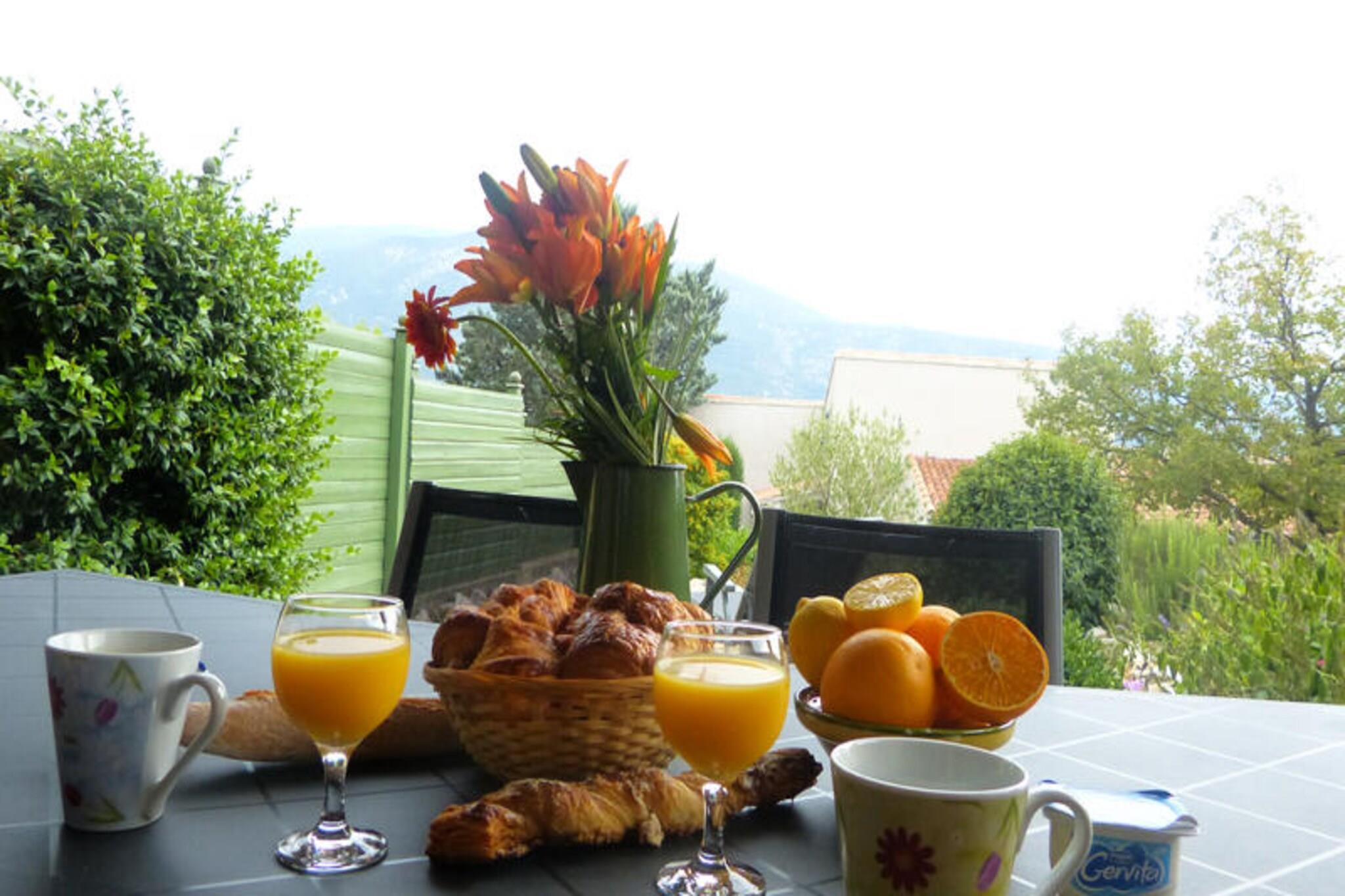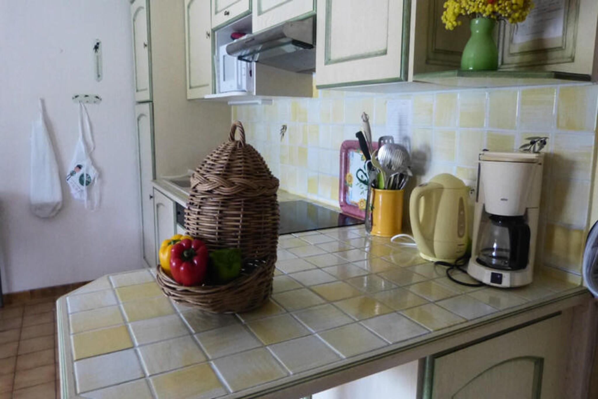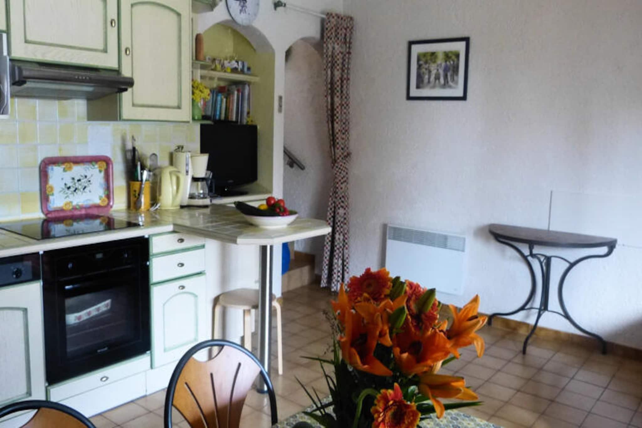 Im malerischen Dorf Mollans-sur-Ouvèze, wo provenzalischer Charme auf die Ruhe der Natur trifft, bietet dieses charmante Ferienhaus den perfekten Rahmen für einen unvergesslichen Urlaub. Umgeben von sanften Hügeln und Lavendelfeldern lädt dieses 55 m² große Ferienhaus zum Entspannen und Genießen der entspannten Lebensart im Herzen der Drôme Provençale ein. Ob Sie mit Freunden oder der Familie reisen, diese Unterkunft bietet eine warme und einladende Atmosphäre, in der Sie sich wie zu Hause fühlen werden. Im Inneren finden Sie zwei gemütliche Schlafzimmer – eines mit einem Doppelbett und das andere mit zwei Einzelbetten – sowie ein bequemes Doppelschlafsofa im Wohnzimmer. Somit bietet das Ferienhaus Platz für bis zu sechs Gäste. Die offene Küche ist komplett ausgestattet mit modernen Geräten, darunter Kühlschrank, Backofen, Mikrowelle und allem, was Sie für die Zubereitung köstlicher Mahlzeiten benötigen. Treten Sie hinaus auf die 15 m² große Terrasse mit Garten, wo Sie mit einem Buch entspannen, ein Glas Wein aus der Region genießen oder einfach die provenzalische Sonne tanken können. Der 15 x 8 Meter große Gemeinschaftspool ist ein Highlight für Gäste jeden Alters und bietet eine erfrischende Abkühlung in den warmen Sommermonaten. Tierliebhaber werden sich freuen zu hören, dass bis zu zwei Haustiere willkommen sind – ein wirklich inklusiver Urlaub. Private Parkplätze direkt am Haus sorgen für eine stressfreie Anreise, und eine elektrische Heizung hält die Wohnung an kühleren Abenden gemütlich warm. Obwohl im Apartment kein WLAN verfügbar ist, bietet sich hier die Gelegenheit, abzuschalten und die Ruhe der Umgebung zu genießen. Wer online bleiben muss, kann kostenloses WLAN auf der Terrasse der Rezeption nutzen. Mit seiner idyllischen Lage und den durchdachten Annehmlichkeiten verspricht dieses charmante Anwesen in Mollans-sur-Ouvèze einen erholsamen Aufenthalt, bei dem Sie Zeit mit Ihren Lieben verbringen und die Schönheit der Natur genießen können. Ob Sie die nahegelegenen Weinberge erkunden, Wanderwege entdecken oder einfach nur die friedliche Atmosphäre genießen – dieses Reiseziel wird Ihnen unvergessliche Erinnerungen bescheren.
